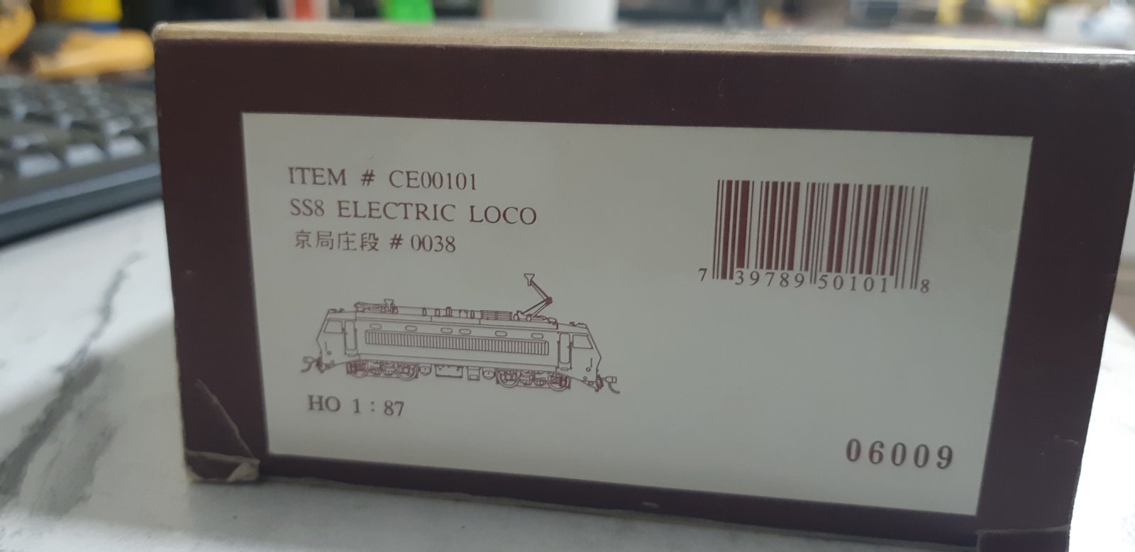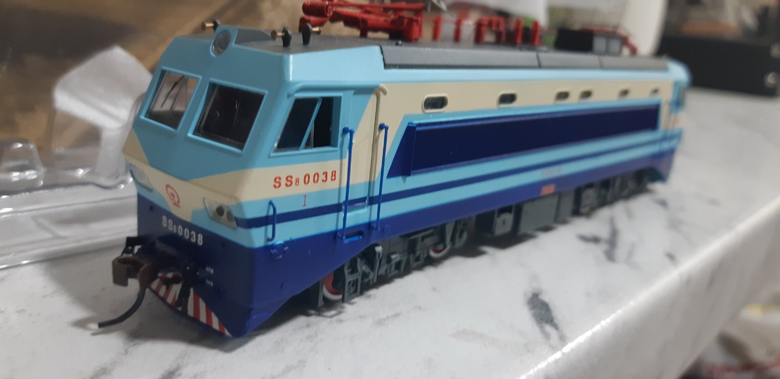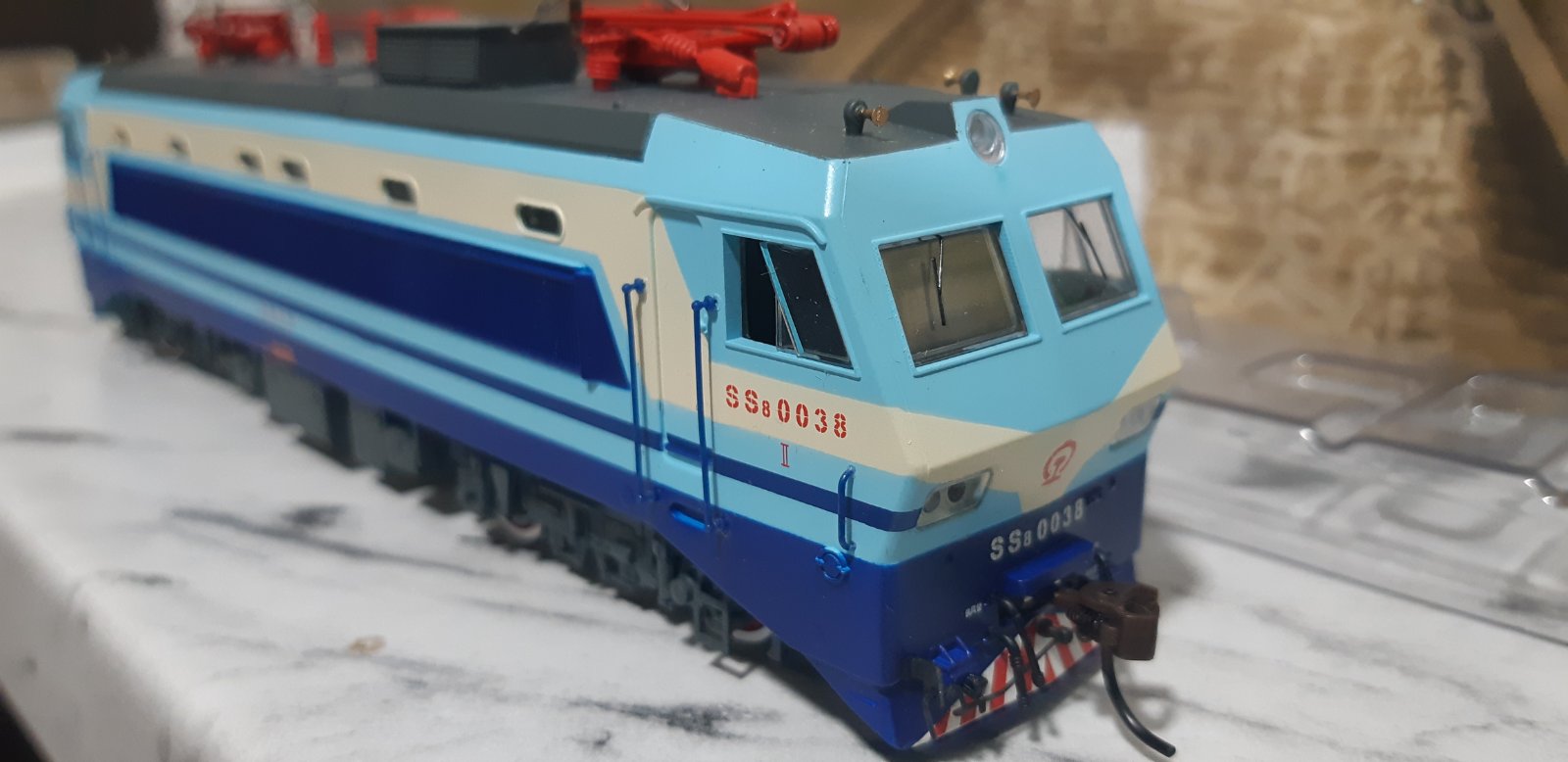 Модель електровоза типу SS8, цікавий 4-х вісний електровоз, має два 2-х основні візки, електровоз сучасних Китайських залізниць. Епоха 5. Бортовий номер №0038. Виробництво моделі фірма Бахманн Китай.Арт.СE00101.