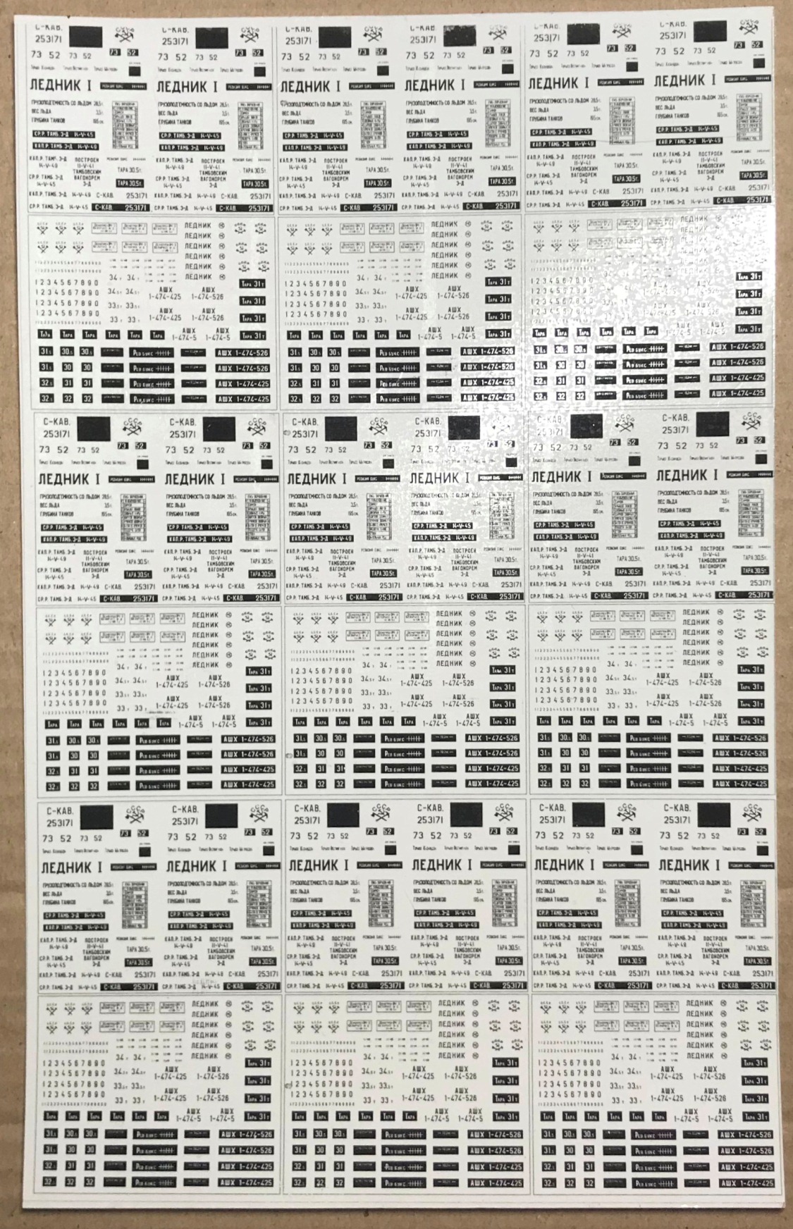 Роздрукував деколі для ледніків, 40-50х років і славнозвісного "Ашхабаду". На "Ашхабад три різних комплекта, точніше один для доповнення оригінального і два додаткових, для саморобок-переробок, з іншими номерами. Білого кольору немає, так що є маски чторного кольору, під корті треба підфарбовувати білою фарбою. Ящо комусь цікаво, пишіть.