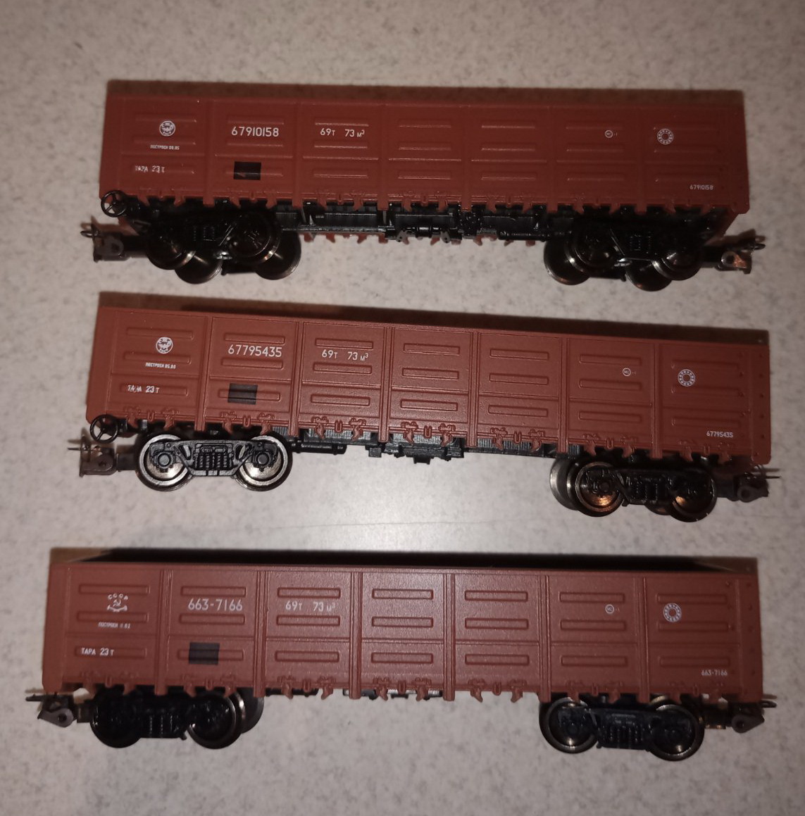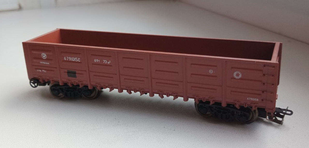Готові напіввагони з новими номерами і в зеленому кольорі. Всі моделі епохи СРСР.