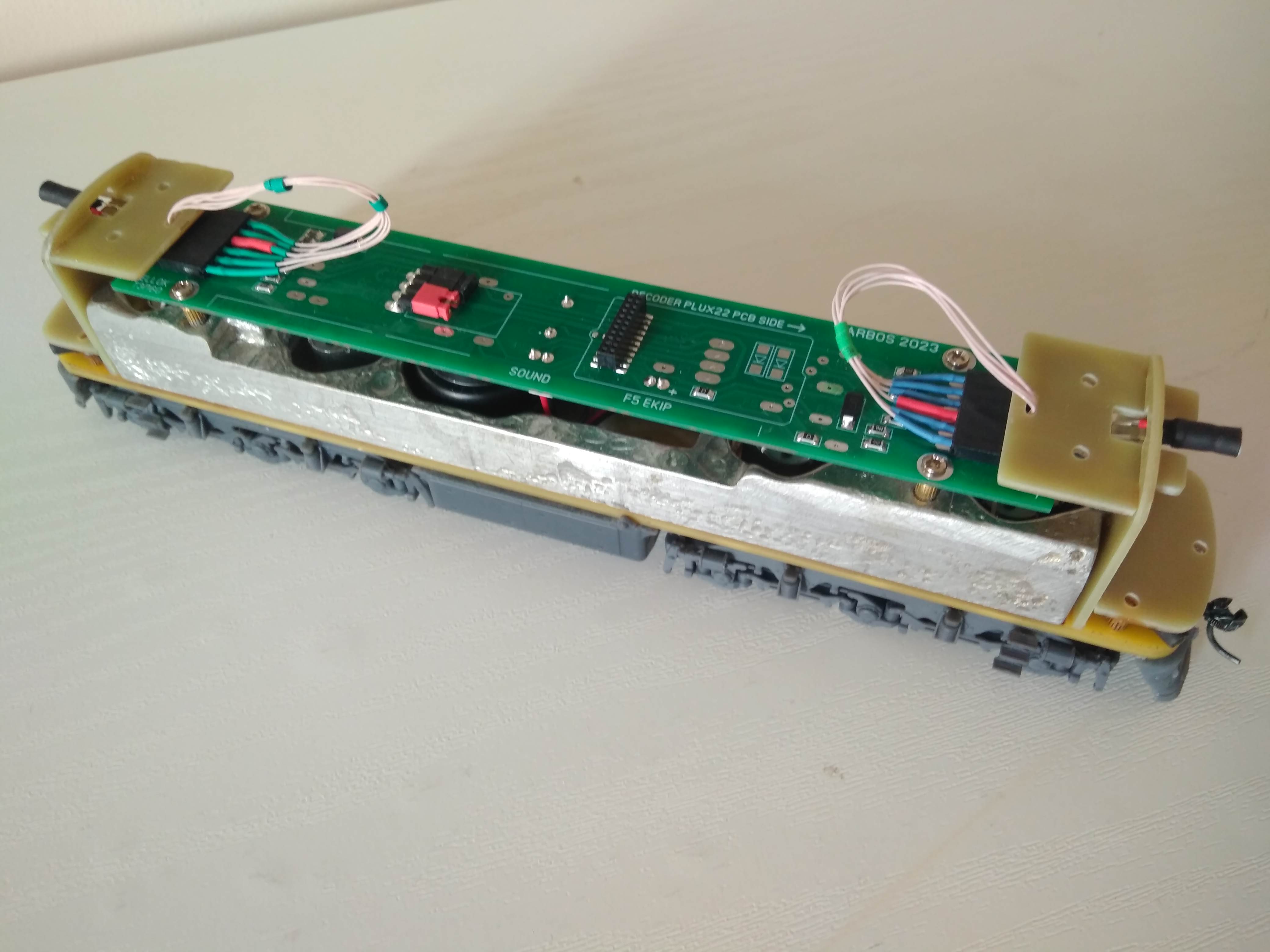 В движении ходовая не очень быстрая, максимальная масштабная скорость соответствует 85 км/час при напряжении питания 14в, фишка этой ходовой это шикарная работа на малых скоростях, ползучий ход, локомотив очень тяговитый, очень плавно и прототипично трогается с места и также плавно может сбрасывать ход до ползучего.