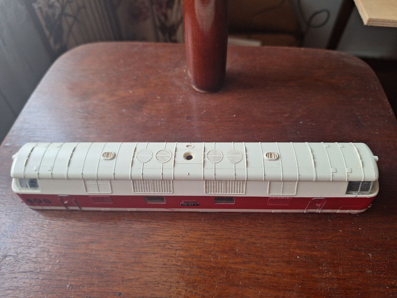 З мінусів - поганий стан корпусу, ходова з корпусом не тримаються, тому попередній власник грубо прикручував корпус шурупами з боків. Також я поставив імпровізовані зчіпки з стартового бр80 і зробив примітивні буфери. Також пантограф потребує відновлення.