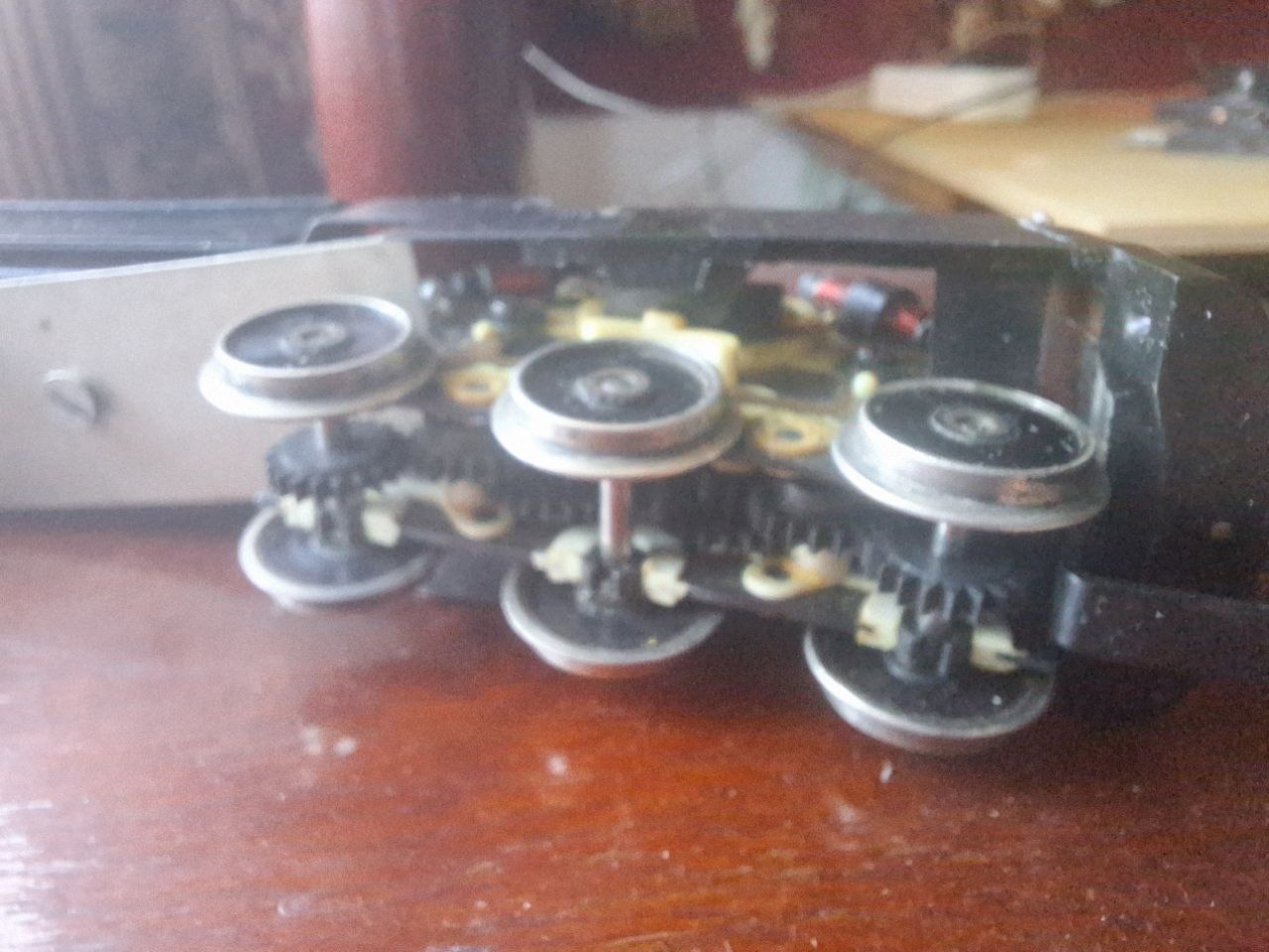 Працює, їздить, але бувають перебої зі струмом, коли одна їде, а друга волочеться. Хз чому так, може підпаяти провідки щоб об'єднати струмоз'єм.