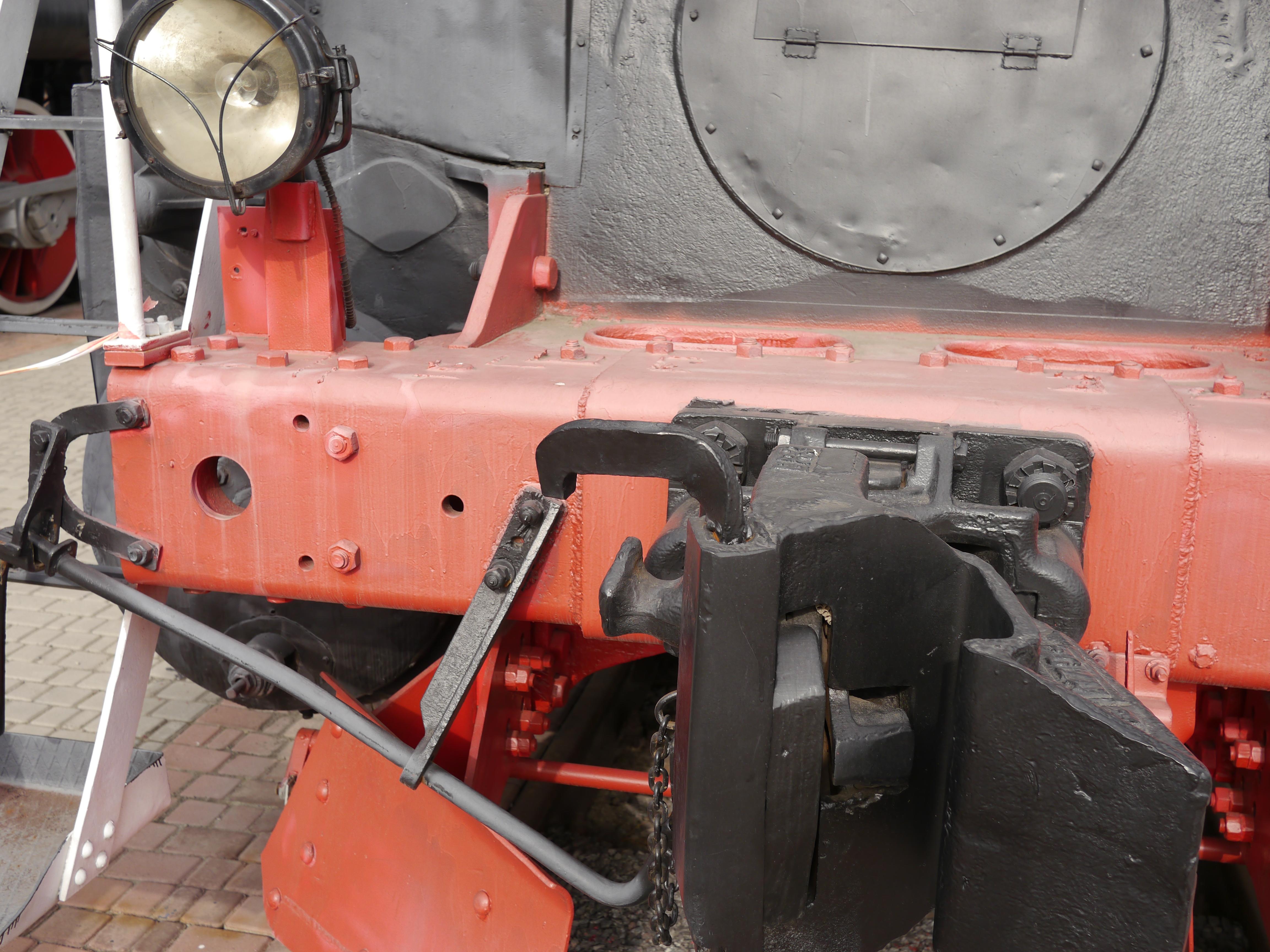 Во-первых, обнаружил автосцепку, которая была актуальна в переходной период - когда в СССР отказывались от винтовой стяжки. У этой СА3 слева есть выступ, на который накидывалась "петля" упряжи. Понятно, что на паровозе в таком случае должны быть и буфера.