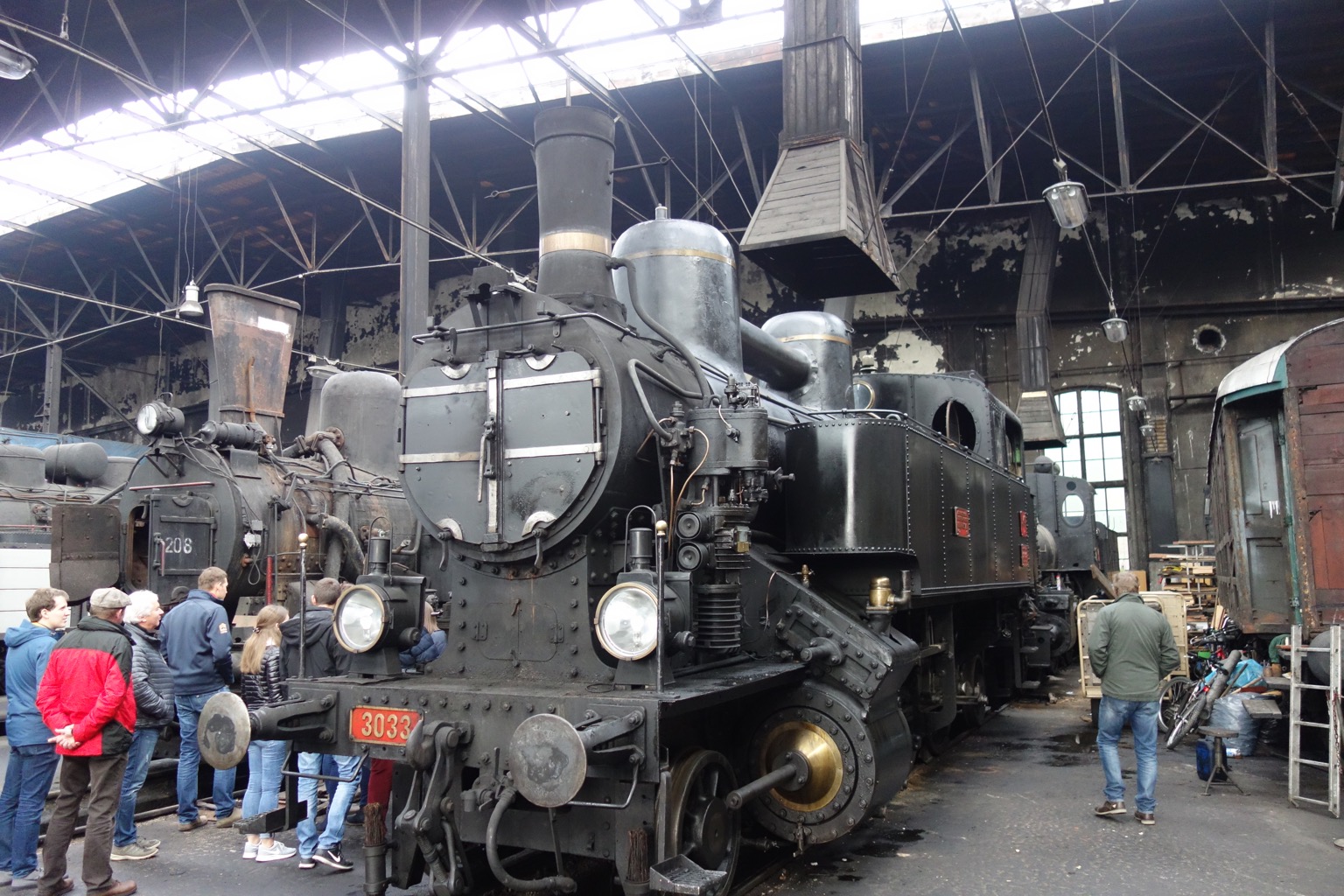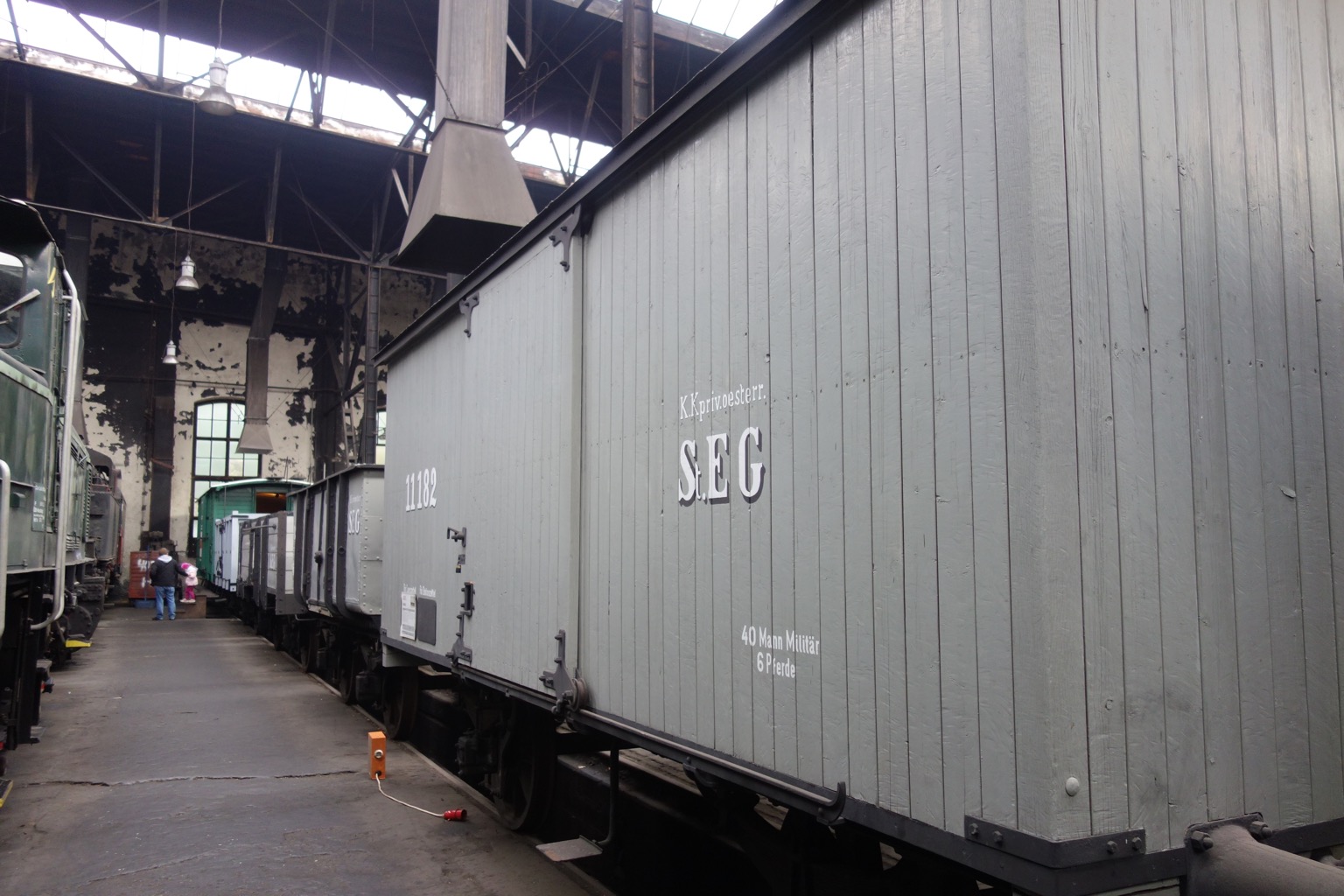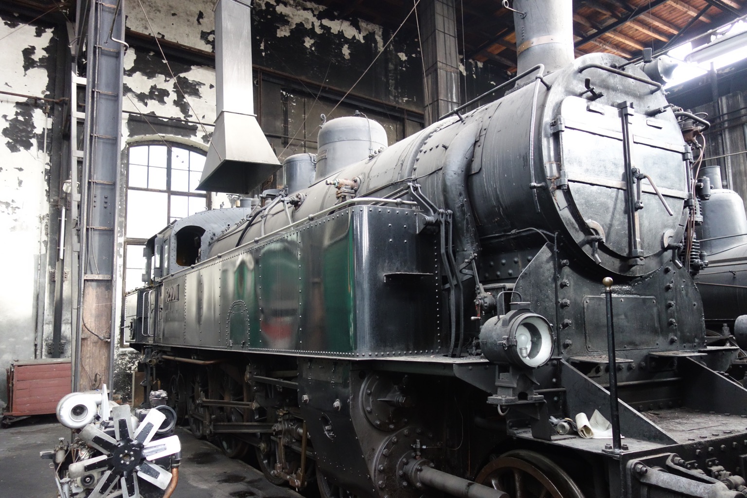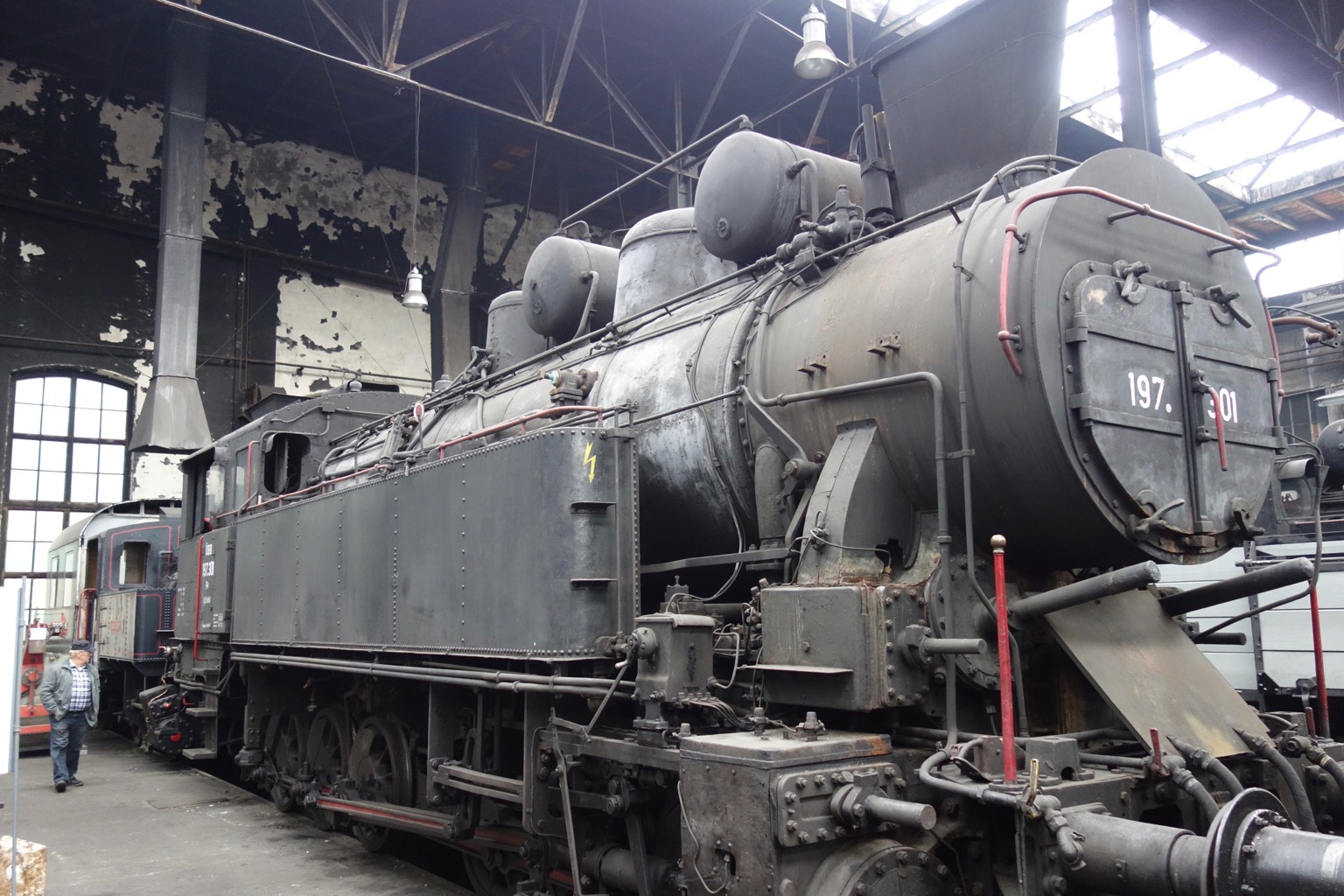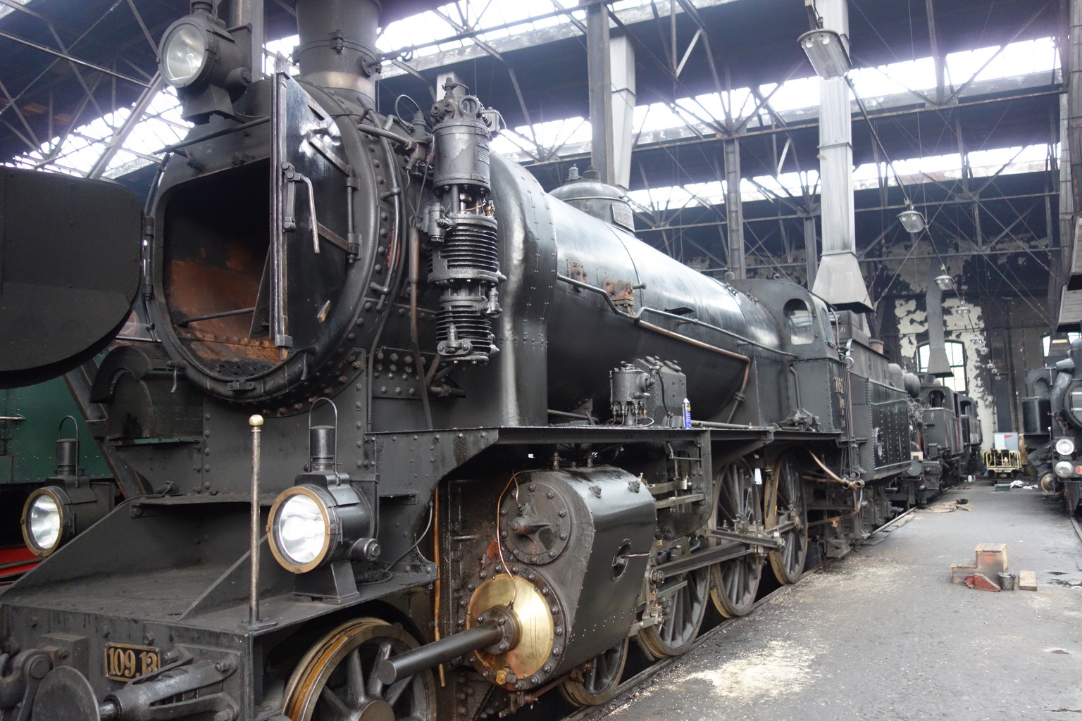 Ну вот мы и добрались до экспозиции под крышей. На самом деле, это не очень похоже на экспозицию в традиционном смысле, скорее нам показывают, как восстанавливают и обслуживают подвижной состав. Вот, например, 109.13