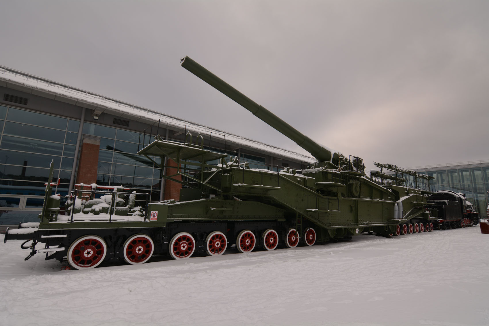 Музей железных дорог России. Не следует путать с Центральным музеем железнодорожного транспорта Российской Федерации — также находящимся в Санкт-Петербурге. Обновленная экспозиция открылась в январе 2018 года на грандиозной площадке возле Балтийского вокзала. Я не успел воспользоваться бесплатным входом, попал только в марте, в дни выставки "Железнодорожная модель 2018", но нисколько не жалею о 350 рублях, отданных за билет. Комментариев от меня не дождетесь, слишком много материала, но на вопросы постараюсь ответить. Экспозиция действительно грандиозная, в основном хорошо отреставрированные натурные образцы, частично выставленные на открытой площадке. Если артиллерийская система еще поместилась бы под теплой крышей, то БЖРК в боевом положении уж точно нет. Кому не хватает мелких экспонатов, добро пожаловать в ЦМЖТ на Садовую, но некоторые вещи, вроде колпар, присутствуют. Смотрим: