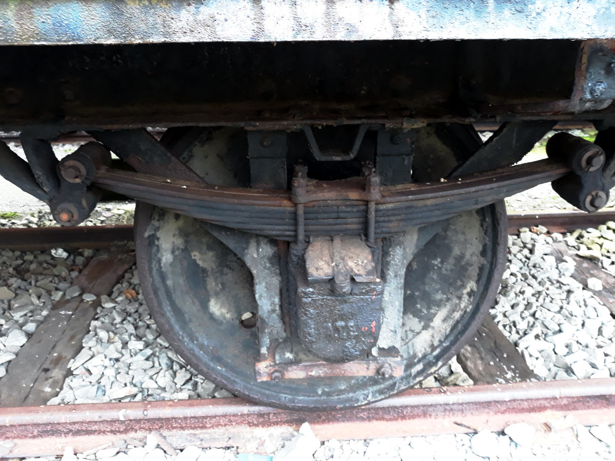 Для того, чтоб вопрос по этому набору завершить, прилагаю фото тормозной системы вагона. Не точно такого, это другой вагон, другой дороги, но имеет аналогичную систему с одним только механическим ручным тормозом, стоит в Лужне у Раковника (восстановлен в 2020 году).