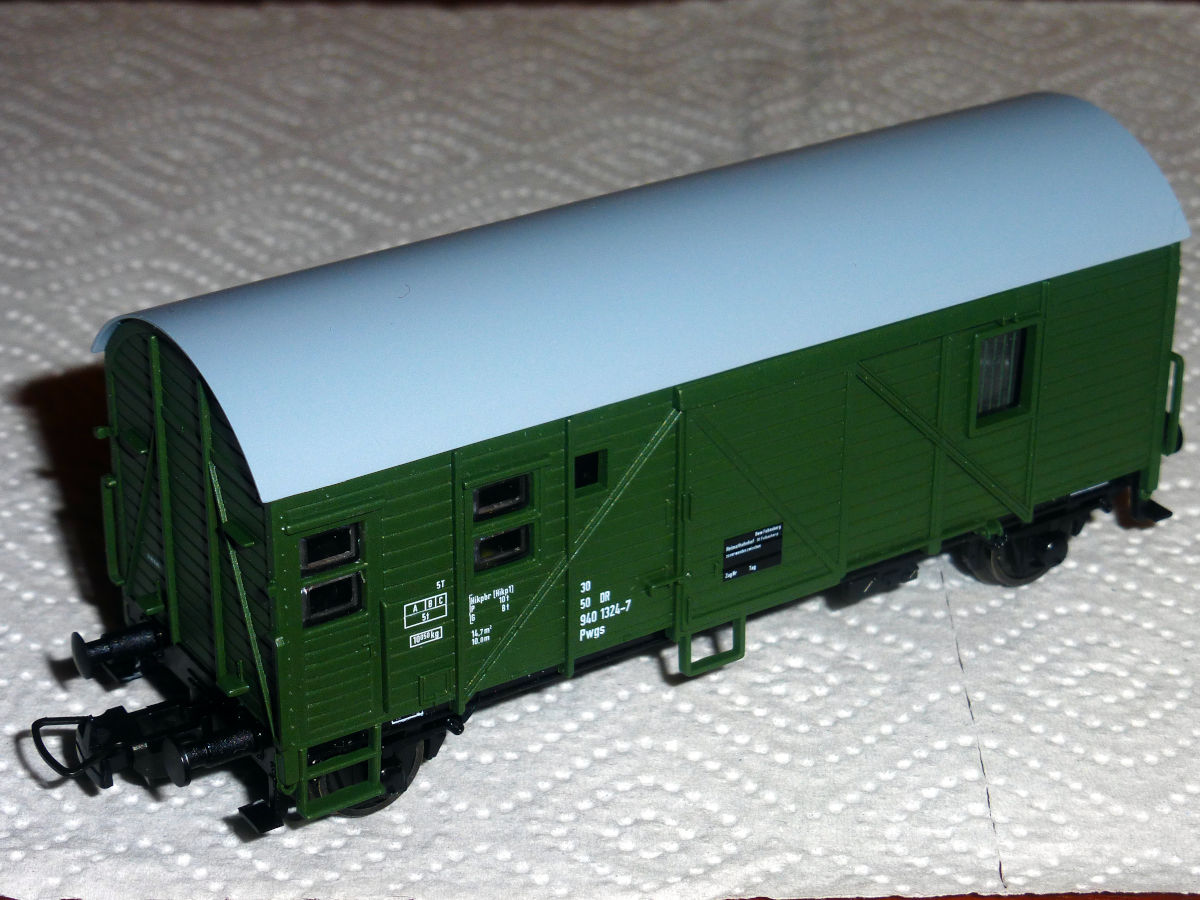 Модель данного вагона производилась Роко в нескольких вариантах, производилась давно, но в данный момент недоступна в виде отдельной модели (см. арт. 76681 в окрасе ÖBB), был в наборах арт. 76166 в окраске DB, и на этот год анонсирована модель в чехословацкой раскраске, в составе восстановительного поезда, арт. 76019). Также модель производится Тиллиг, арт 76756 - однако Тиллиг воспроизвел несколько другой вариант, это заметно по упорам двери и тормозному оборудованию, к тому же, аж в IV эпохе DR, с датой в середине 80-х гг, но с раскосом на двери, т.е. постройки военных лет.
