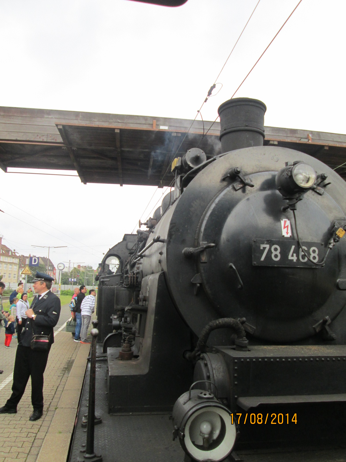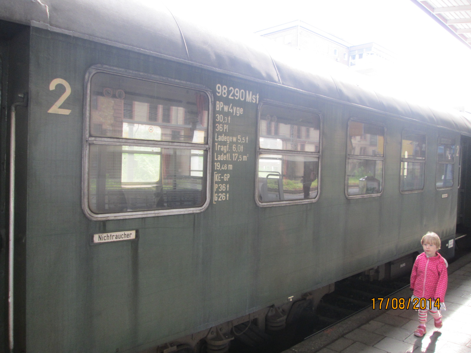 однажды катался в Меттинген на поезде, который гулял с нашего города до деревушки. Сам паровоз с соседней земли, базируется в Ленгерих, у них свой состав и называют они его "Teuto-Express" (Тойто-экспресс). В ролях: паровоз 78 468 (Pt 37.17) - прусский T18; вагоны: четырехосные ABCü-29 (внутри этого фотографировал сам себя), C4üw-28/52, двуосные Bi-29, BCi-29, Cid-27, Citr-28/37 и др. вагончики можно тут посмотреть http://www.eisenbahn-tradition.de/DieFahrzeuge.htm там есть по пару фоток внутрянки