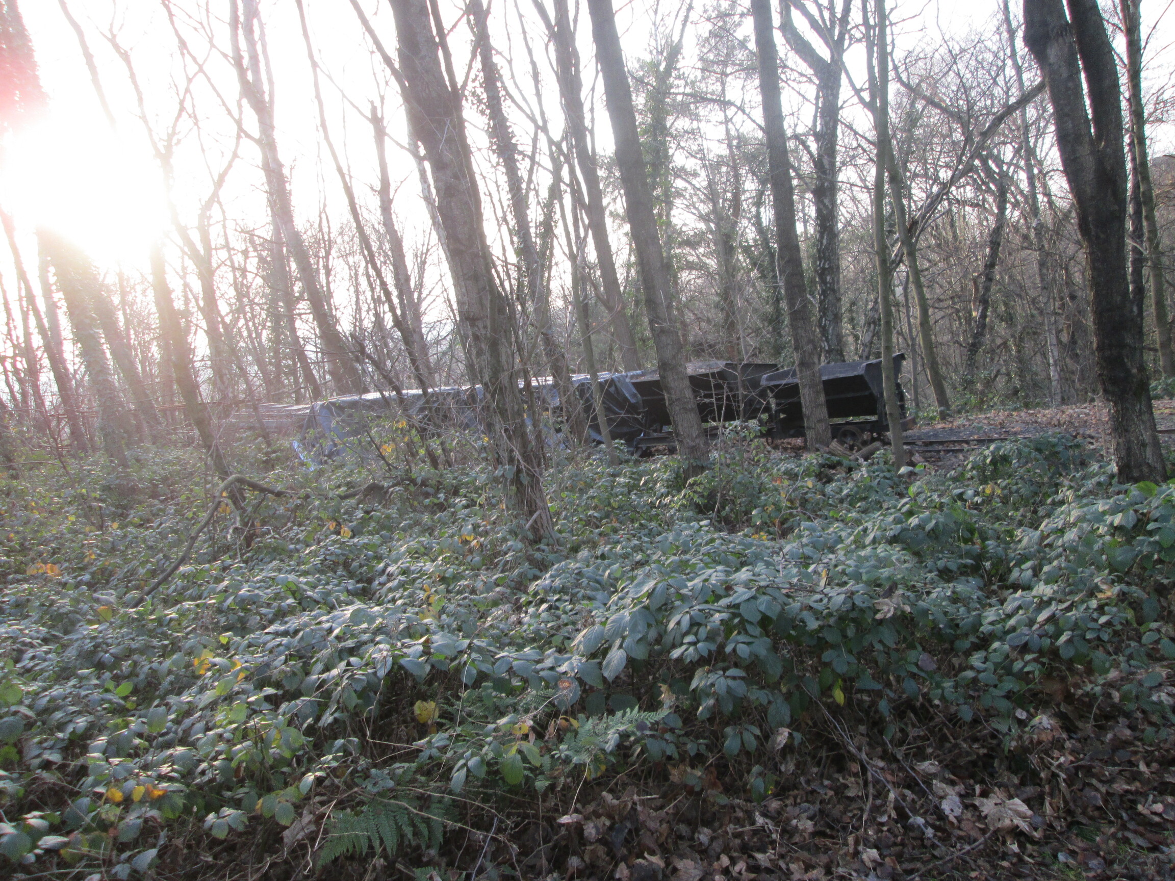после моста идет небольшой карьер, в котором виден слой угля. его раньше не было, это хозяева узкоколейки прокопали чтобы был у них тут путь