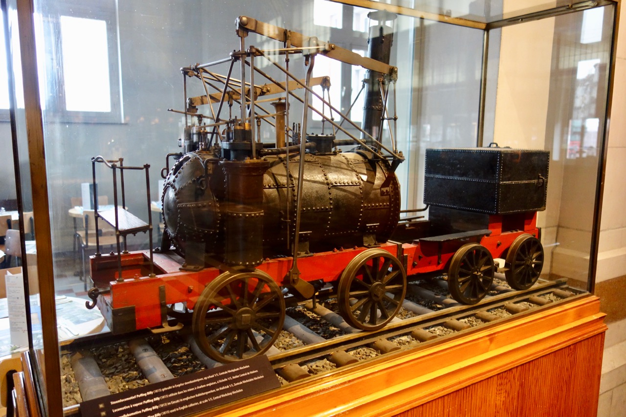 Принято считать, что это первый локомотив, построенный в континентальной Европе. С этого момента локомотивы в Бельгии строились массово, хватало и на собственные нужды, и на экспорт. Что отнюдь не удивительно, Бельгия была на тот момент одной из самых промышленно развитых стран. Поэтому моделей местных паровозов в первом зале немало. Что интересно, присутствуют также модели вагонов: багажных, пассажирских, товарных. Вот, например,