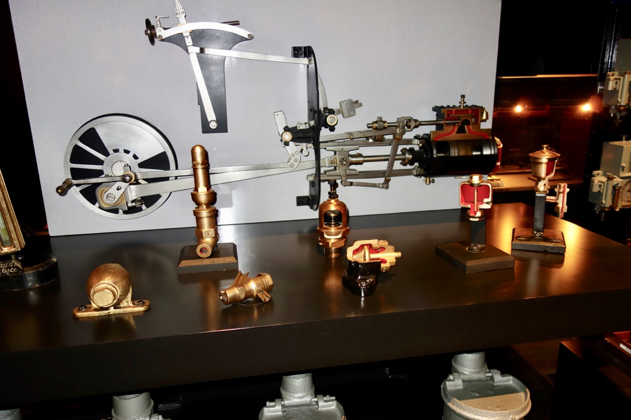 Стены этого зала украшают тематические наглядные пособия по устройству паровоза