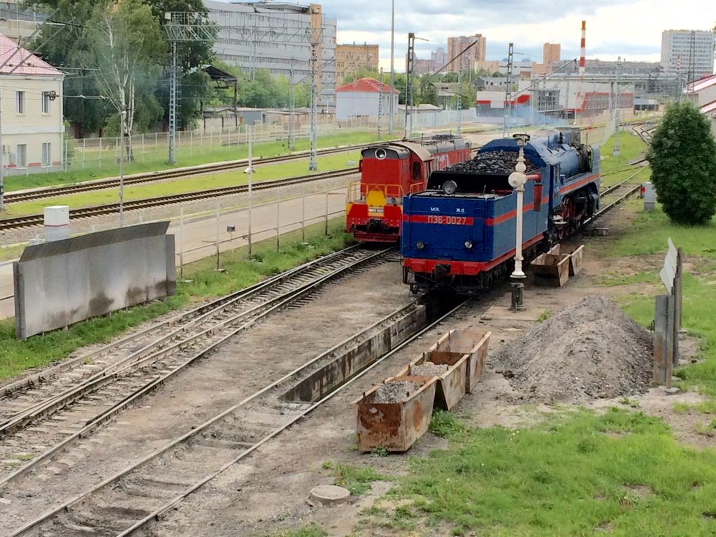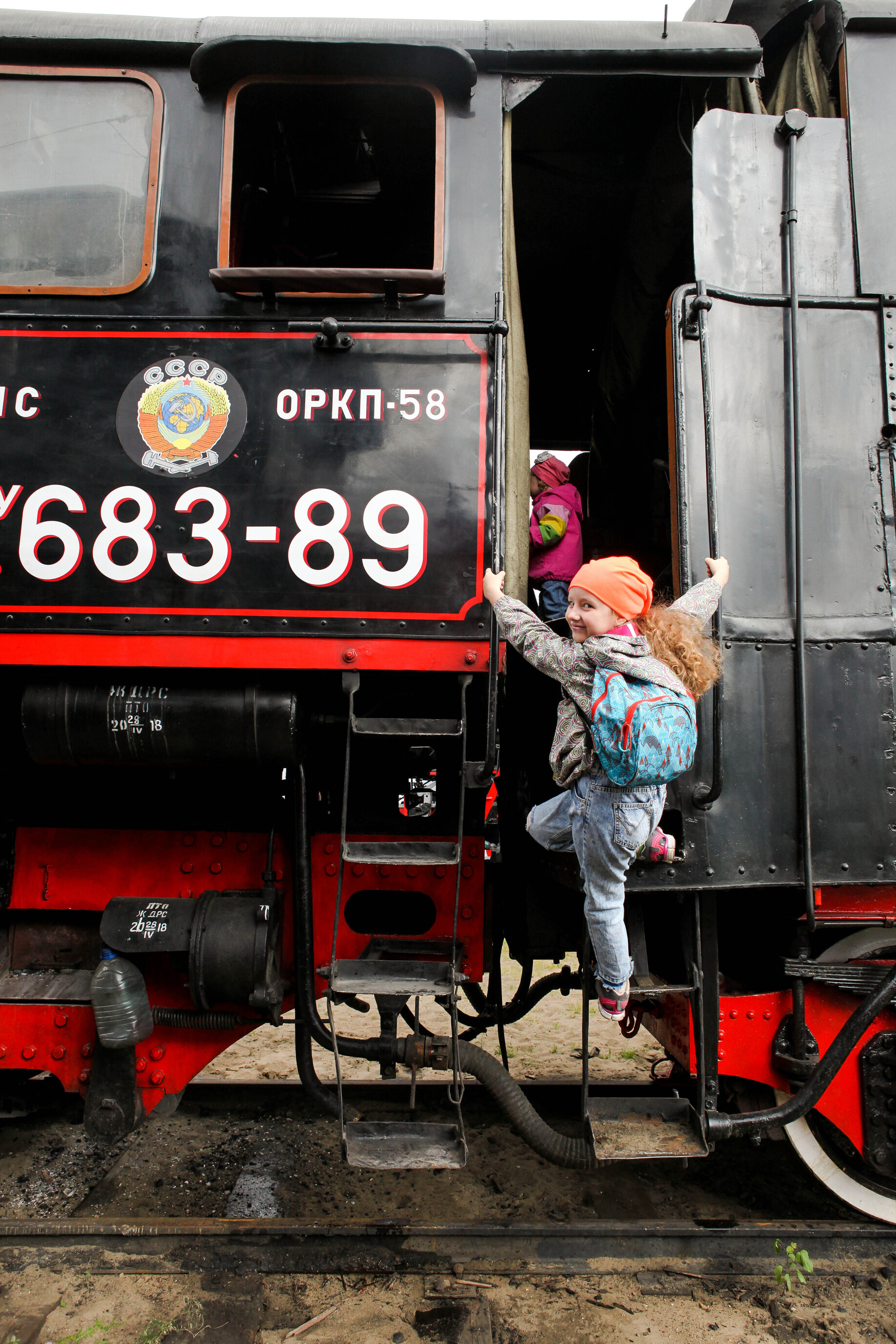 Пока нас встретили, пока мы прошли по территории, ТГК вернулся домой. Лихо крутанулся на веере и стал на улице у депо, подперев один из паровозов. Погода последнее время, очень переменчива в Мск. На улице мы были недолго, так как уже далеко не первый раз что я, что дети. И пошли сразу через мастерские, в закрытую для посещения террторию депо.