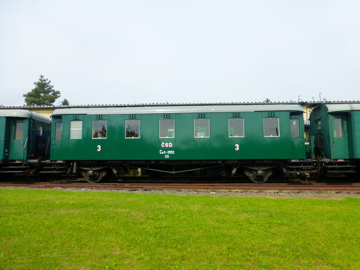Кроме мотрисы, Кнежевец располагает вагонами с подвеской типа "Рыбак" (одноосные тележки), однако качественных фото их из Кнежевеца нет, в планах - показать позже те, что в Лужне у Раковника, и пассажирским вагоном серии Ci - древний двухосный вагон, тот, что в Кнежевеце - постройки 1898 года (восстановлен в 1991 году), с уже железной обшивкой корпуса и одиночными окнами - вообще же конструкция деревянная. Вагоны подобные строились в конце XIX - начале ХХ веков в Австро-Венгерской империи и в странах, возникших после ее распада, имели множество вариаций (по размеру, внутренней компоновке, классу, числу окон на каждое отделение, конструкции крыши и т.д.), конкретных типов не назову даже - это еще большая бездна, чем крытые с плоской крышей. Долее распространяться не буду, прилагаю фотографии вагона...