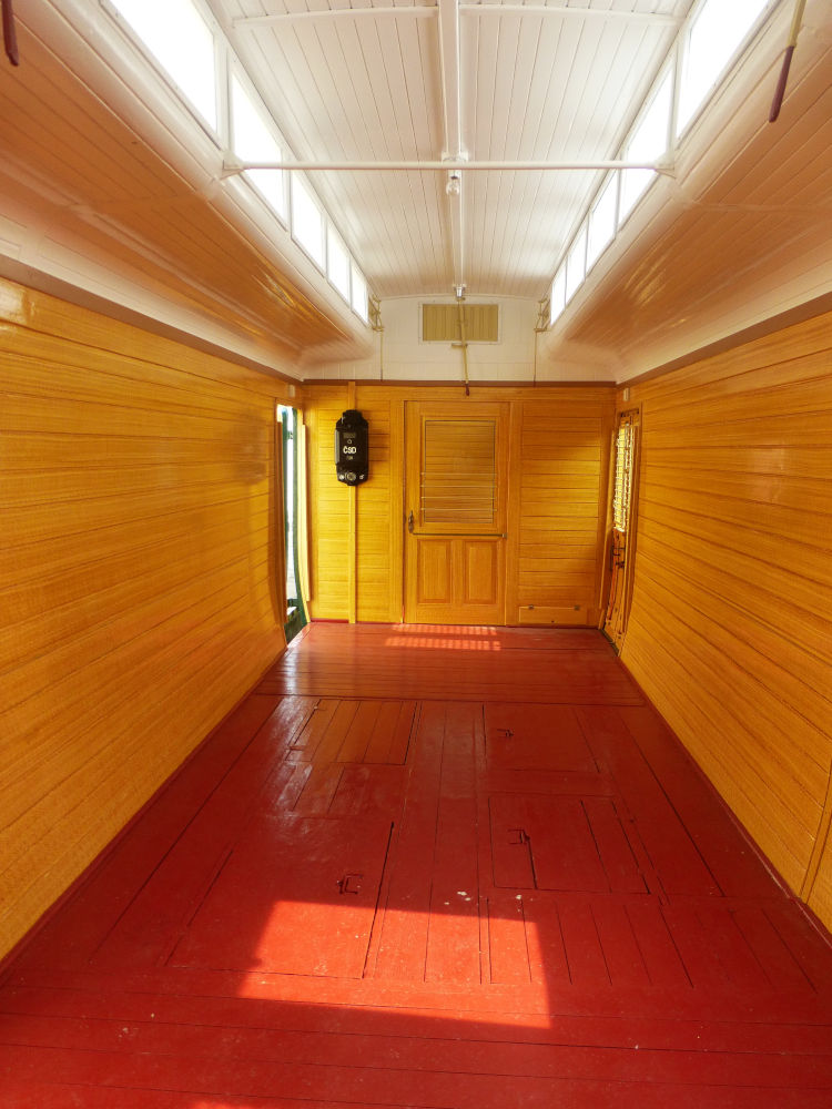 Оборудован паровым отоплением и электрическим освещением, но оборудование для газового освещения (бак для светильного газа бросается в глаза) также было установлено.
