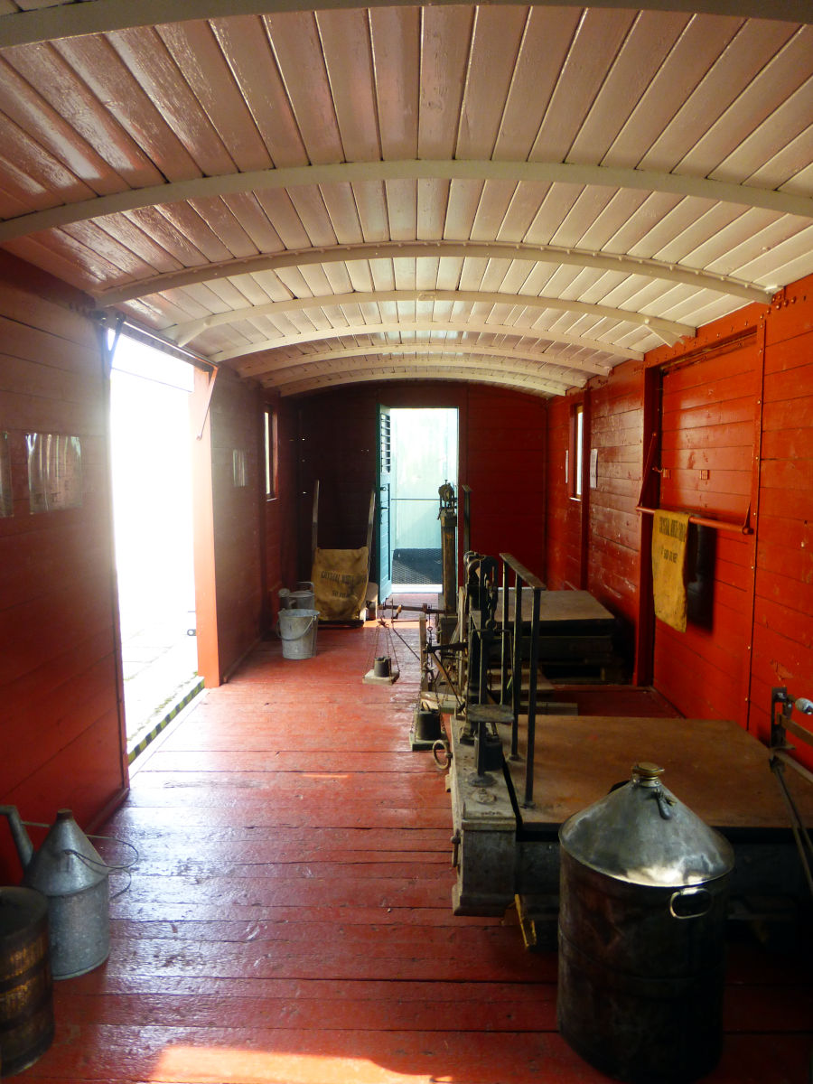 Второй был в момент моего посещения в помещении, стоял тормозным концом к стенке, за салоном, снять по-человечески было невозможно, радовало только то, что такой же точно вагон стоит в Лужне у Раковника в свободном доступе. Это ледник, постройки пражского завода Рингоффер. Обратите внимание на высоту двери и наличие трубочек для стока воды на боковых стенках.