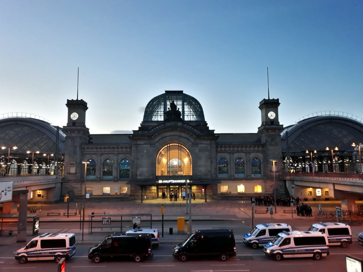 До границы с Германией по Эльбе не доберусь, к сожалению. Только в прошлом году, когда в Дрездене 14-16 февраля (более "удачную" дату для Дрездена выбрать было трудно) была выставка, удалось попасть туда на день - тем же "Берлинером", при чем "сорвался" без подготовки - узнал о выставке в день открытия и побежал с мыслью "следующего раза может не быть". И еще тогда, когда в Европе никаких ограничений передвижения не было (а в Китае уже были), между Дечином и Бад Шандау бросился в глаза пограничный переход, на железной дороге отмеченный сигналами, а на скале справа и слева - обычная граница с "колючкой" и всеми ее атрибутами, при чем проходит по гребню, по всему виду было понятно, что перекрыть и заблокировать ее полностью - дело пары часов, не более. Но поезд после этого резко набрал ход и сфотографировать увиденное сооружение было бесполезно даже пытаться. Из-за отсутствия нормальной подготовки нет ни фото с выставки толком, ни приличных фото самой поездки - вместо этого попал на отмену трамвайного маршрута и памятный митинг, посвященный 75-летней давности событиям, а на вокзал заходил уже через оцепление, предъявляя билет на поезд и паспорт. Ниже приведу несколько кадров - надеюсь, отступление от повествования с моей стороны не слишком большой грех, оно и без того сбивчивое.