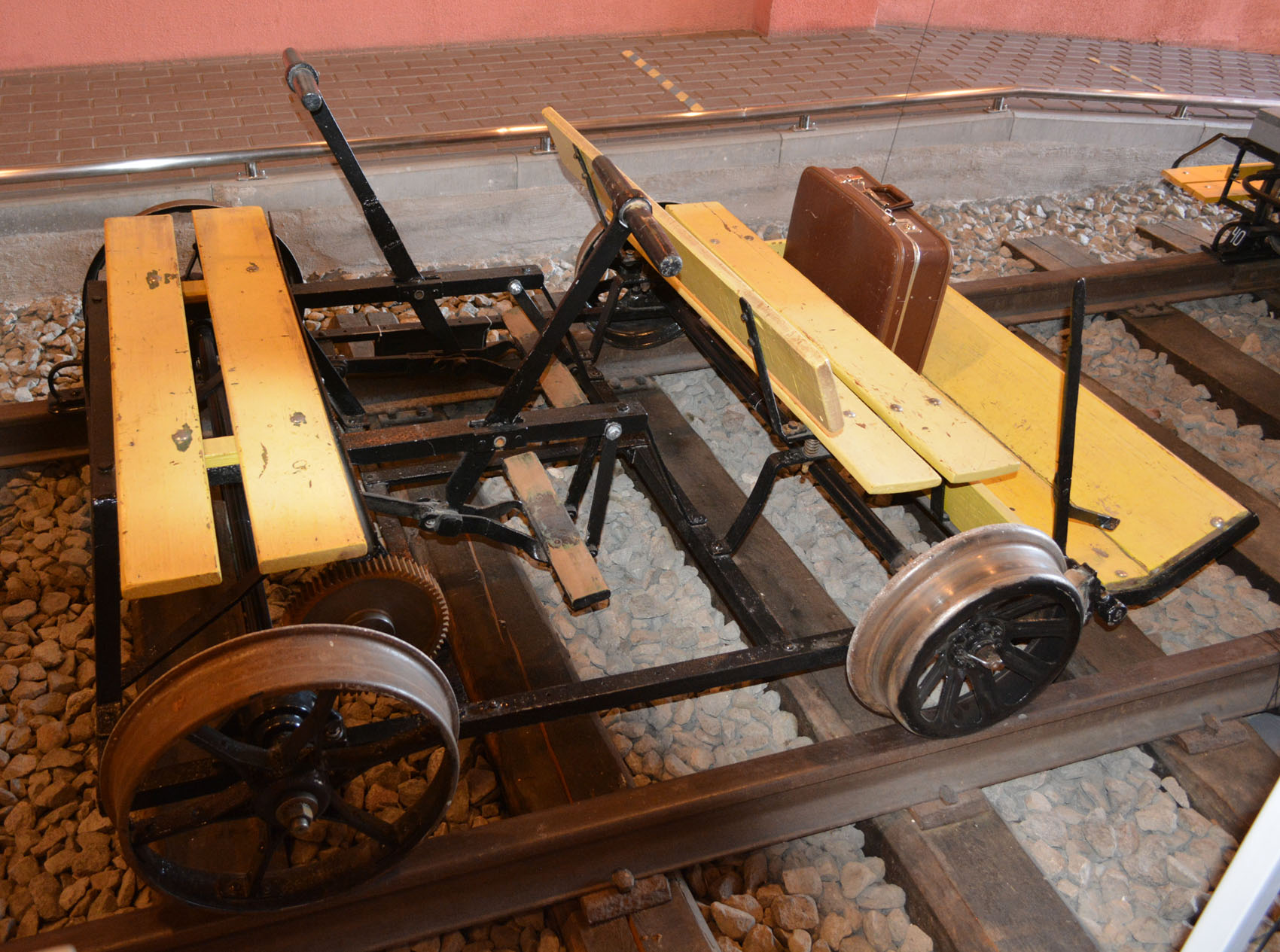 На входе, еще до кассы, имеется шикарная коллекция дрезин. Вряд ли где-то собрано больше. Здесь комментировать почти нечего, все и так понятно. Только добавлю, что одна из них с прицепом для багажа.