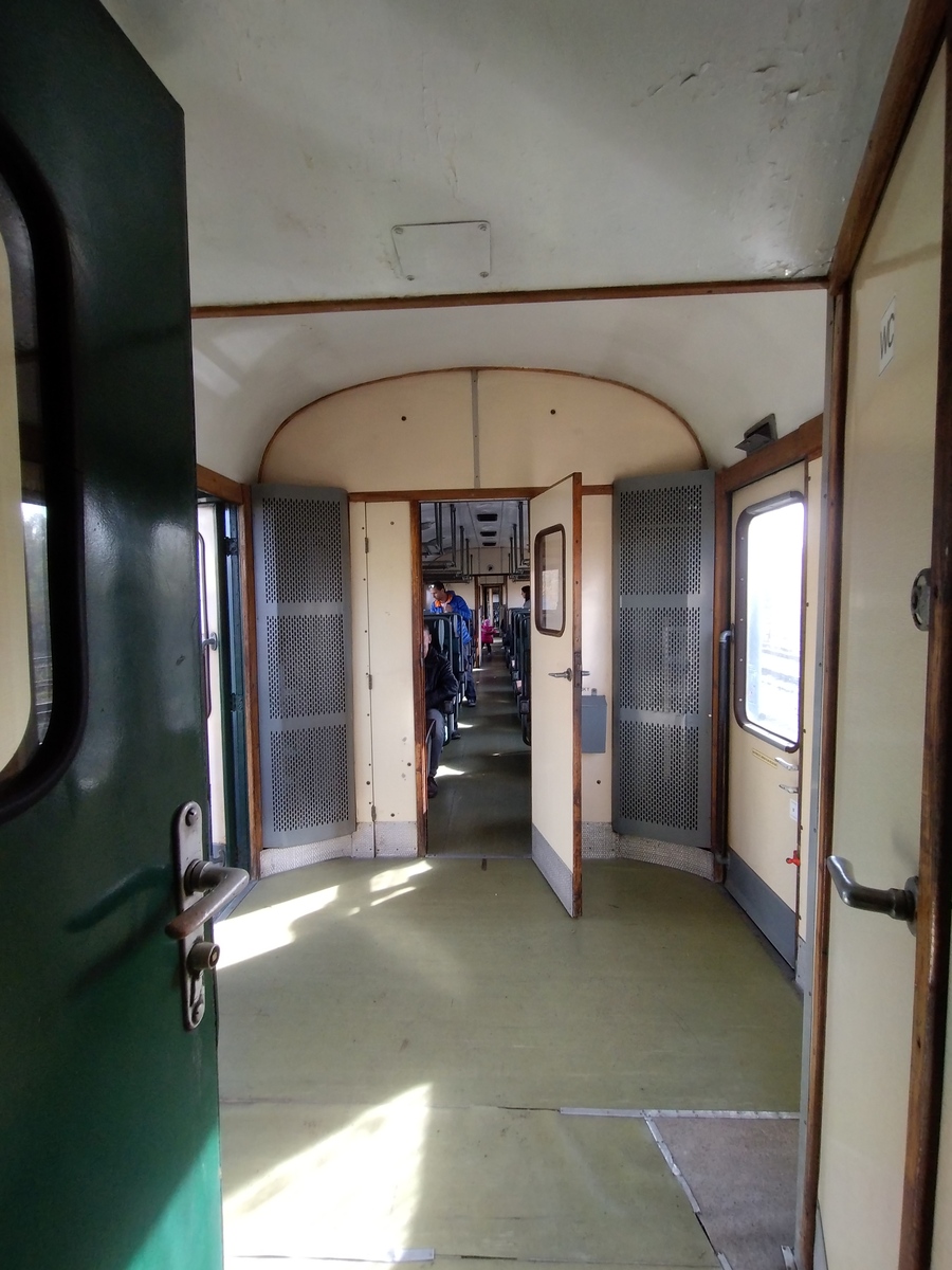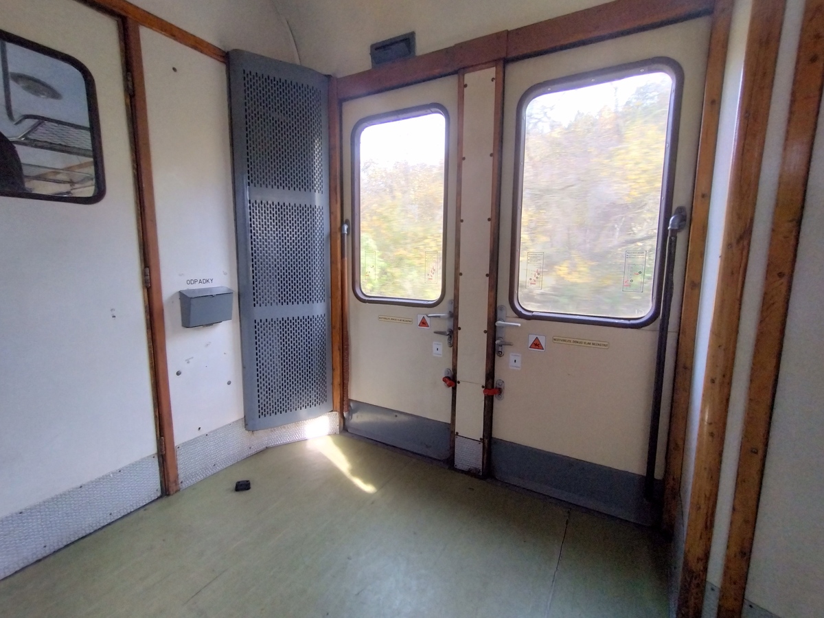 Зовні: Всередині - салон: Всередині - тамбур. Дві дитячі коляски у тамбурі навіть не помітні, вони не заважають зовсім! Модель від Igra Model. Вибачте за погану якість світлин. Із особливостей моделі варто відмітити рішення проблеми підножок: вони у прототипа над самим візком. Традиційно більшість виробників у такому випадку робили їх не на корпусі вагону, а на візку. Це, звісно, давало змогу проходити криві, але погано позначалося на зовнішньому вигляді. У Ігри (доречі, не лише у них, бо Фляйшман на моделі Шурценвагенів в N-ці робить так само) візок штовхає ступеньки та зсуває їх у бік за потреби. Щодо вигляду моделі, це стовідсотково добре. Але на чеських форумах були нарікання на проходження кривих. Щоправда, Ігра стверджує, що проблему виправили поліпшенням конструкції. На жаль, подробиць немає.