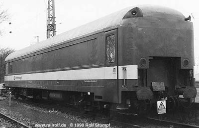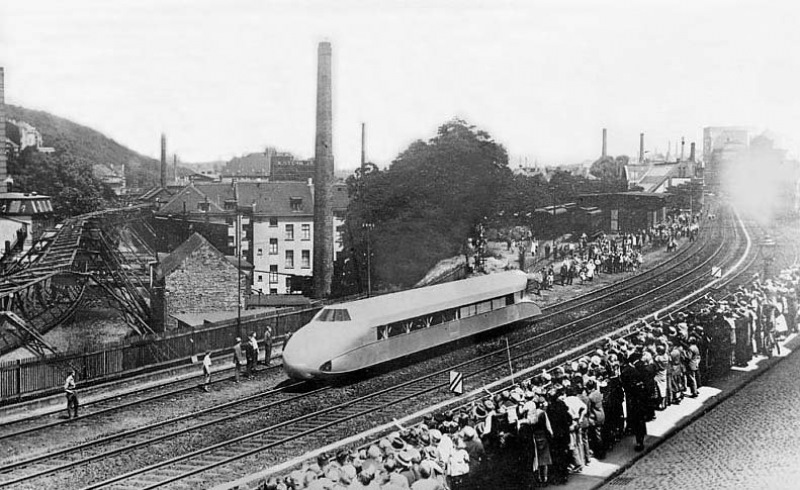 «Рельсовый Цеппелин», построенный в Германии еще в 1930 году, мог раз и навсегда изменить историю транспорта и оказать существенное влияние на ее дальнейшее развитие. Локомотив Schienenzeppelin был построен известным в Европе немецким ж/д конструктором Францем Крукенбергом и его компанией в Ганновере при некоторой технической поддержке Дойче Райхсбан. Позже Крукенберг создал поезд "сенатор" и известый в ГДР дизель-поезд VT-175 с длинной мордой-капотом.Он передвигался посредством 46-литрового двигателя BMW V-12, который развивал мощность 600 лошадиных сил. С этим двигателем локомотив разгонялся до скорости в 224 км/ч, а рекорд составлял 230,2 км/ч в 1931 году.Побили рекорд французы на электровозе ВВ-9004 в 1955 году (331 км/Ч). А для ж/д локов с бензиновым ДВС этот рекорд до сих пор не побит.