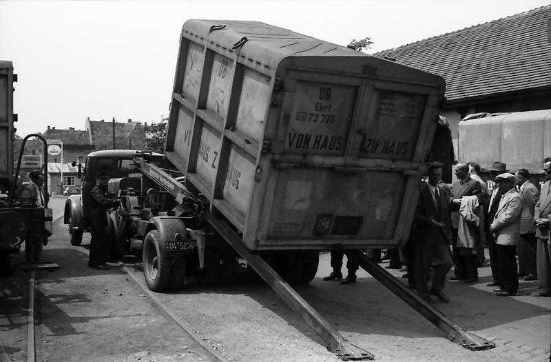 С контейнерами проще.Они меньше и сразу могли разгружаться с вагона,доставляться