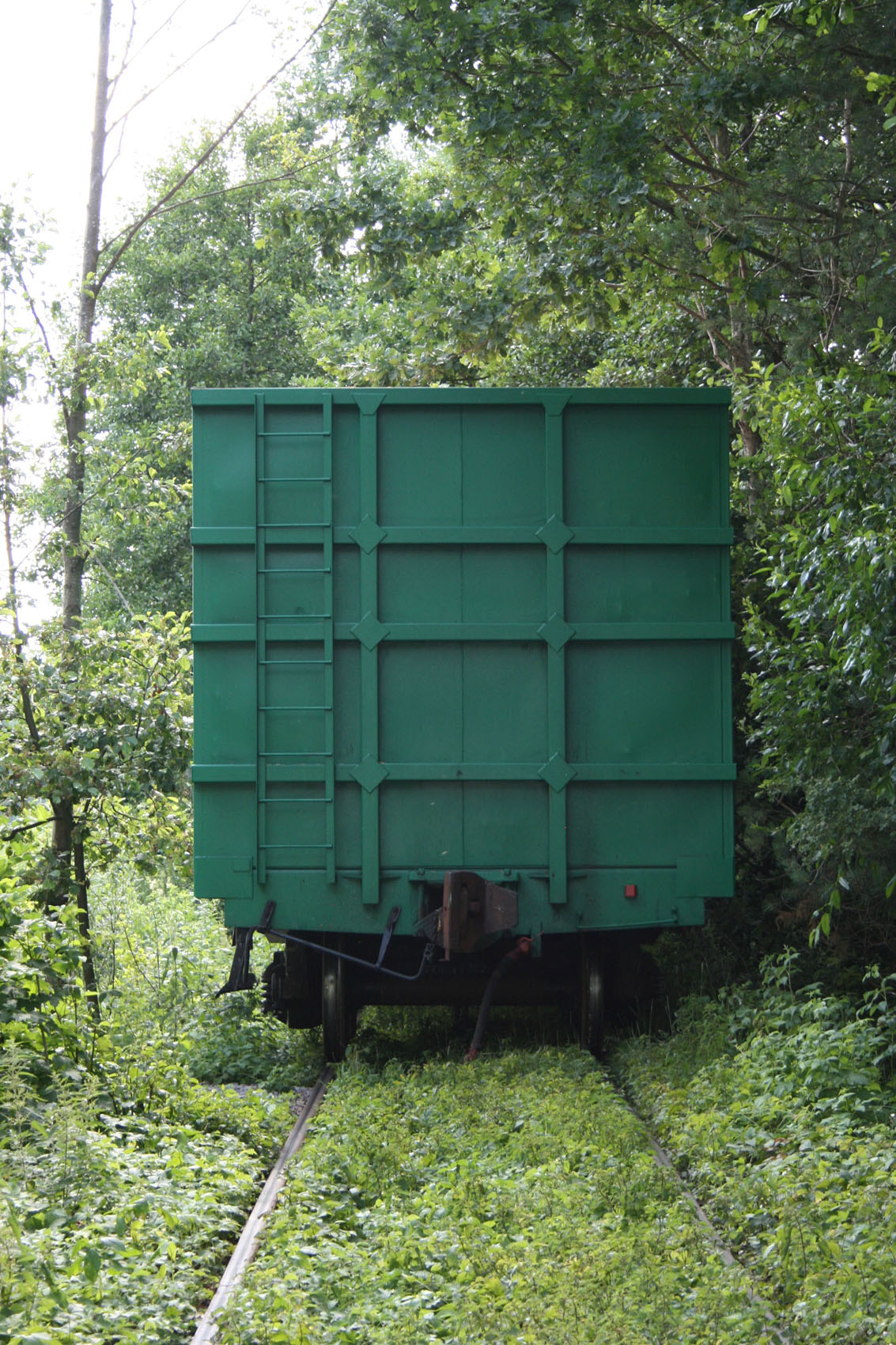 От самой станции в Оржевский ДОК протянута однопутная ветка через лес и болото, местами концы шпал почти нависают над комариным заповедником, это важно, поймете почему. Ну, пошел я весь такой из себя в белых джинсах, ведь в "Тоннель любви" иду, а не в мазутные бурьяны! Это я так первые метров триста думал... Собственно, тоннель образовался в результате "прочухивания" габарита составом, изредка курсирующим между станцией и ДОКом, в некоторых местах он напоминал мне габаритные схемы в книге. Ходит состав нечасто, увидеть его большая удача, как мне казалось. Шел я, щелкал фотоаппаратом, так как каждый десяток метров неповторим и все казалось, что вот там, дальше, будет вообще потрясающий вид. Пройдя таким образом около двух километров по грязным, залитым мазутом, междушпальным бурьянам, я попал в место, заключенное с обеих сторон в заболоченный питомник голодных комарищ. Вскоре на оборону от кровососов уходило времени больше, чем на прогулку и фотографирование. Белые некогда джинсы превратились в нечто жуткое, про обувь вообще молчу. И о, чудо - в тоннеле зазеленел тепловозик! Обрадовавшись выпавшей удаче, я быстро пришел в себя - справа и слева было не более полуметра, а состав надвигался... Пришлось срочно фиксироваться за какую-то березку, положение было такое шаткое, что сбоку получились крайне неудачные кадры. Проехав мимо, тепловозик и пара вагонов... внезапно остановились и простояли целую вечность! Комаров помните? Я тоже. Это повторилось раза четыре, идти до ДОКа как-то уже перехотелось, пора было на электричку, а путь был отрезан. Залезть на вагон было не вариант, так как стоя на лестнице, нужно было держаться, одна рука была занята вещами и фотоаппаратом, другая - веткой для отмахивания от комаров, третья еще не выросла. Вот так с остановками мы и двигались в направлении станции, зачем они были нужны в безлюдной болотистой местности - "тайна сия велика есть".