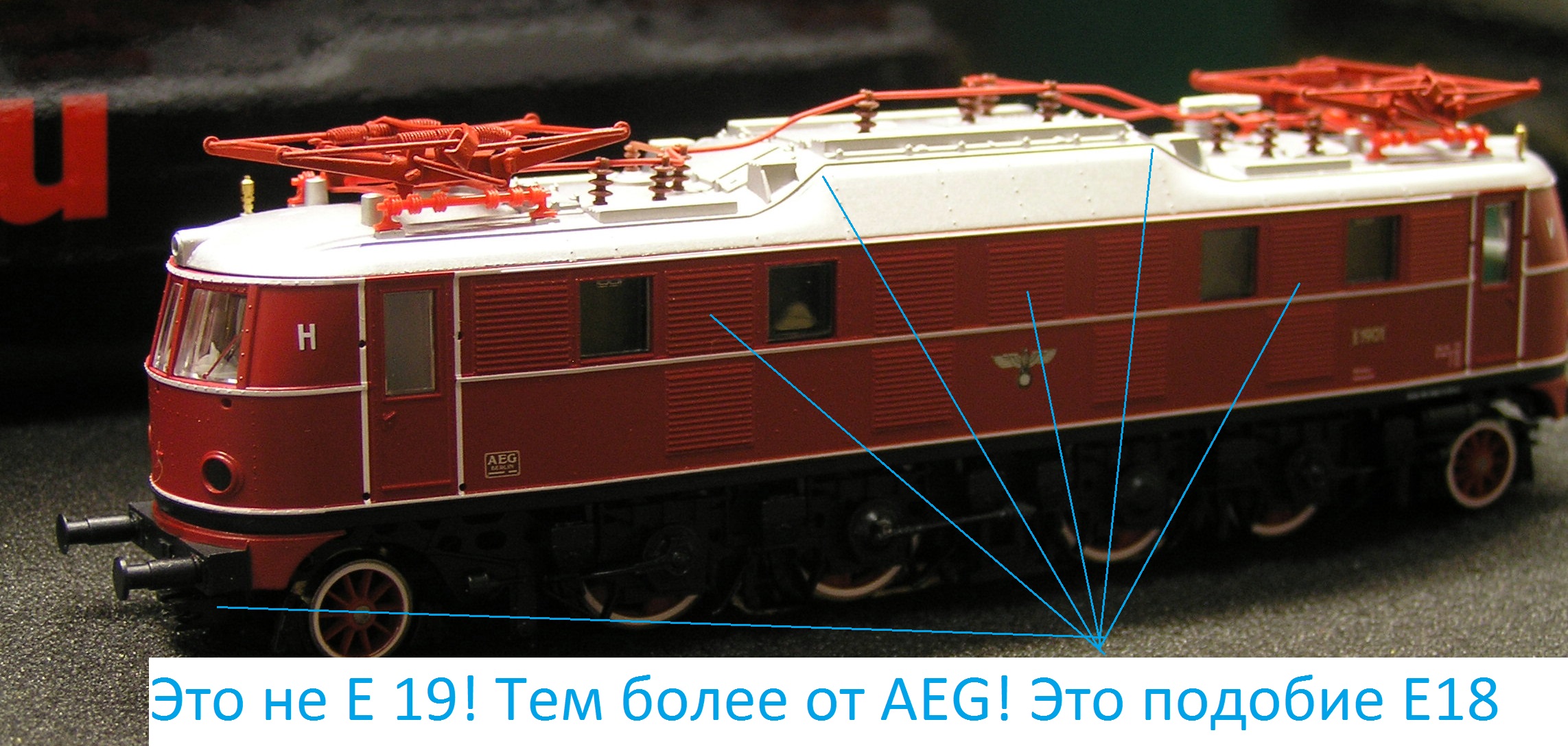 Это не Е19,а косячная тиллиговская модель, Е 18-го, которая просто перекрашена/ без каких-либо изменений / в Е 19.Это хоть и близкие,но все же разные серии и отличий между ними более,чем предостаточно: форма надстройки-" горба" на крыше радикально отличалась и даже после модернизаций ДБ в 50-х годах ,когда стала более похожа на Е18,,но все равно имела отличия и осталась длиннее,чем у Е 18-ых,На Е 19ых была значительно усилена рама и изменена тормозная система,из-за чего средние песочницы/были не у всех/ более узкие и сдвоены,за ними располагались тормозные цилиндры,а привод скоростемера был реализован иначе.На Е 19 01 и 02, построенных AEG, листы обшивкм были приварены ,а не приклепаны, а фартук-метельник /у Е19 AEG/был одним цельным элементом корпуса,который тиллиг не отобразил вообще,ни на модели, ни в накладных.Странная компания,даже серию новую придумали - E19/18 или наоборот,кому как нравится.Там еще фото одно подписано" Ходовка с накладными элементами " Пожалуйста можно поподробнее перечислить эти ,так сказать, накладные элементы во множественном числе.Лично я ,как отдельно установленную деталь,разглядел только неправильный вал скоростемера,все остальное-одна отливка. И если не принимать во внимание все эту ерунду,и еще много нюансов по мелочи,то вобщем у тиллига получилась почти масштабная модель электровоза двух схожих серий в одном флаконе....А точеные элементы, да на моделях кораблей, зенитные стволы в 350 и 700-масштабе давно делают точеными, эко невидаль.burbon писав:Для кого то это не новость, а кто то не имел возможность увидеть Е19
