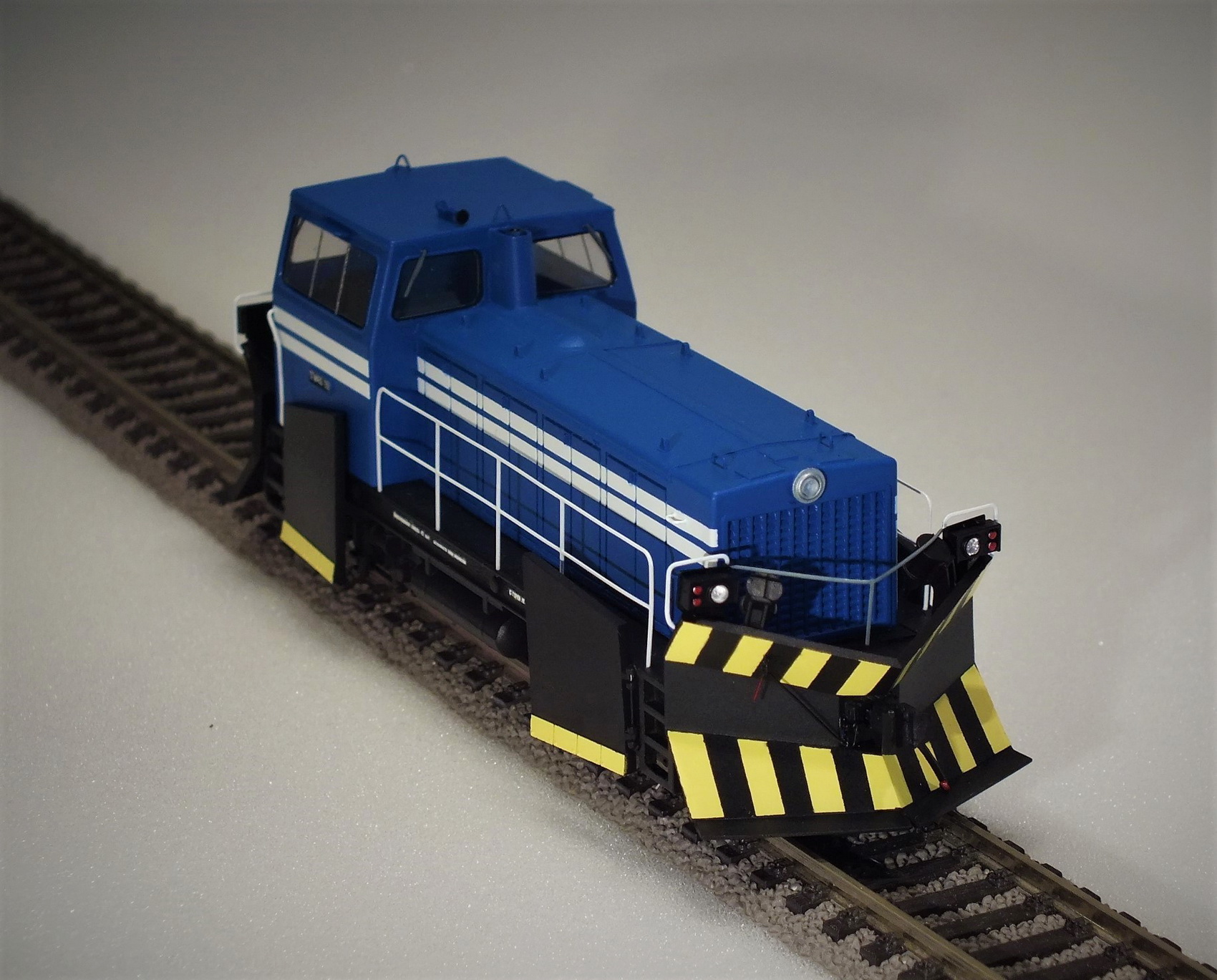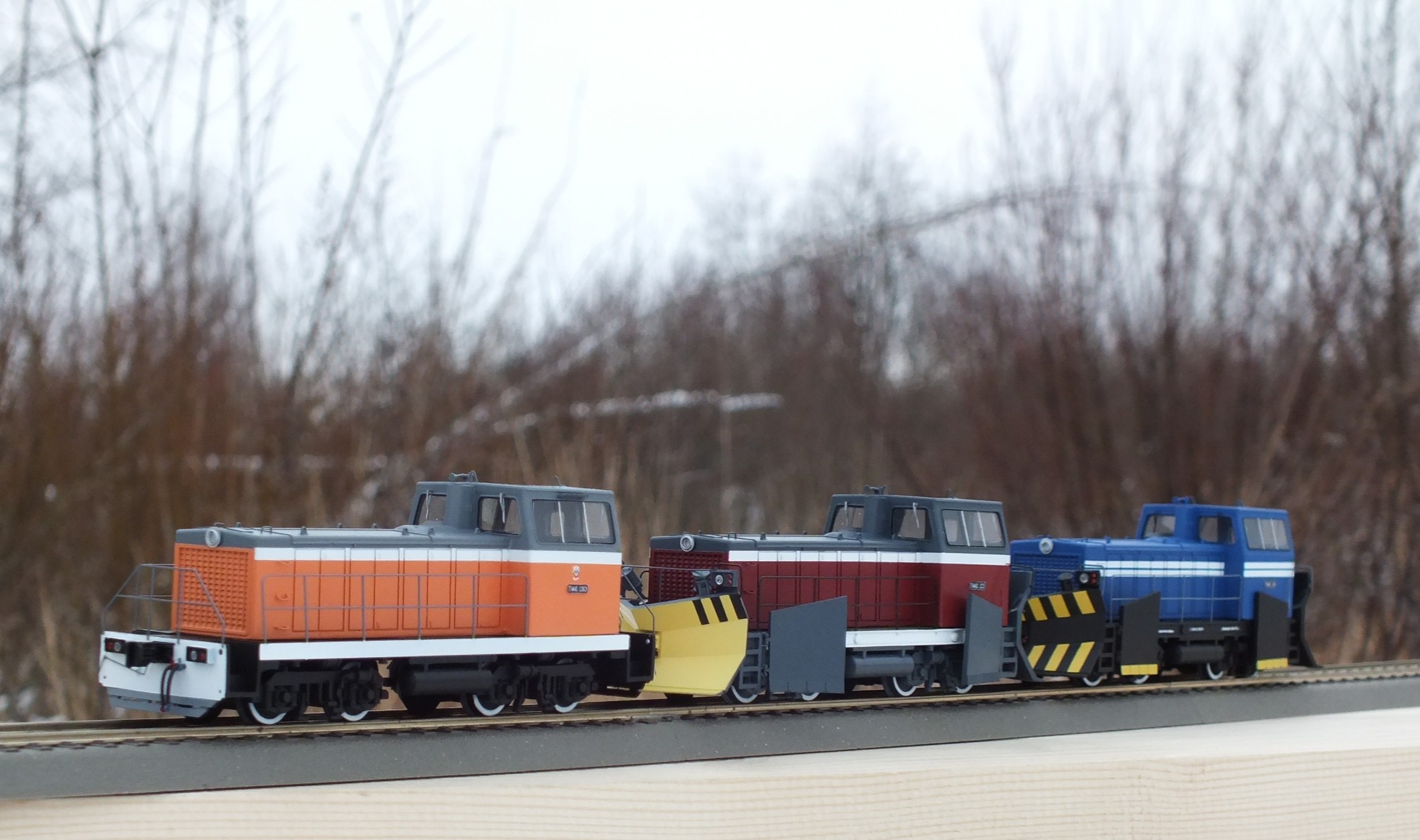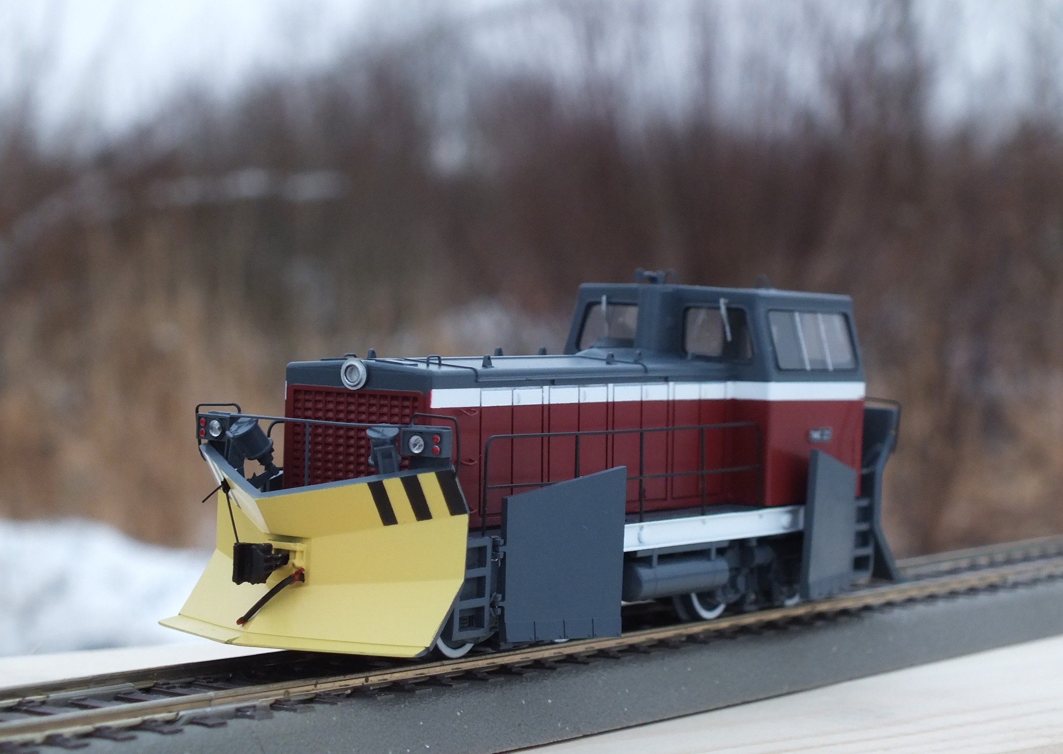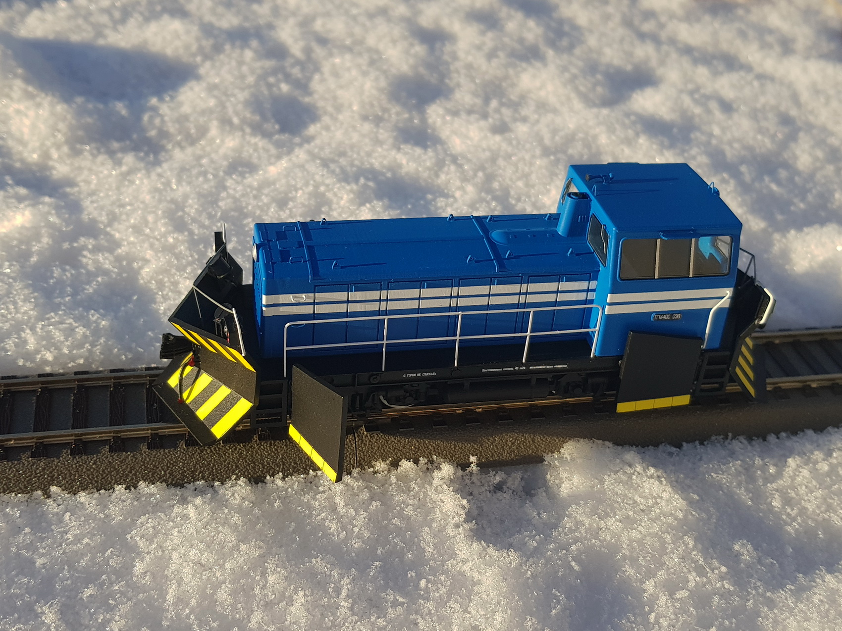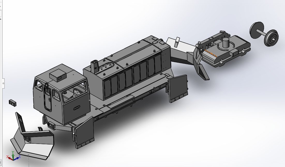 Рендеры модели выкладываю. Мастер-модель выращивается на 3D принтере, дальше тиражирование путем литья из смолы. Модель изначально стендовая, не заточенная под конкретного донора. Возможно в обозримом будущем появится ходовка от отечественного производителя специально под эту модель. У модели есть возможность выполнить боковые ножи откидными.Тепловоз-снегоочиститель ТГМ40С предназначен для маневровой и вывозной работы в режиме тепловоза и очистки от снега железнодорожных путей в режиме снегоочистителя.