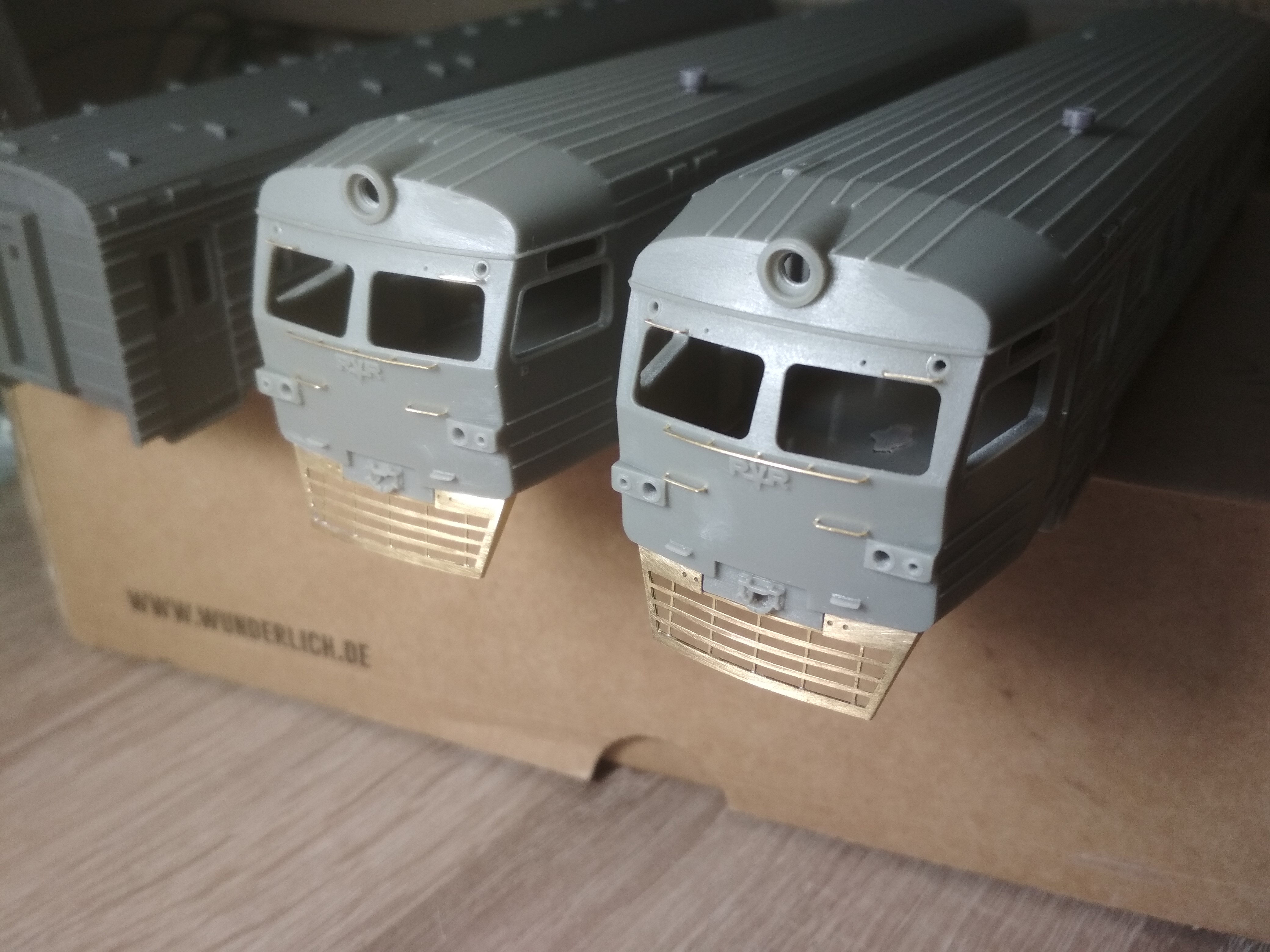 Практически готов к выпуску электропоезд ЭР2 в НО. В комплекте головные, моторные и прицепные вагоны. Заточен под ходовку Br114 ROCO. Ходовка располагается в моторном вагоне.