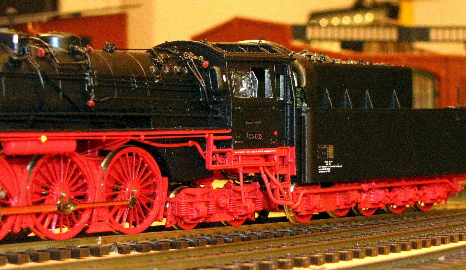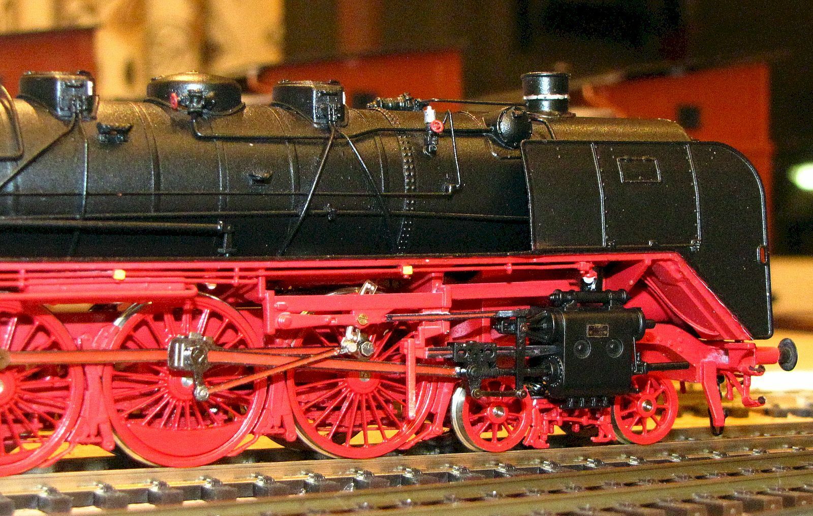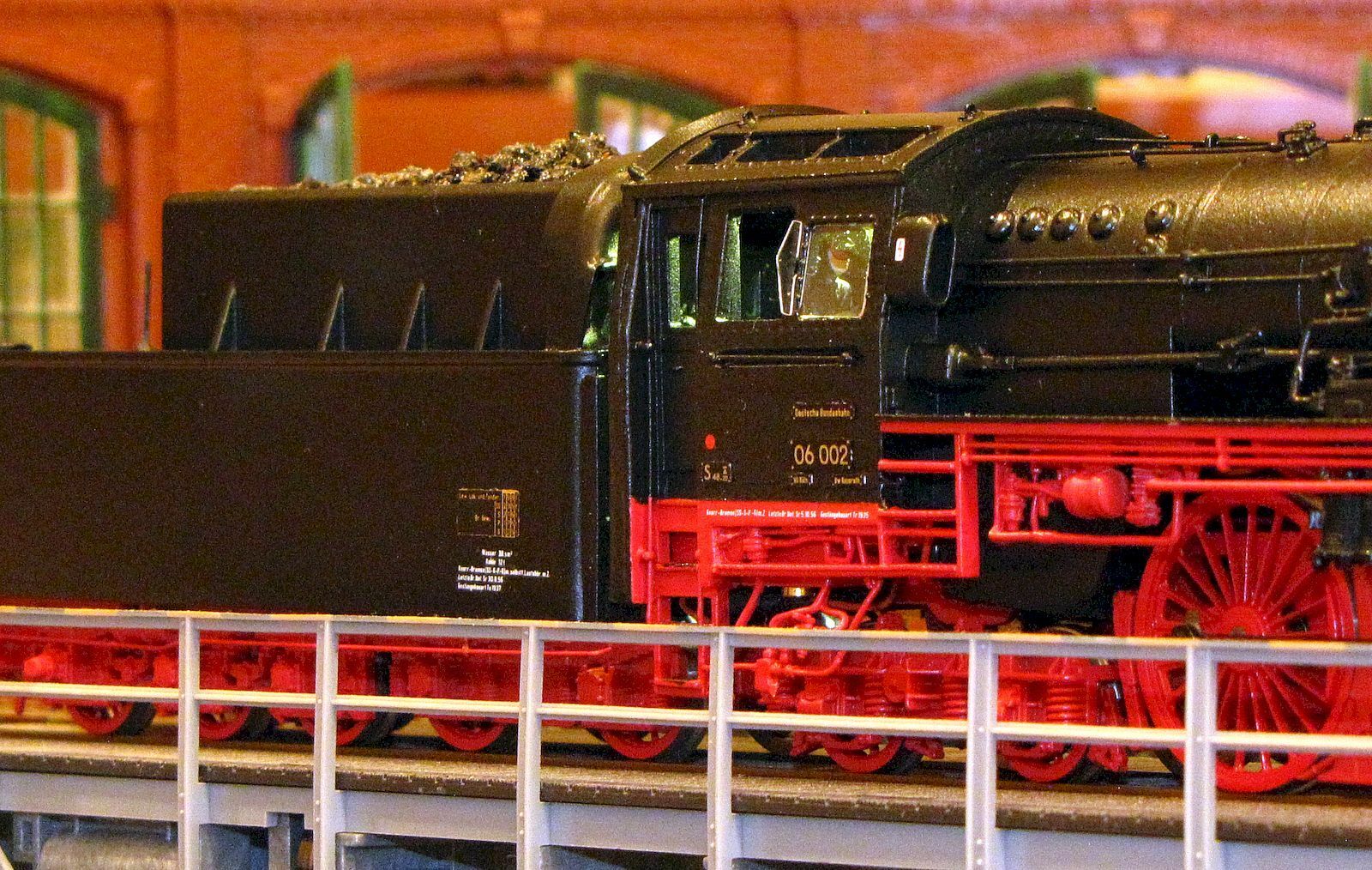 · Модель в основном изготовлена из металла (локомотив и тендерное шасси, котел, контуры, кабина и корпус тендера). Вес = 900 г, длина над буфером 320 мм