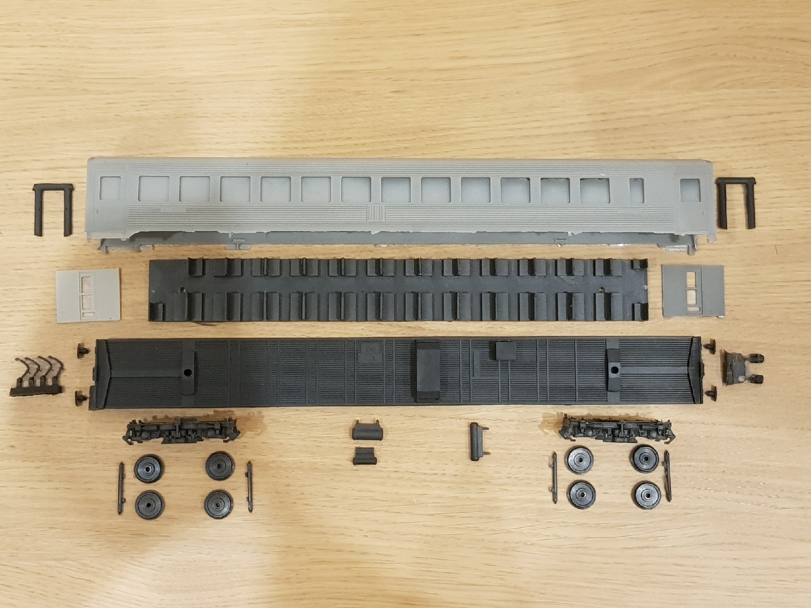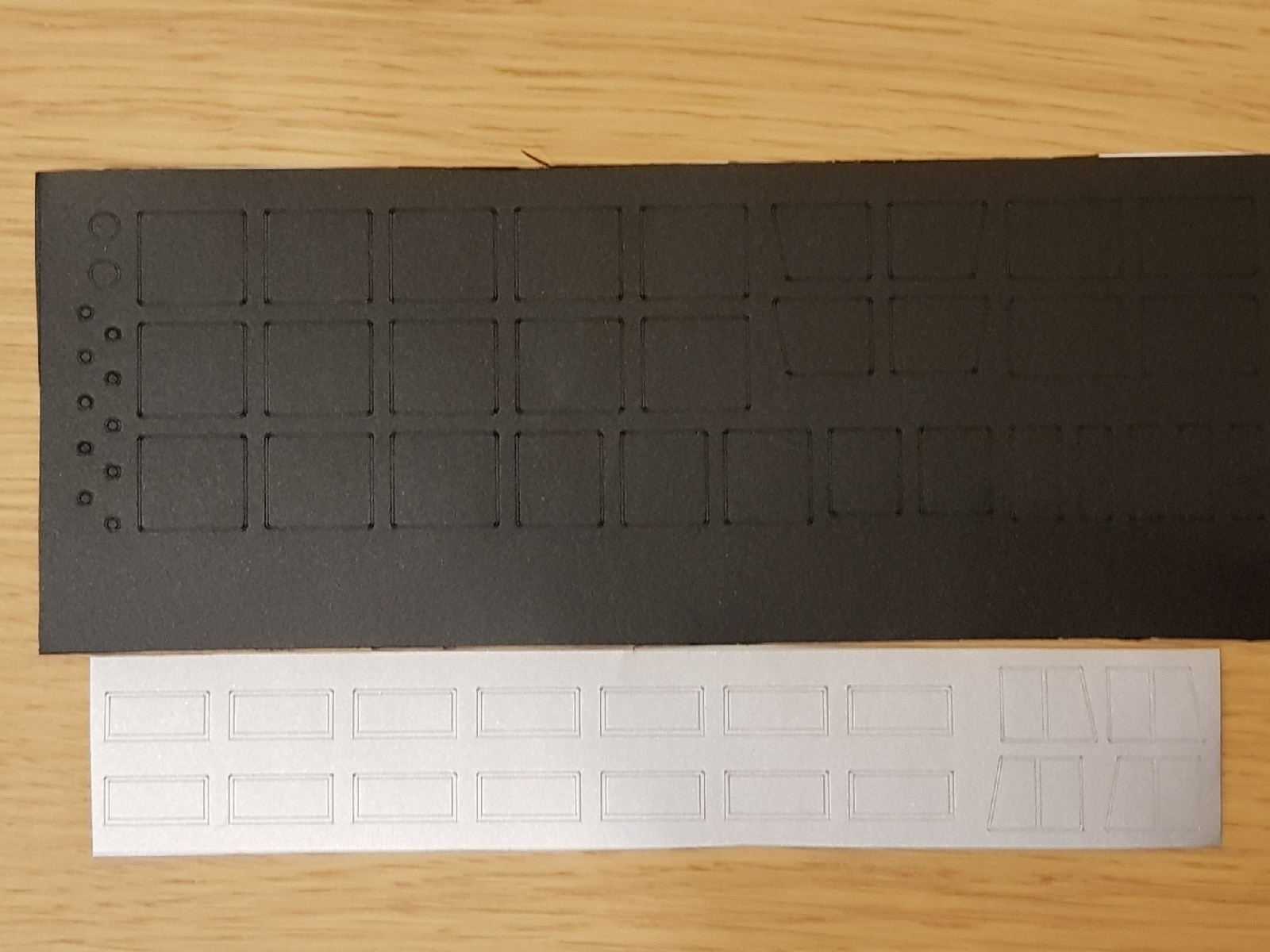 Фото комплектов для сборки головных и прицепных вагонов АЧ2 и АПЧ2. В комплекте нарезанные рамы из оракала черного цвета-имитирующие резиновую окантовку, и рамы открывающихся форточек из оракала цвета полированного алюминия. Так же стекла из абсолютно прозрачного фрезерованного акрила и набор травленки с мелочевкой для головных вагонов.