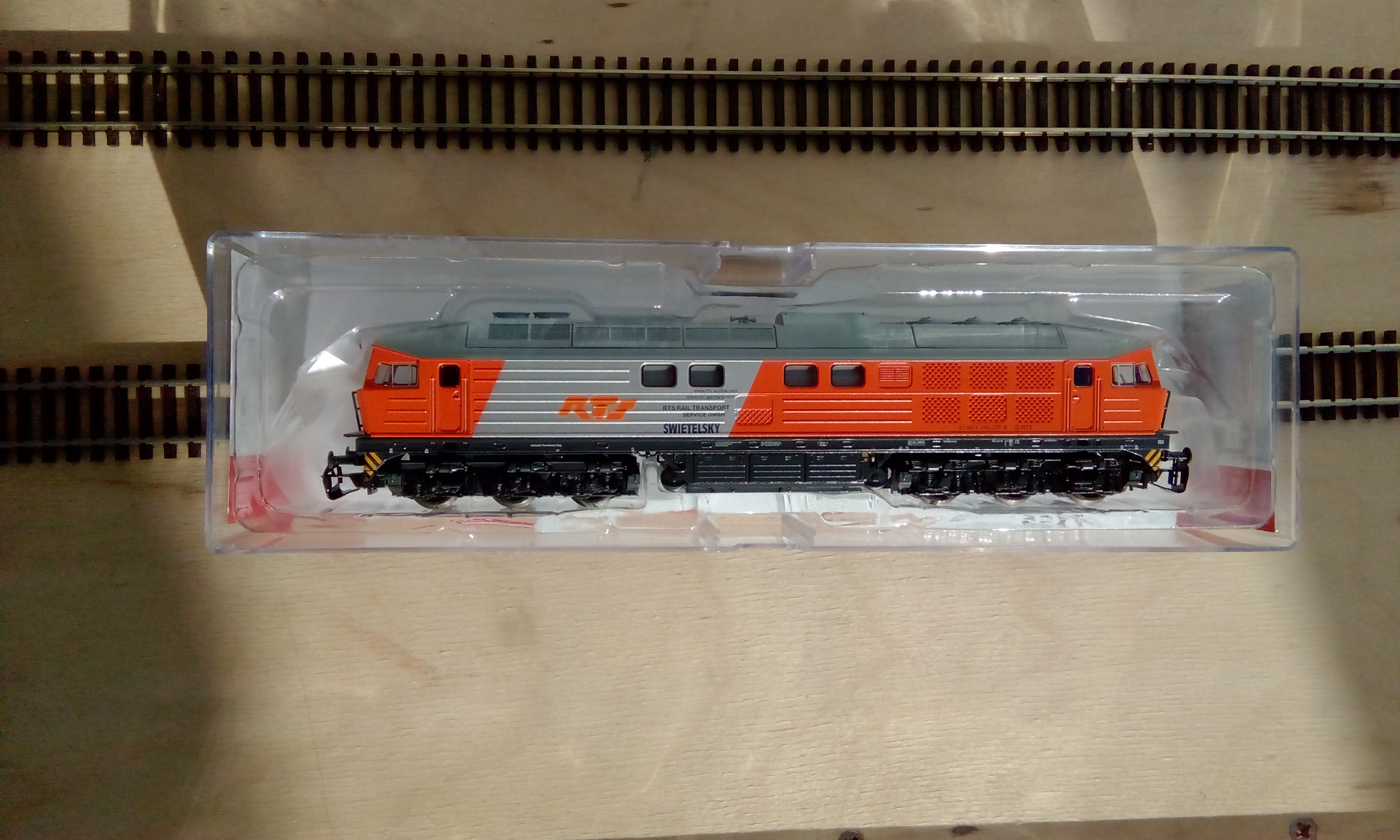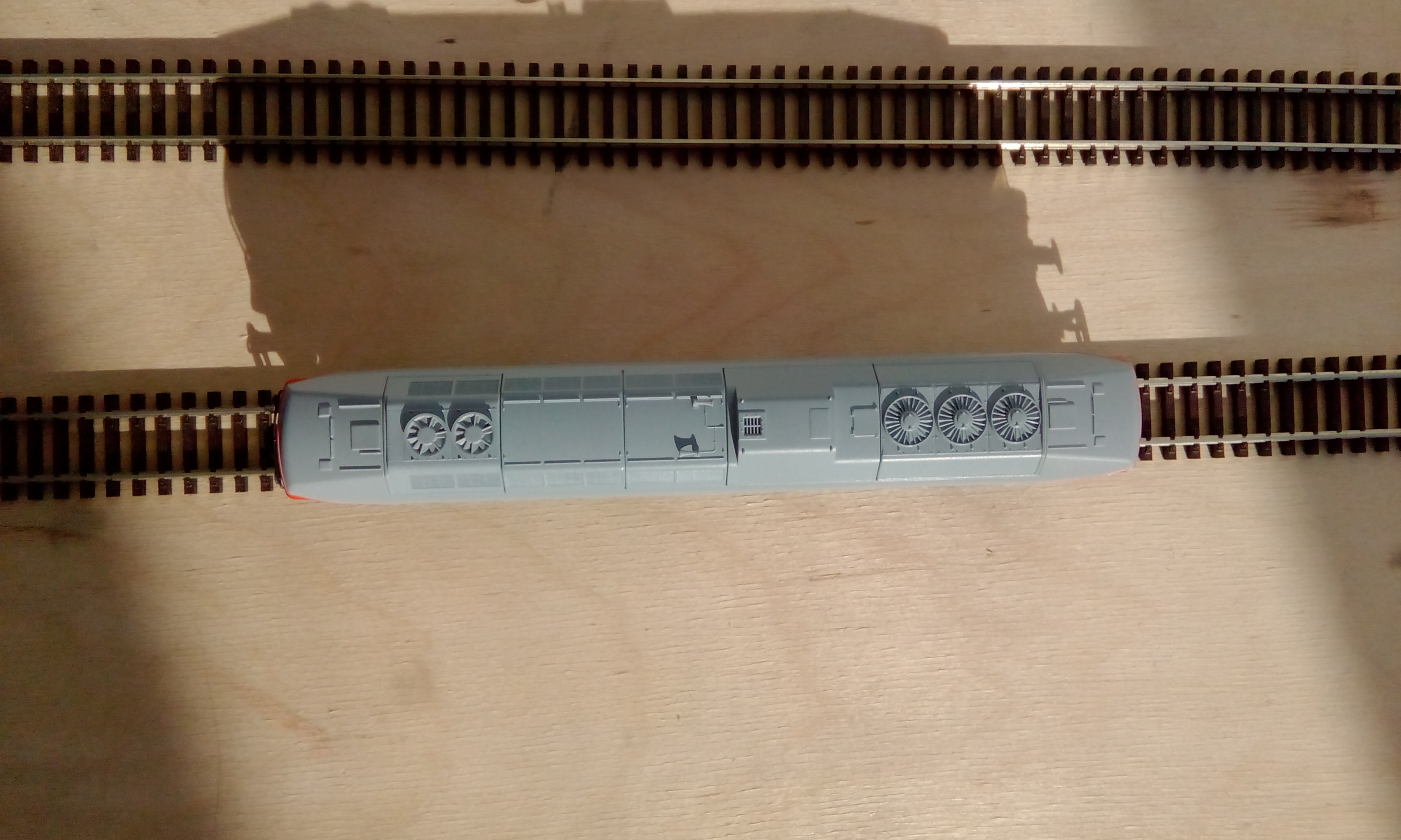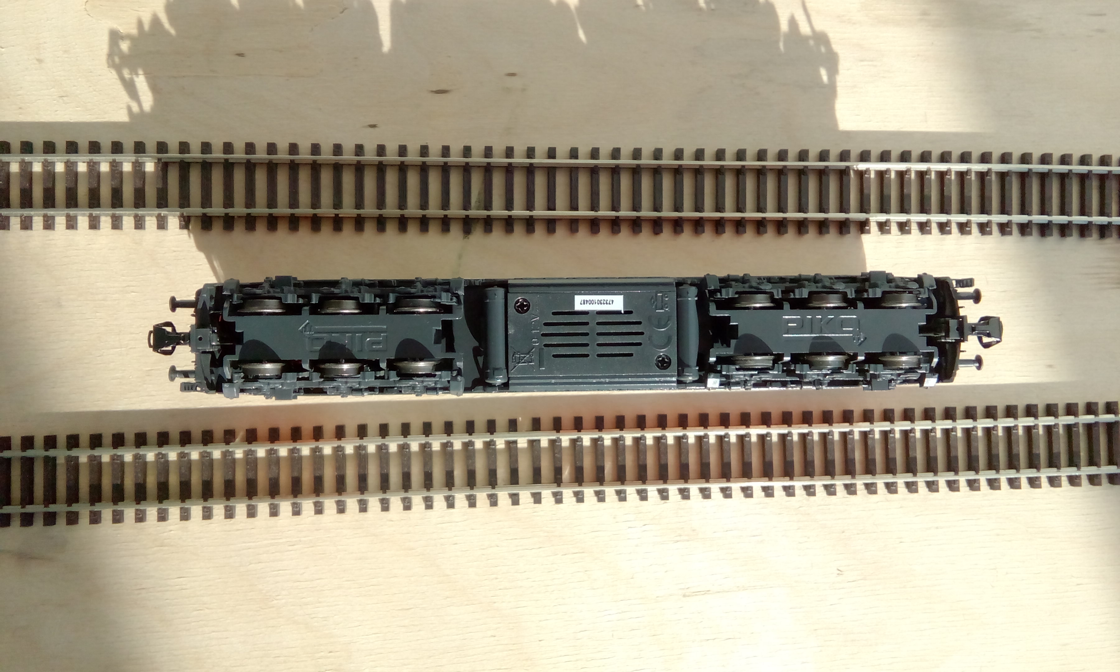 Модель Пико - в традиционном пластиковом боксе. Из плюсов: занимает мало места, сразу видно, что внутри. Из минусов: это все-таки не роковский поролон. Традиционно вид с обеих сторон: Морда: Крыша. Тут видно , что добавлены вентиляторы над тормозными реостатами, как в более поздних сериях. Вообще, Пико правильно сконструировала крышу, которая "набирается" на общей основе. Все блоки с решетками, вентиляторами, глушителем идут отдельными деталями, за счет чего можно получать новые модификации, не меняя основу: Вид снизу. Привод на 4 оси. Снизу бака видна решеточка на винтах - туда, по идее, нужно вставлять динамик