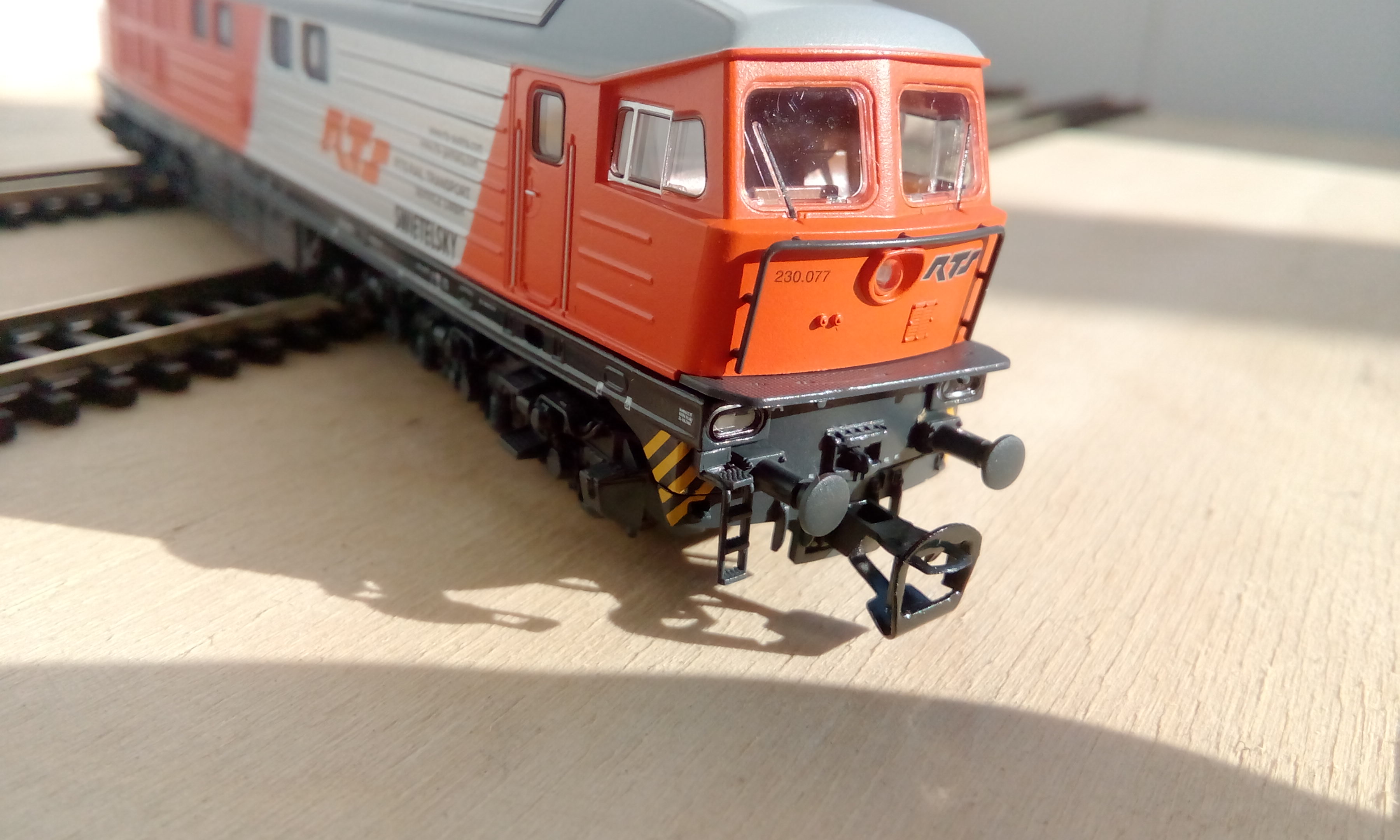 И отдельно детализация морды. Можно разглядеть лесенку возле буфера. В оригинальном 130-м от Пико вместе со сцепкой поворачивается и нижняя часть метельника, здесь же осталась только небольшая "планка", которая и поворачивается со сцепкой (видно на фото): Видео с прототипом модели: