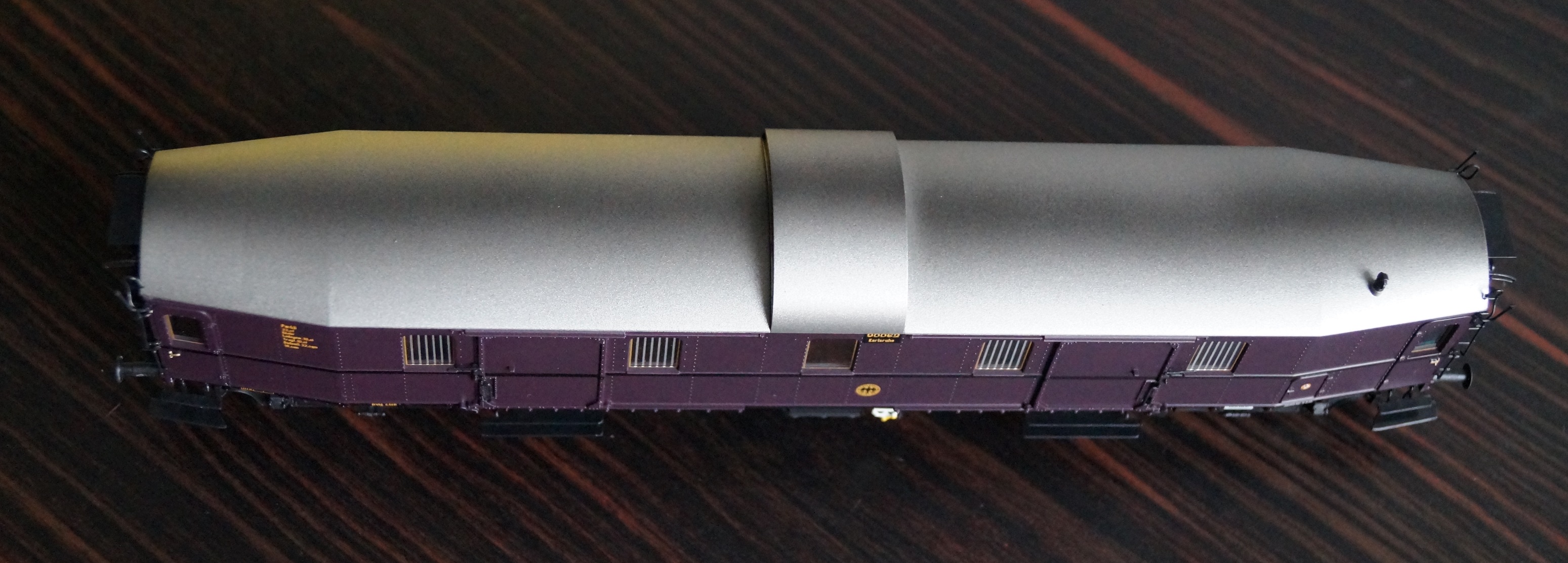 Более поздние сеты от Liliput (в фиолетовой коробке) - отображают состав по состоянию на 1936-й год (те что более синие) и современное (лиловые). К ним эти багажники от Брава неприменимы. Да-да - состояние именно современное, поэтому цвет такой непонятный: Прототип начали цеплять к поездам, когда в начале 1928 года продлили маршрут поезда и нужно было перецеплять локомотив в хвост по станции Карлсруэ. При этом для комфорта и безопасности пассажиров в хвосте по-прежнему должен был находится багажный. Итого их стало два на поездах более дальнего следования. В частности - FFD 102 Mannheim - Basel. А поскольку SPw4u не хватало на все составы, то перекрасили и начали использовать Pw4u.