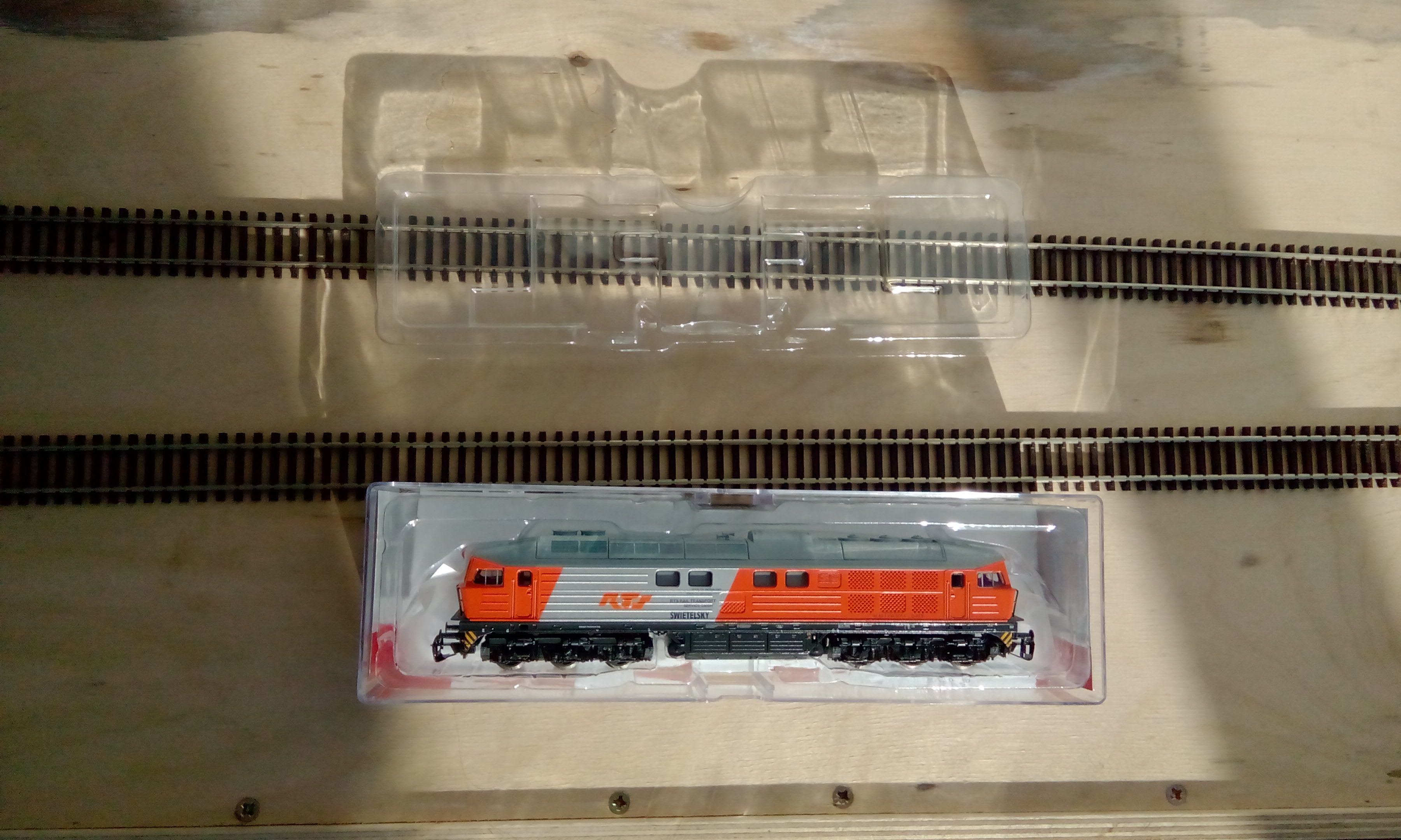 Модель Пико - в традиционном пластиковом боксе. Из плюсов: занимает мало места, сразу видно, что внутри. Из минусов: это все-таки не роковский поролон. Традиционно вид с обеих сторон: Морда: Крыша. Тут видно , что добавлены вентиляторы над тормозными реостатами, как в более поздних сериях. Вообще, Пико правильно сконструировала крышу, которая "набирается" на общей основе. Все блоки с решетками, вентиляторами, глушителем идут отдельными деталями, за счет чего можно получать новые модификации, не меняя основу: Вид снизу. Привод на 4 оси. Снизу бака видна решеточка на винтах - туда, по идее, нужно вставлять динамик