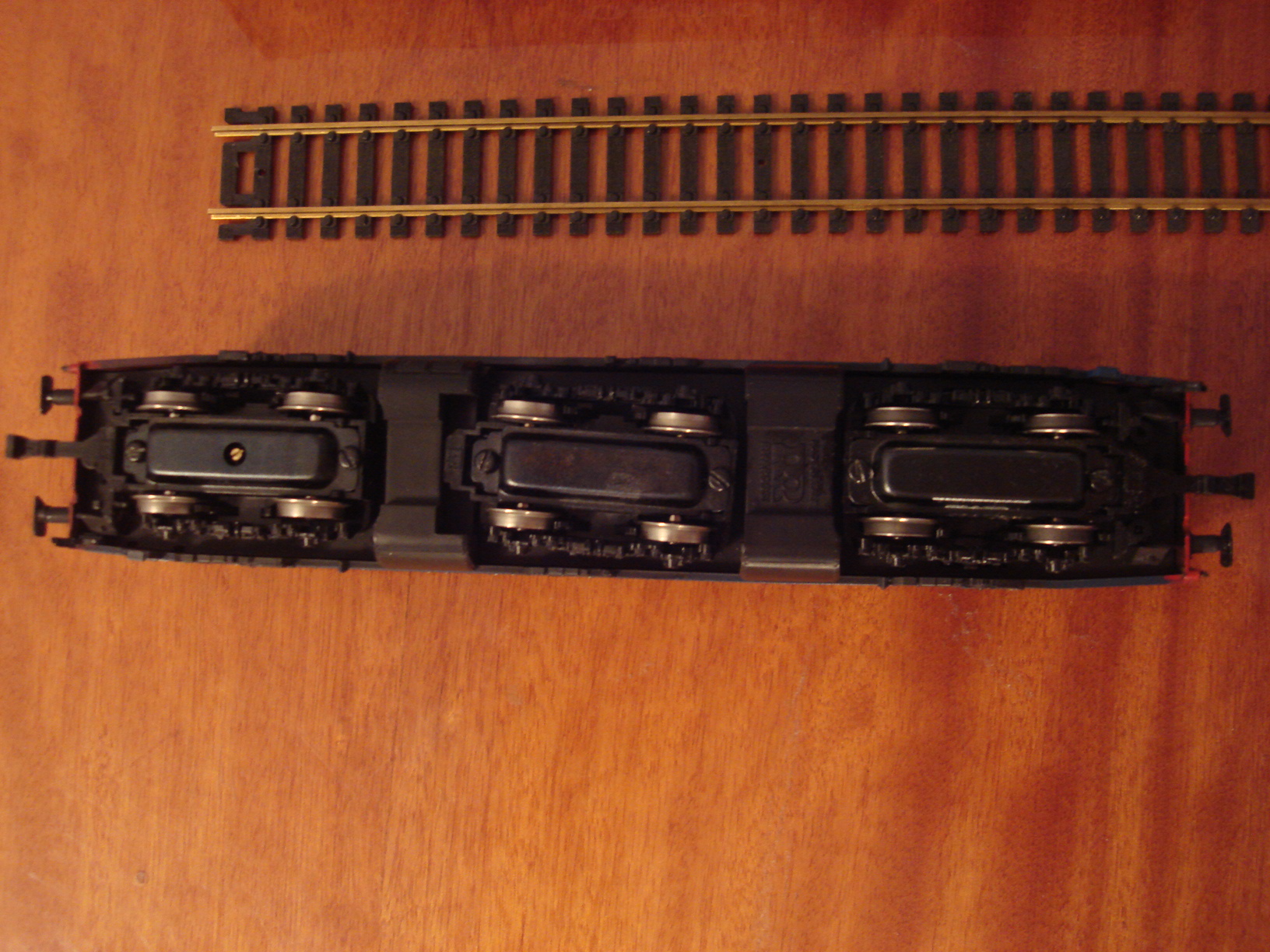 Весьма оригинальный трехтележечный конструктив. Особенно понравилось, что средняя телега не болтается просто так, как например у некоторых моделей Роко, а тоже эффективно участвует в движении. Одним словом - классный локомотив и отлично проработанный!