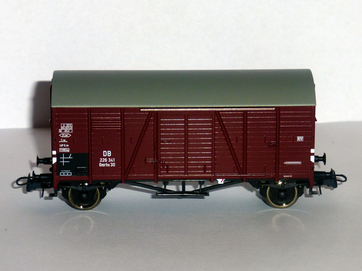 • Brawa 47963 (DB, III эпоха, обозначение Gрms 30 c послевоенной рекламой Osram)