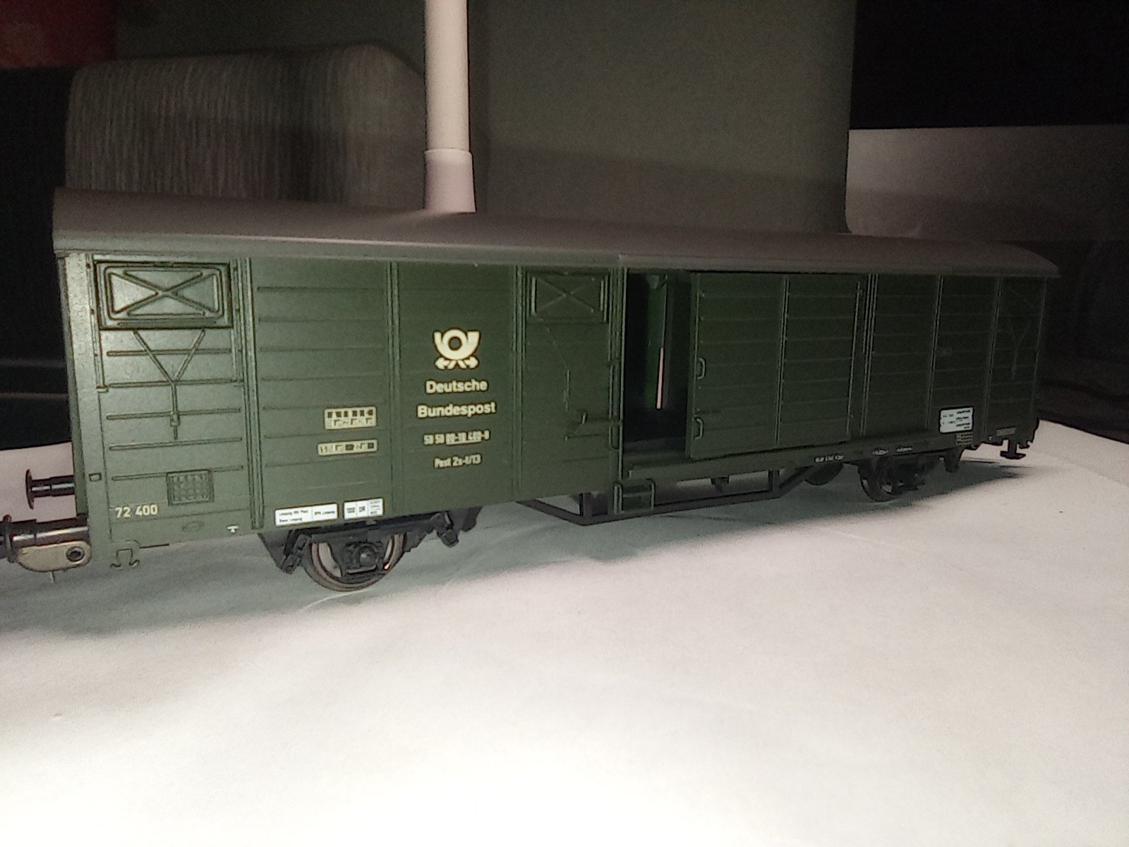 Недавно в коллекции моих почтовых вагонов появился вот такой экземпляр. Так как я приверженец DB, основной мой парк составляют модели именно этой железной дороги. И вот, после получения данного вагона, когда я открыл долгожданную посылку, увидел, что на вагоне с надписью и логотипом Deutsche Bundespost (логотип пятой эпохи и именно ФРГ), красуются надписи DR и маршрут Лейпциг - Котбус. Вопрос к знатокам, может эти вагоны, когда-либо, ещё до объединения Германии, передавались из одной железной дороги другой? Дата ревизии 88-й год.