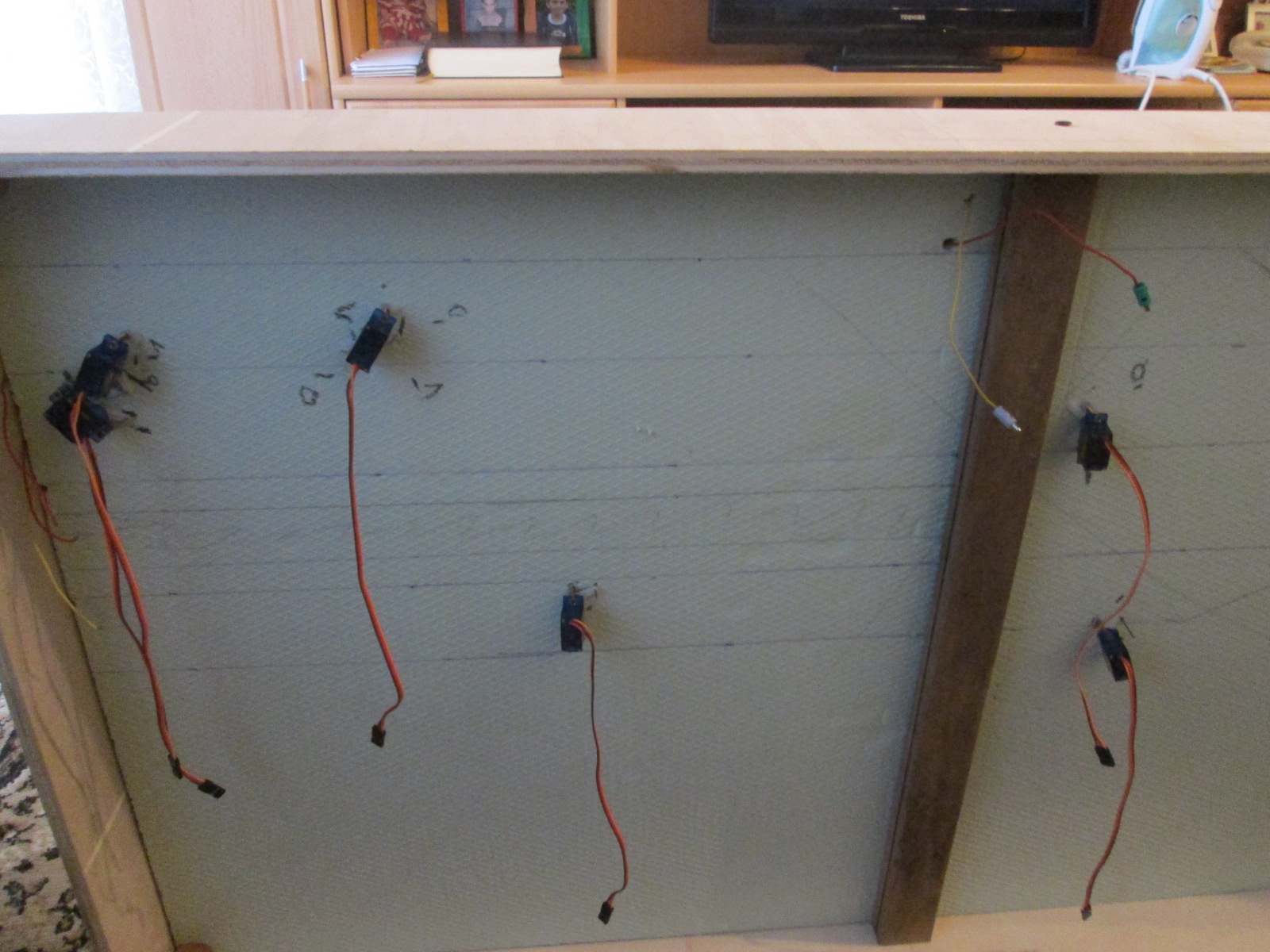 а теперь по макету. все таки перевел все управление стрелками под макет осталось в запасе 6 сервомоторов. а на второй половине требуется 7. думаю убрать пару стрелок и часть пути которые планировал сделать как депо, тем самым увеличу длину перрона самого короткого