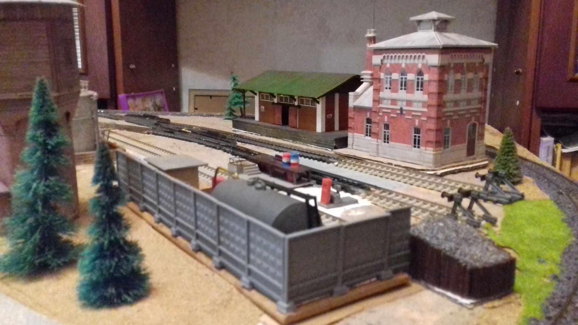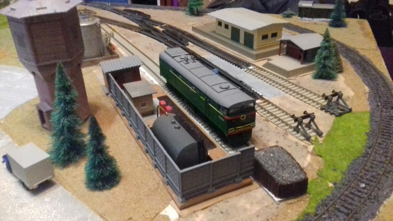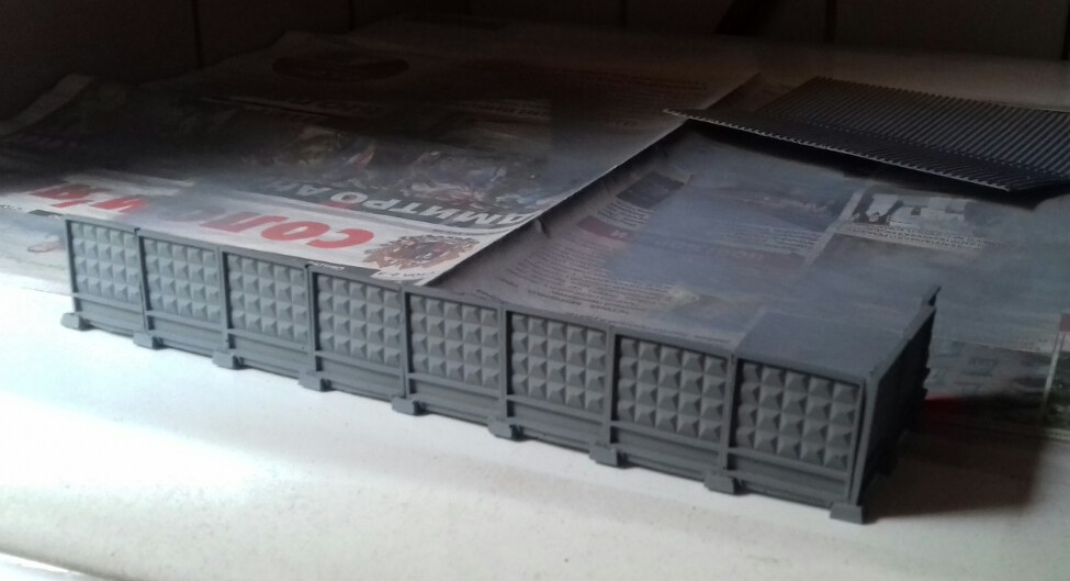 Благодаря одному нашему коллеге удалось раздобыть забор, типичный для наших пейзажей. Отливки из смолы, исходник выглядел приблизительно так: Путем несложных манипуляций собрал вот такой сегмент и окрасил под бетон. Чтобы огородить весь ПТОЛ (пункт тех. обслуживания локомотивов) имеющихся фрагментов не хватало. Впрочем, на реальной ЖД отнюдь не всегда все огорожено наглухо... потому будет пока так: Над дальнейшим развитием ограды буду еще думать.