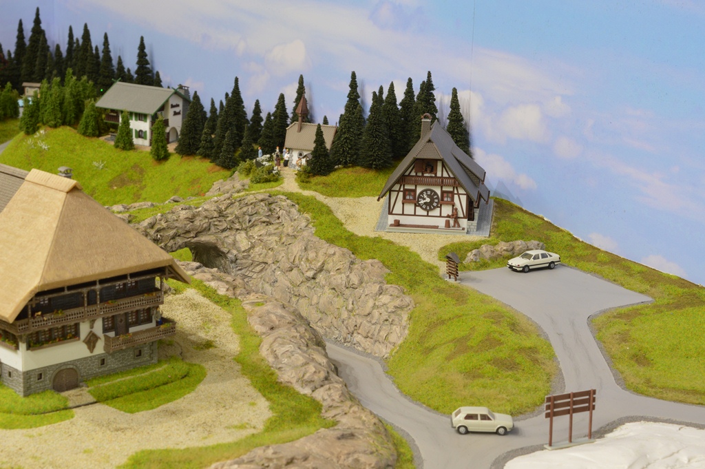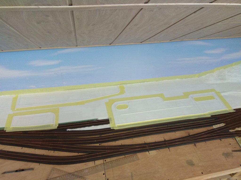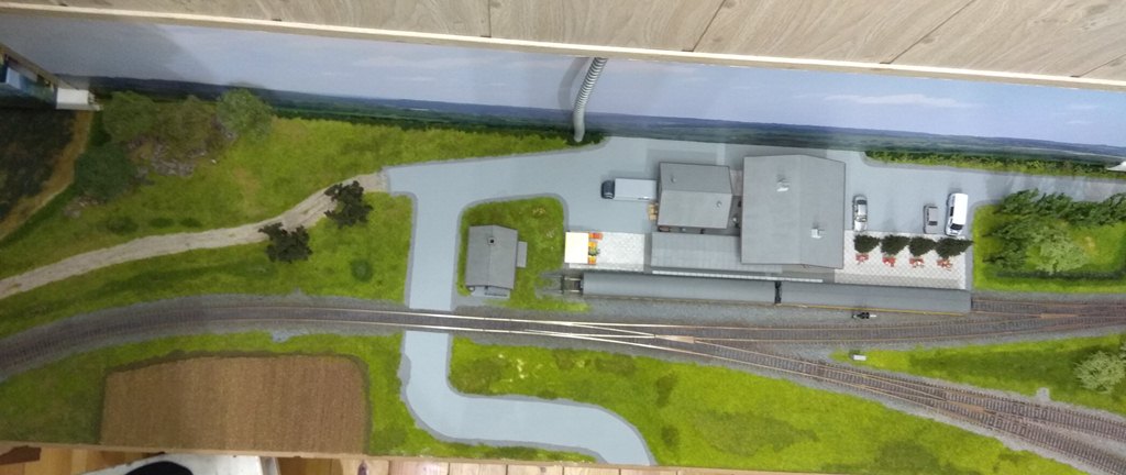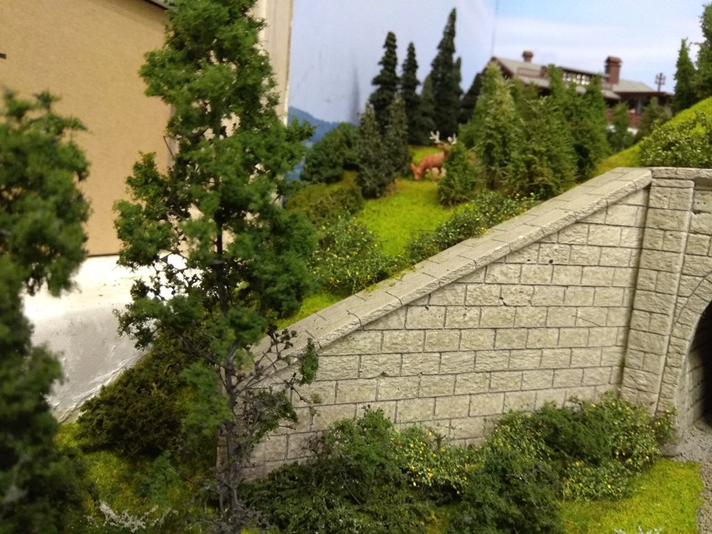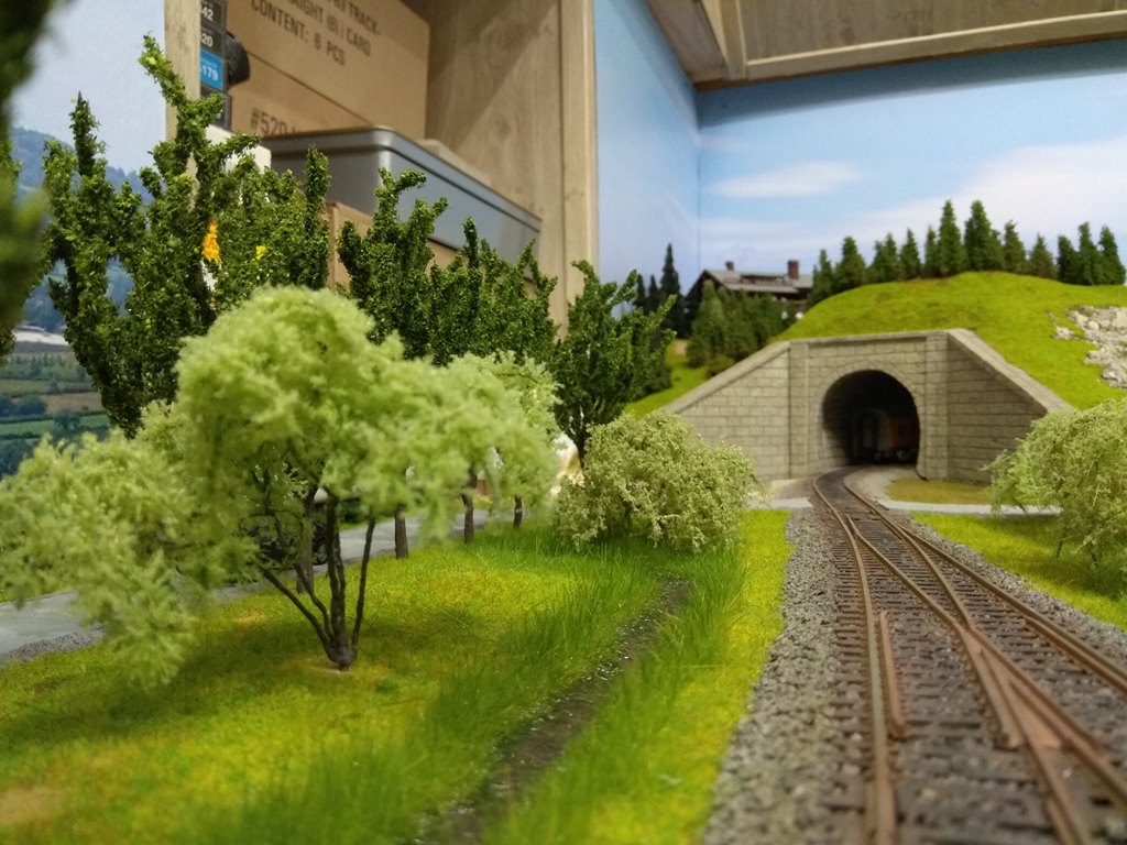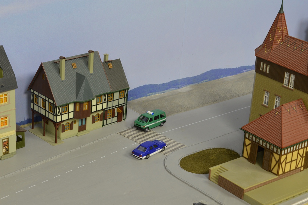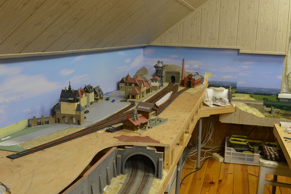 На сегодня в городе сделаны дорога и тротуары, дорога в горах за городам, уложены и частично забалластированы пути. Тротуары сделаны из моей любимой гипсовой шпаклевки вторым слоем над слоем дороги.