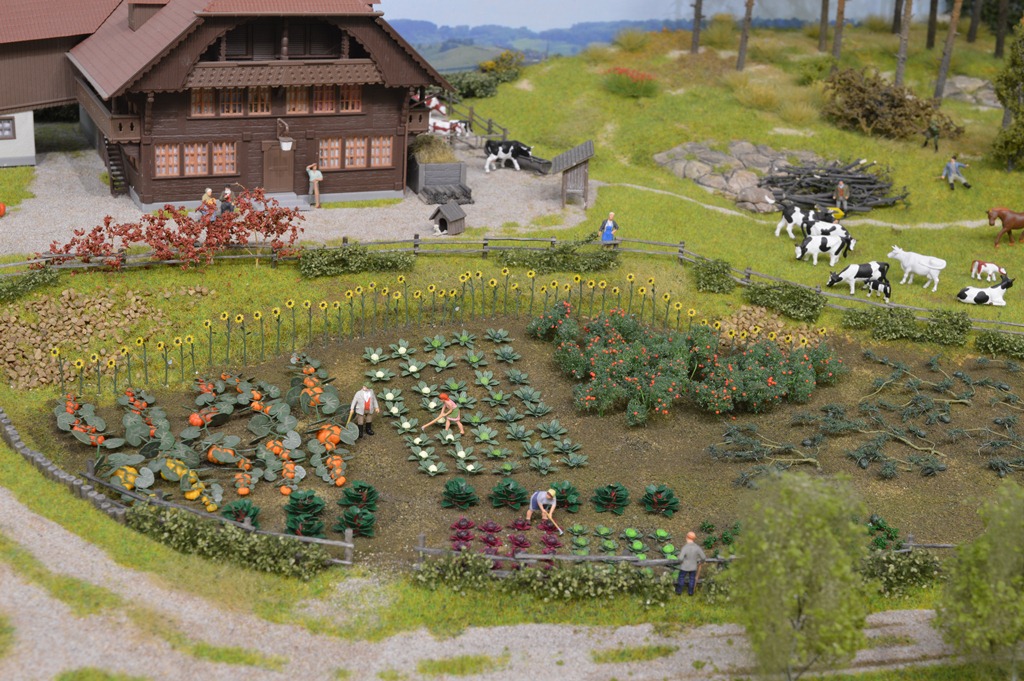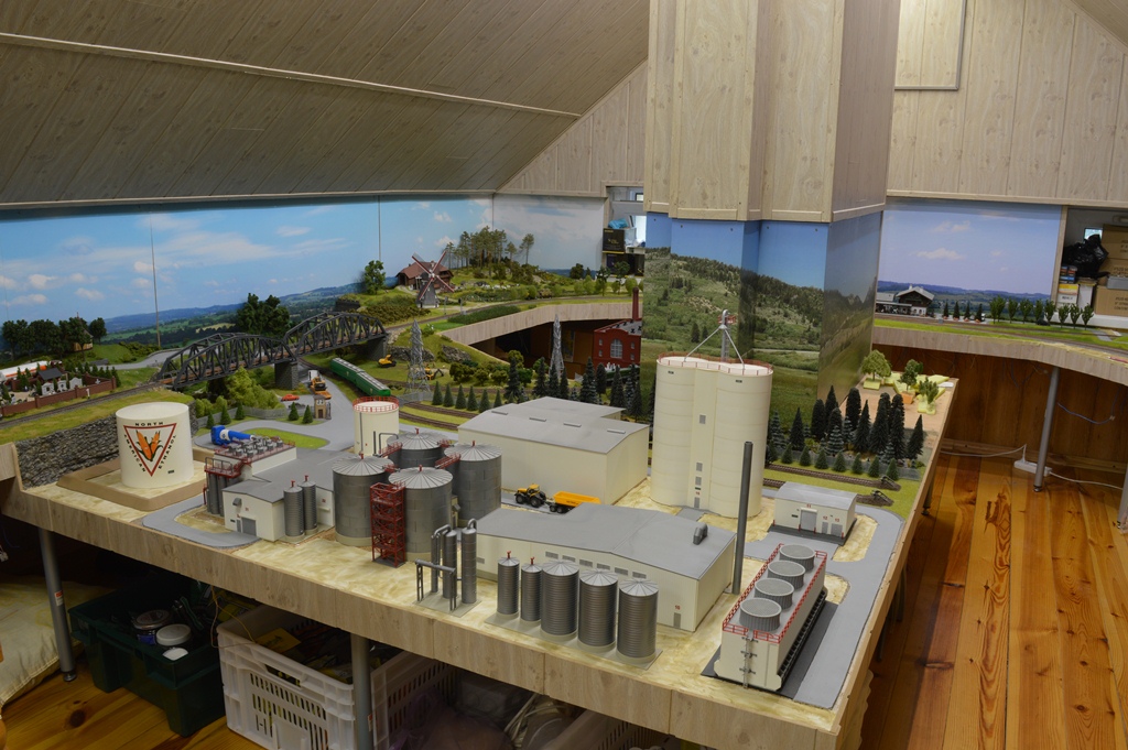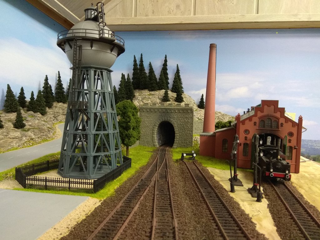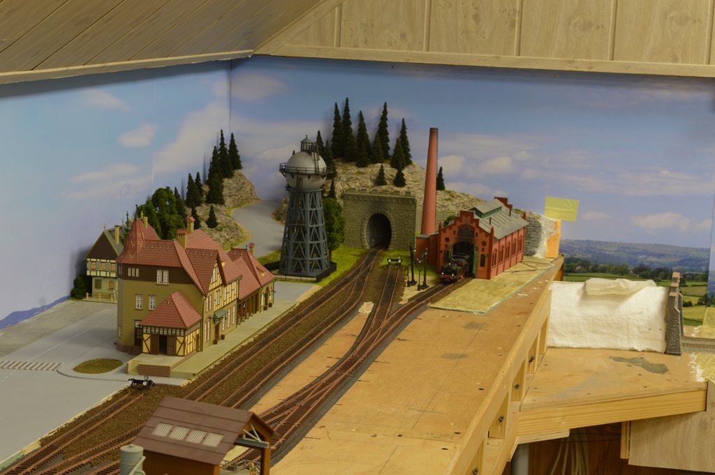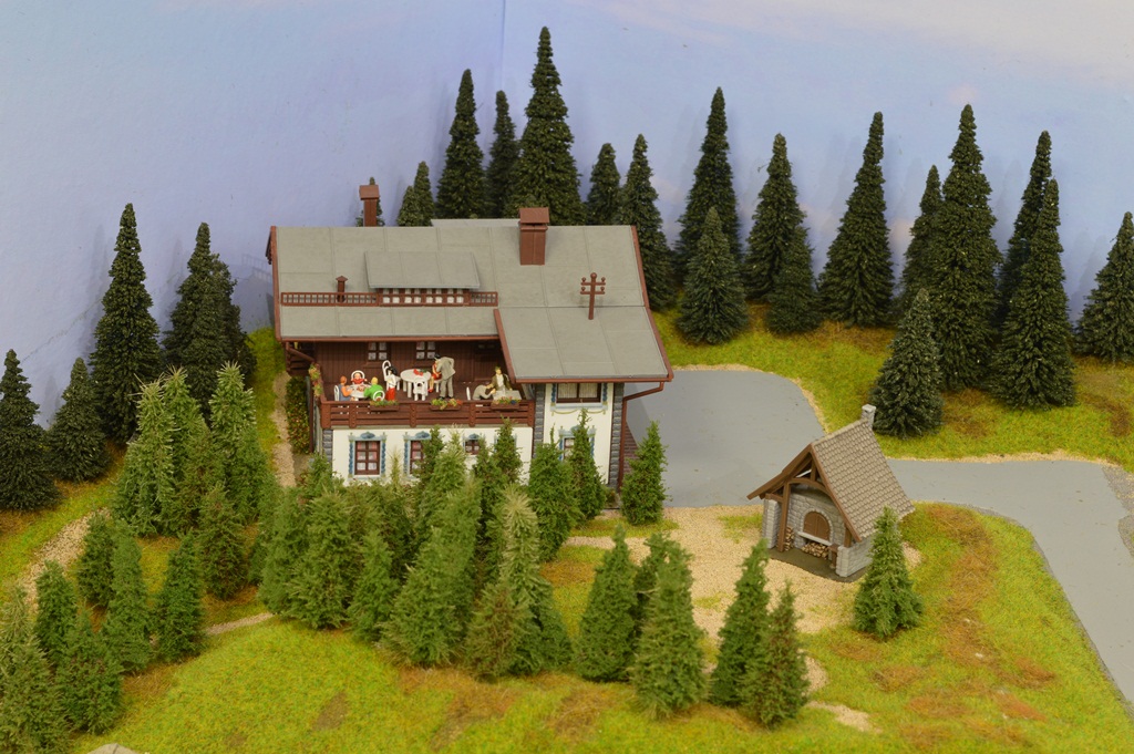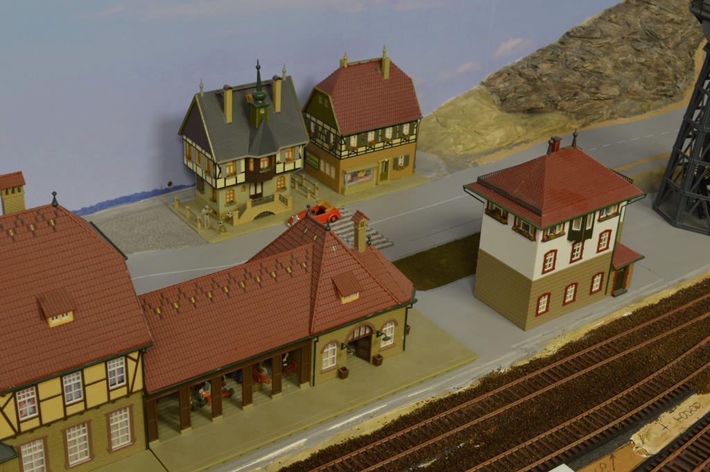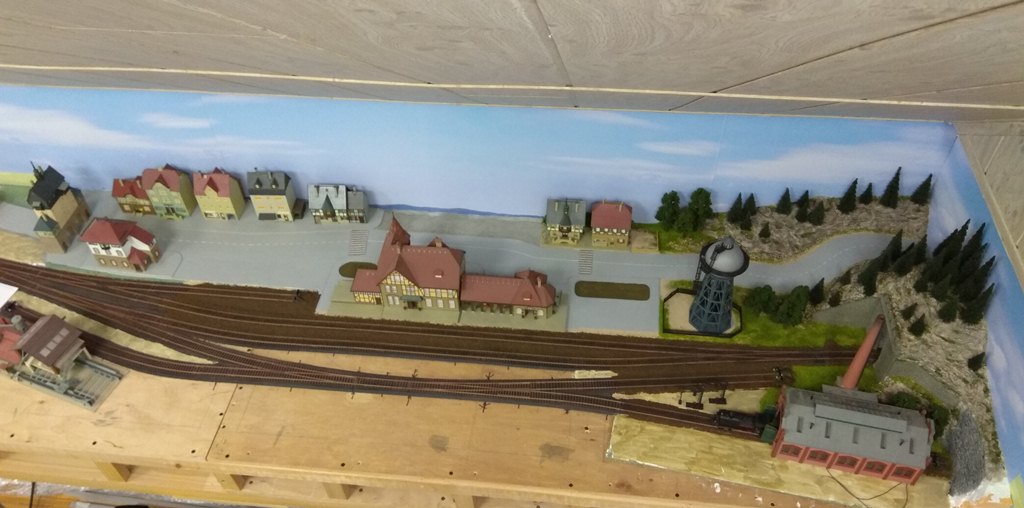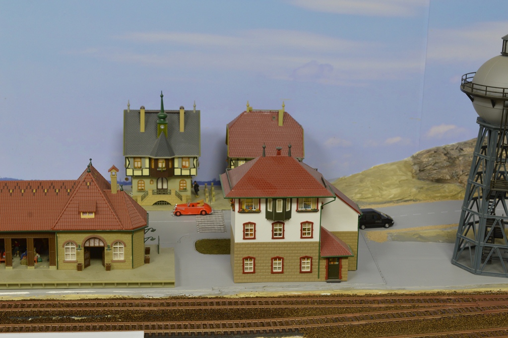 Этот участок макета я называю "старым городом", поскольку здесь собраны домики, которые я клеил еще школьником (страшно сказать!) около 45 - 50 лет тому назад. Это еще VERO. Для полноценного города добавил чуть более новые станцию, депо, лесопилку и водонапорную башню. Им примерно лет по 25...