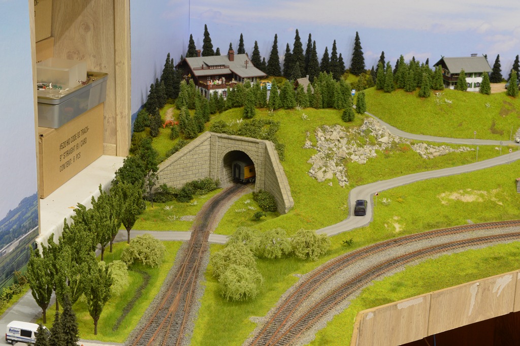 По рельсовой схеме макета станция тупиковая, но визуально направо путь уходит в туннель как бы на перегон.