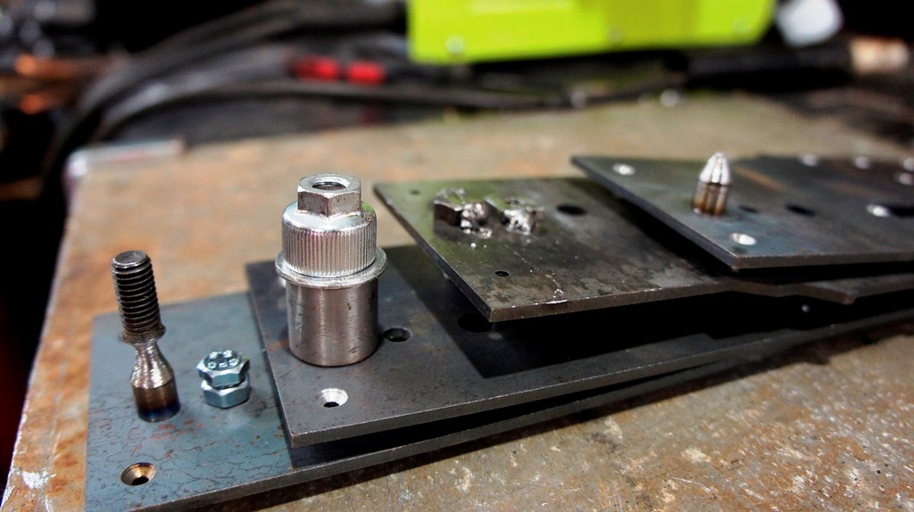 Спочатку взяв молоток і вирівняв СВОЇ граблі :lol:. Правда з першого разу не дуже :oops: . Бо купив зенкер 6,3мм (наш) для отворів за 100грн і спалив його вже на 5-му отворі. Потім 2-й (франц.) на 20-му десь. І тоді я серйозно підійшов до ГРАБЕЛЬ :lol: :!: Ютуб велика сила- наточив свердло під 90градусів (як у зенкера). З 1-го заходу, у всіх 36 пластинах, назенкував отвори (більше 500) Ціна питання 10грн. Токарі мені казали - болти не симетричні, треба центрувати.... фігня. Примотав дрель до столу скотчом :) , зажав болт(різьба ціла лишається), включив на максимум. Флексом зробив проточку для направляючої. На фото знизу видно. Не ідеально, але функію виконує. Година часу на всі. Наступний крок - зварювання. Електроди взяв вітчизняні -2мм (менших не було у нас). Звичайний інвертор і... результат на фото. Перший раз варив 2-ю. Взагалі варю рідко і для дому. Болт центрував і притискав за допомогою металевого циліндра та гайки. Квадратну гайку теж притиснув для зварювання. Ось фото: