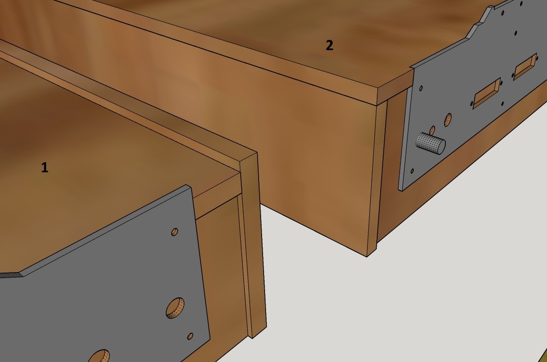 У 1-му варіанті ми зберігаємо чисту боковину, в 2-му видно торець фанери. У 1-му є ще декілька особливостей, але це потім. Оскільки практичного досвіду у виготовленні модулів не маємо, є питання: