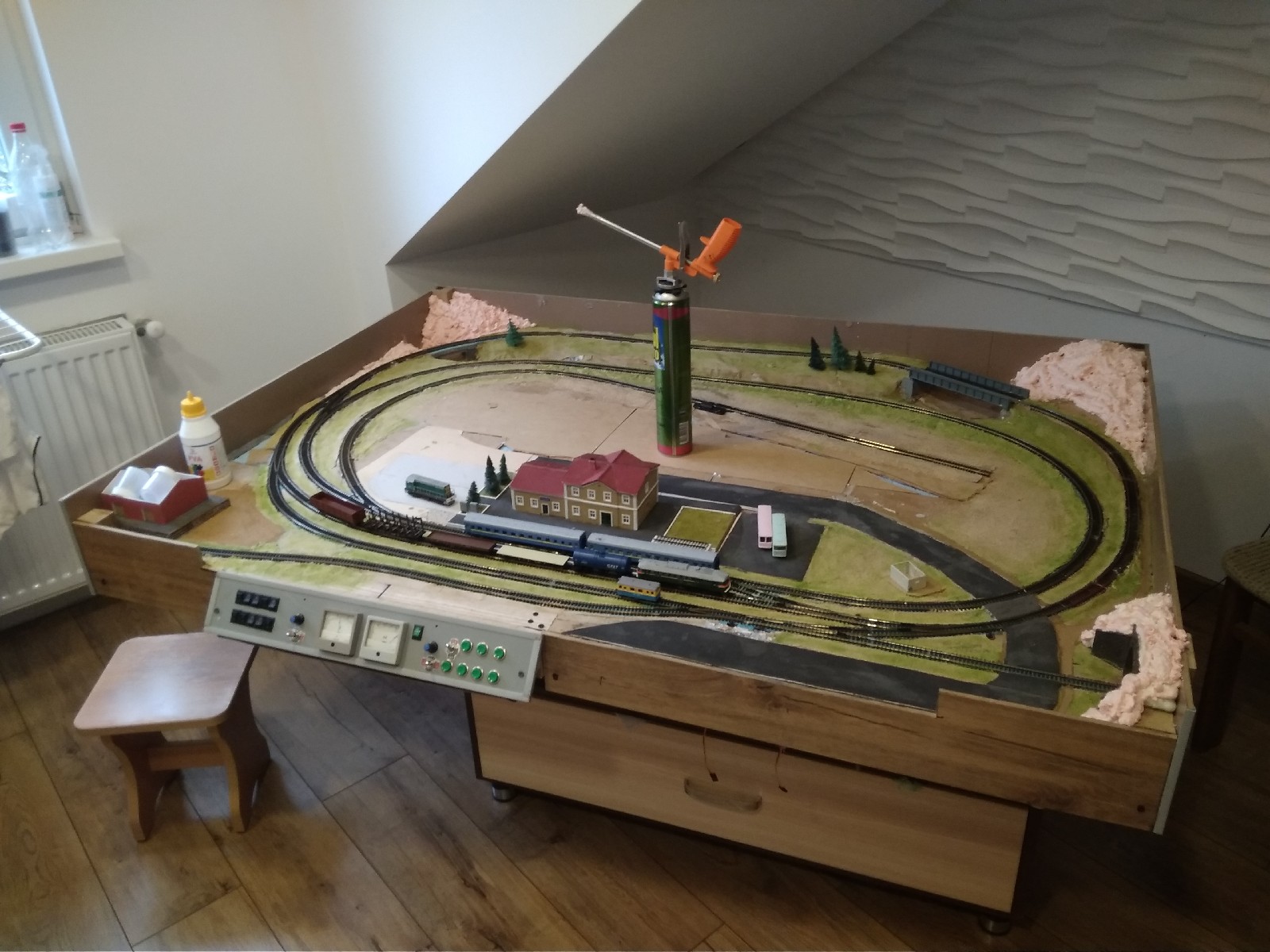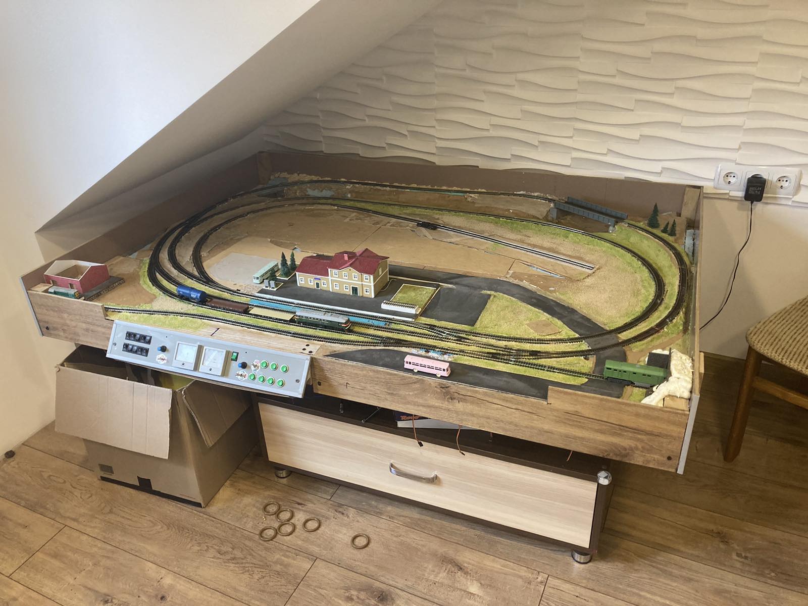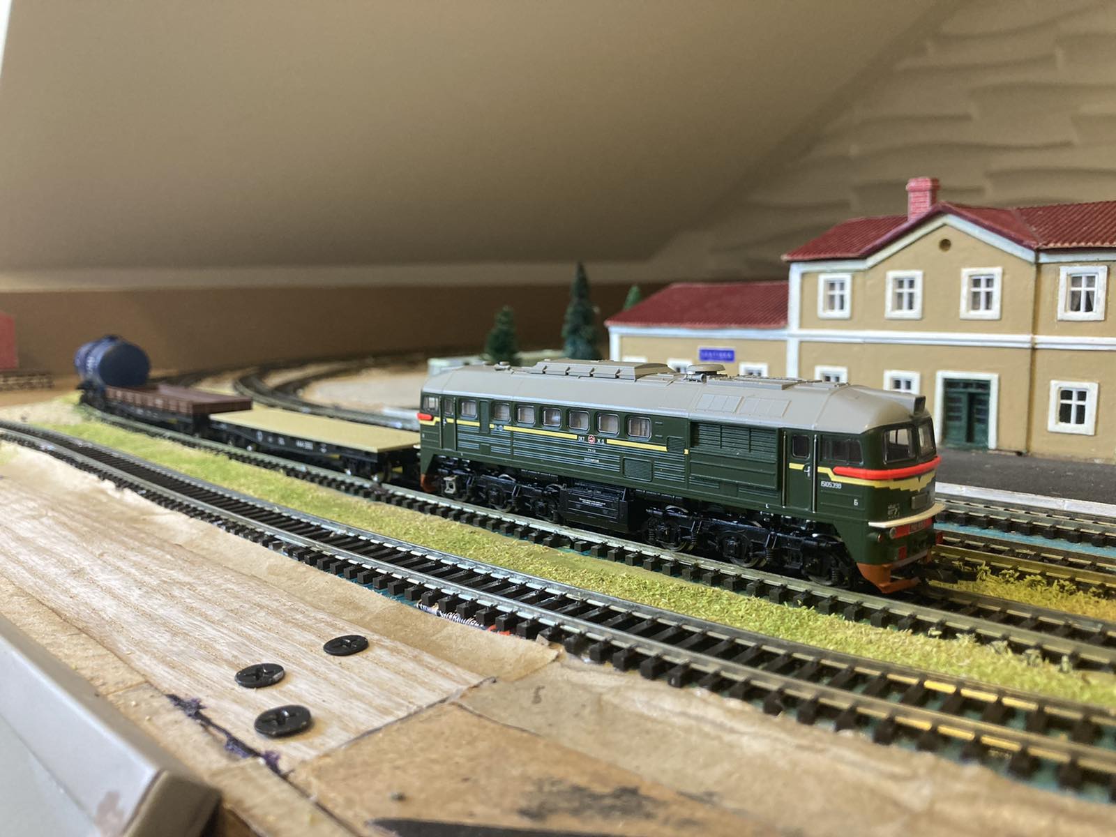 Христос воскрес. Зі святом тебе. Макет досить гарний і цікавий виходить. Питання - мінімум інфаструктури, це добре -макет не перегружений , але пропадае стільки корисної площі - не жалко?. у мене теж в планах обзавестись макетом- поки визрівае концепція. теж не хочу сильно перегруженого. але й пустий теж не комільфо.На прикладі твого яб станцію зробив на дальних коліях, а на передніх коліях зробив би невелике депо,щоб можна було місить якісь маневри . поки інший поїзд проходить колами через вокзал. а також можна робити заміну локів на поїздах через маневри. -макет стае цікавішим і не так швидко набридатиме, ніж просто їзда по колам. тим більше площа дозволяе. ТТшка -як не як. Сам заради цього продав НО -тепер обзавожусь потрохи ТТшкою.
