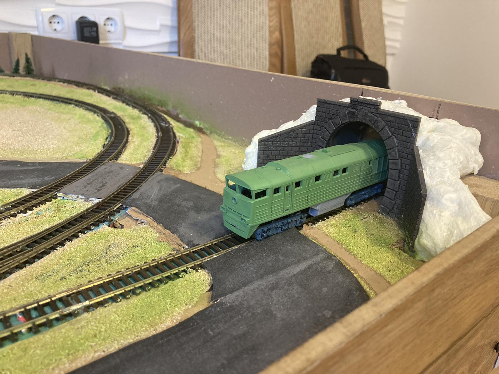 Я про тонель з правої сторони і віртуальний початок гори припустив лише тому, що в тебе в правому передньому куті запаркований тапок -наполовину схований в тонельному порталі. А портал тонеля підсвідомо привязуе або до проходу крізь гору ,або спуск під землю (метро) "" правда в метро тапку робити нічого"" тож метро відпадае. От і прикинув - щоб красиво обіграть портал. щоб він не був інородним тілом на макеті.Arkee » 03 май 2021, 12:56