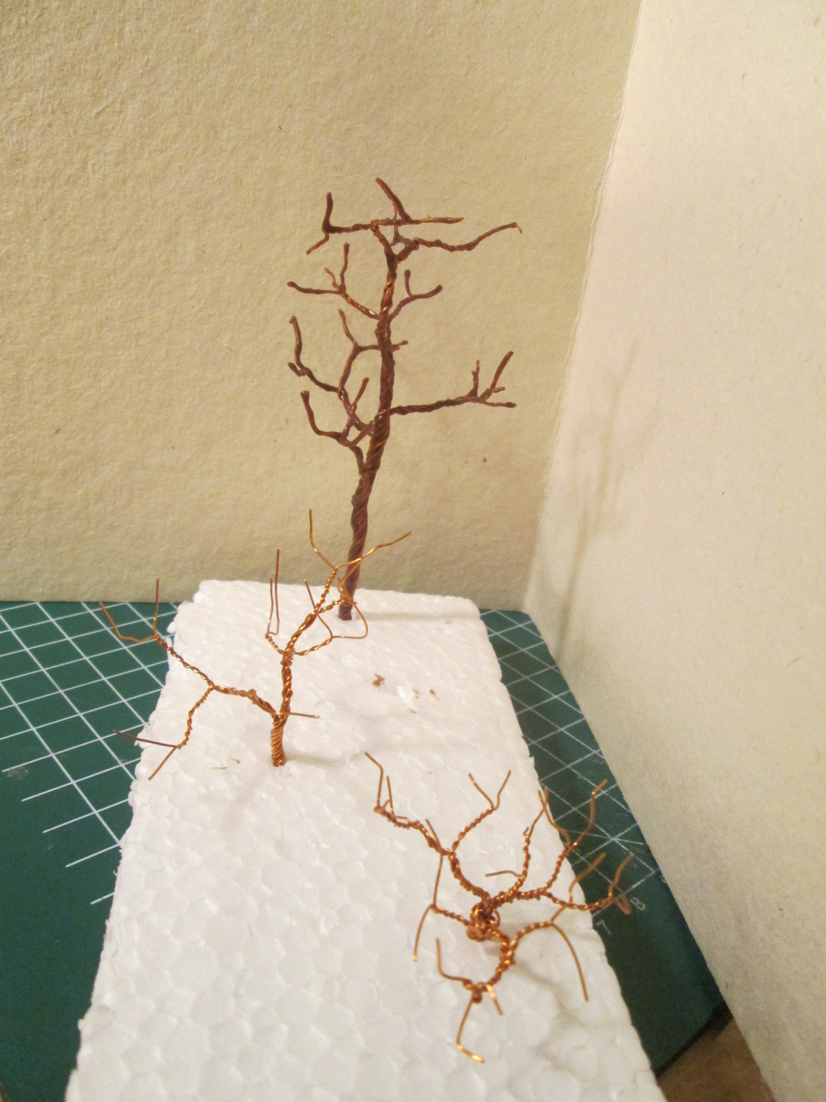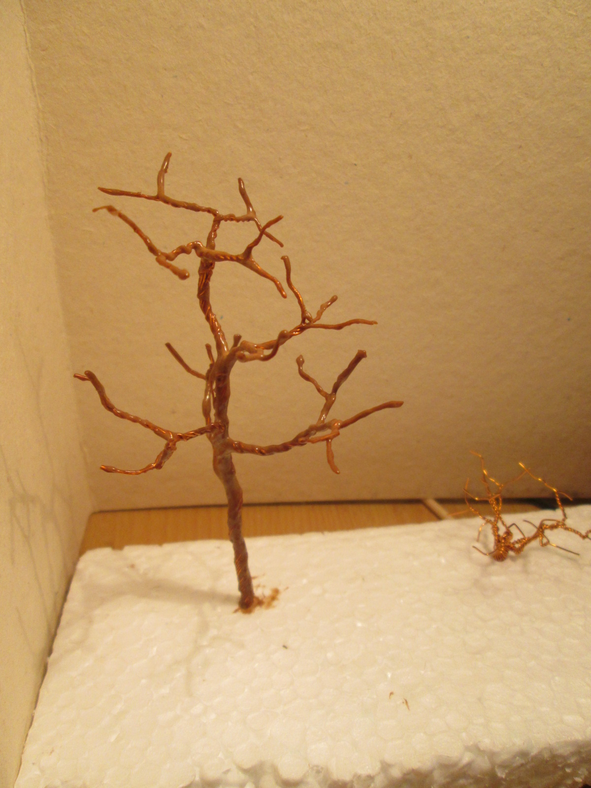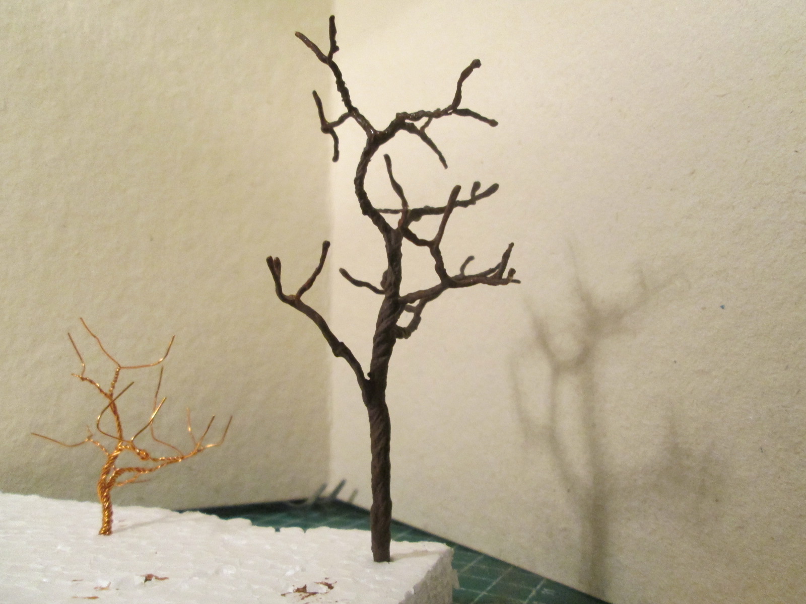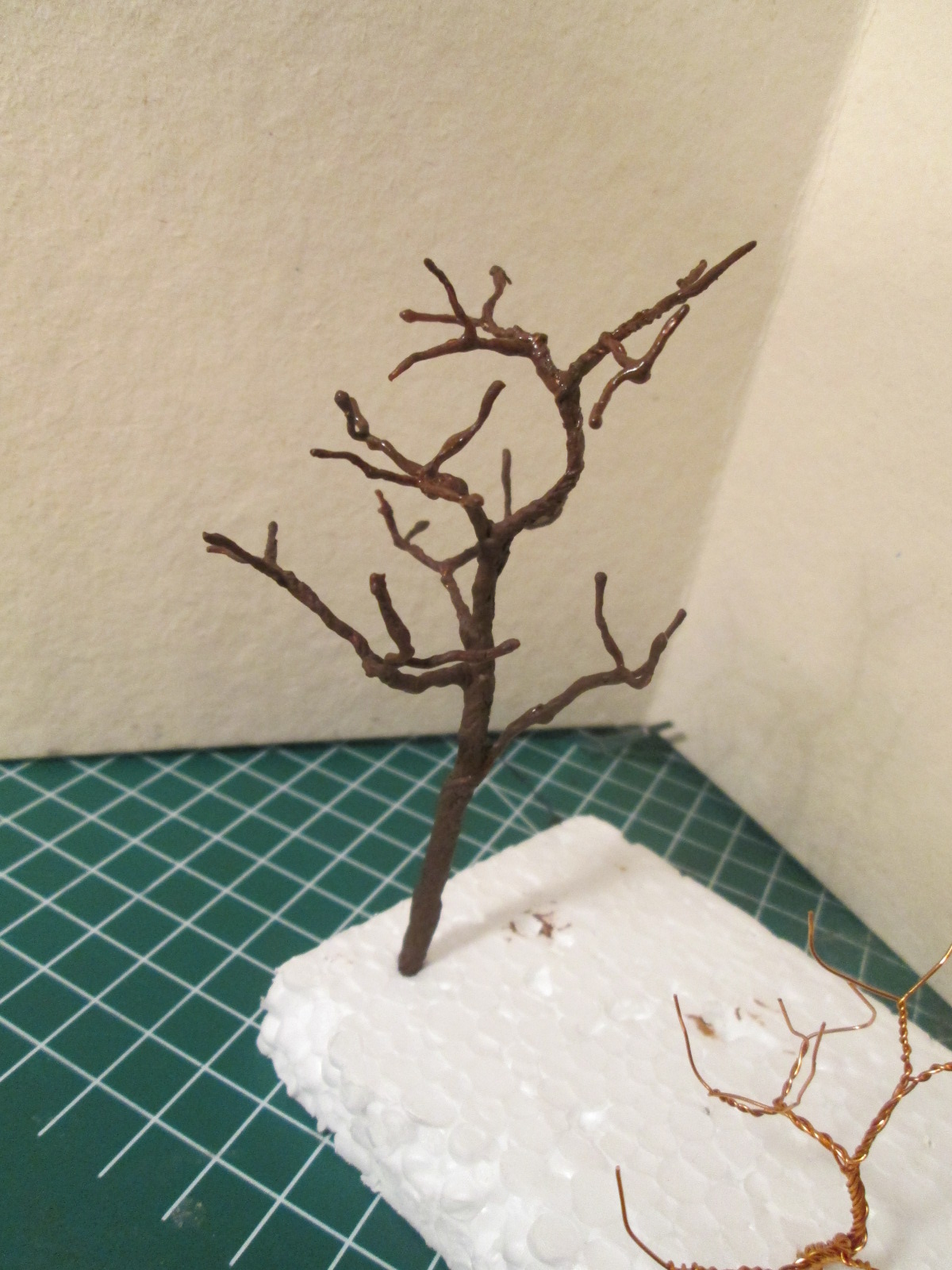 Тоже проходил этот путь - пытался сделать нормальный ствол дерева покраской скрученной проволоки в несколько слоёв.
