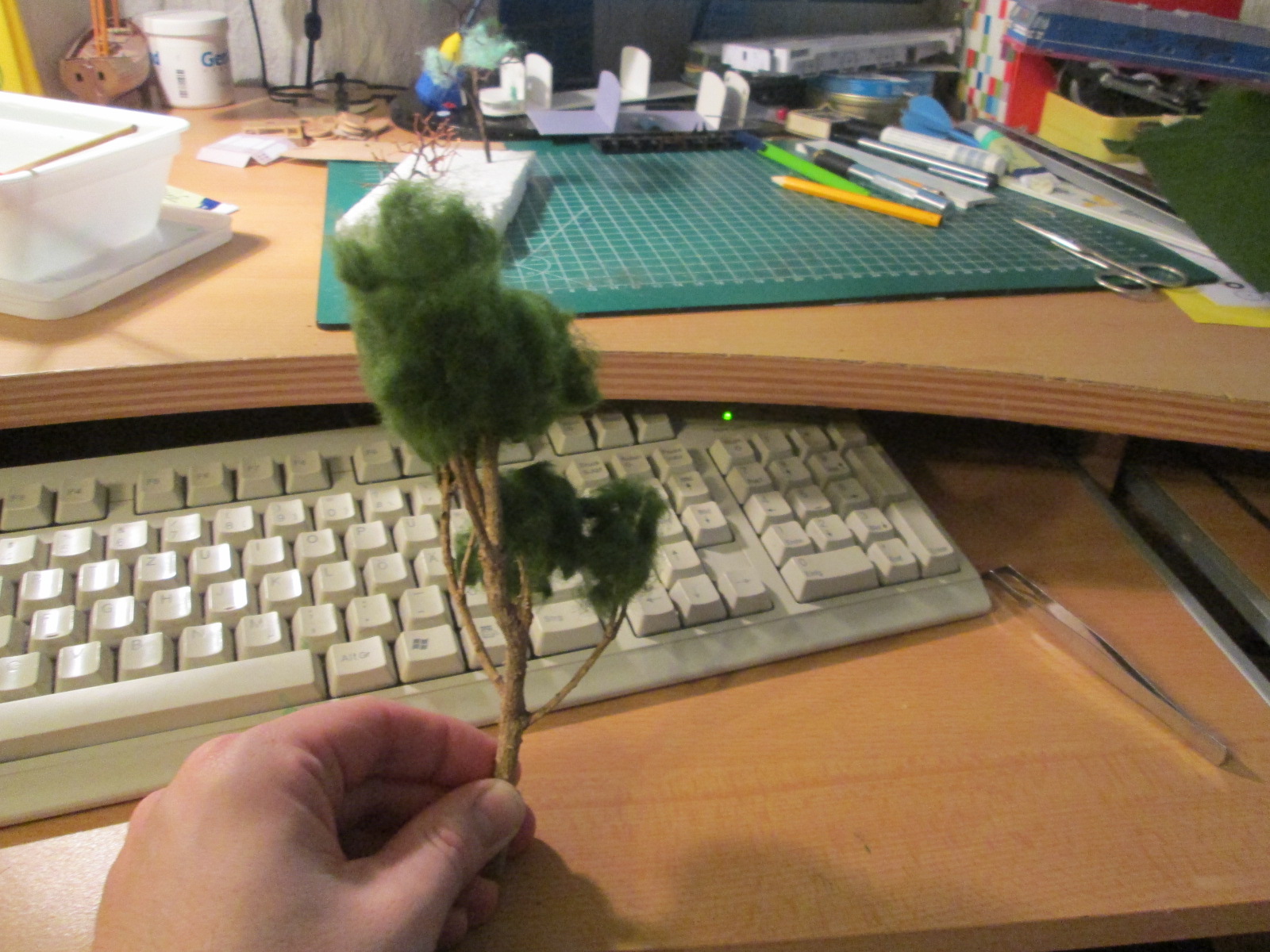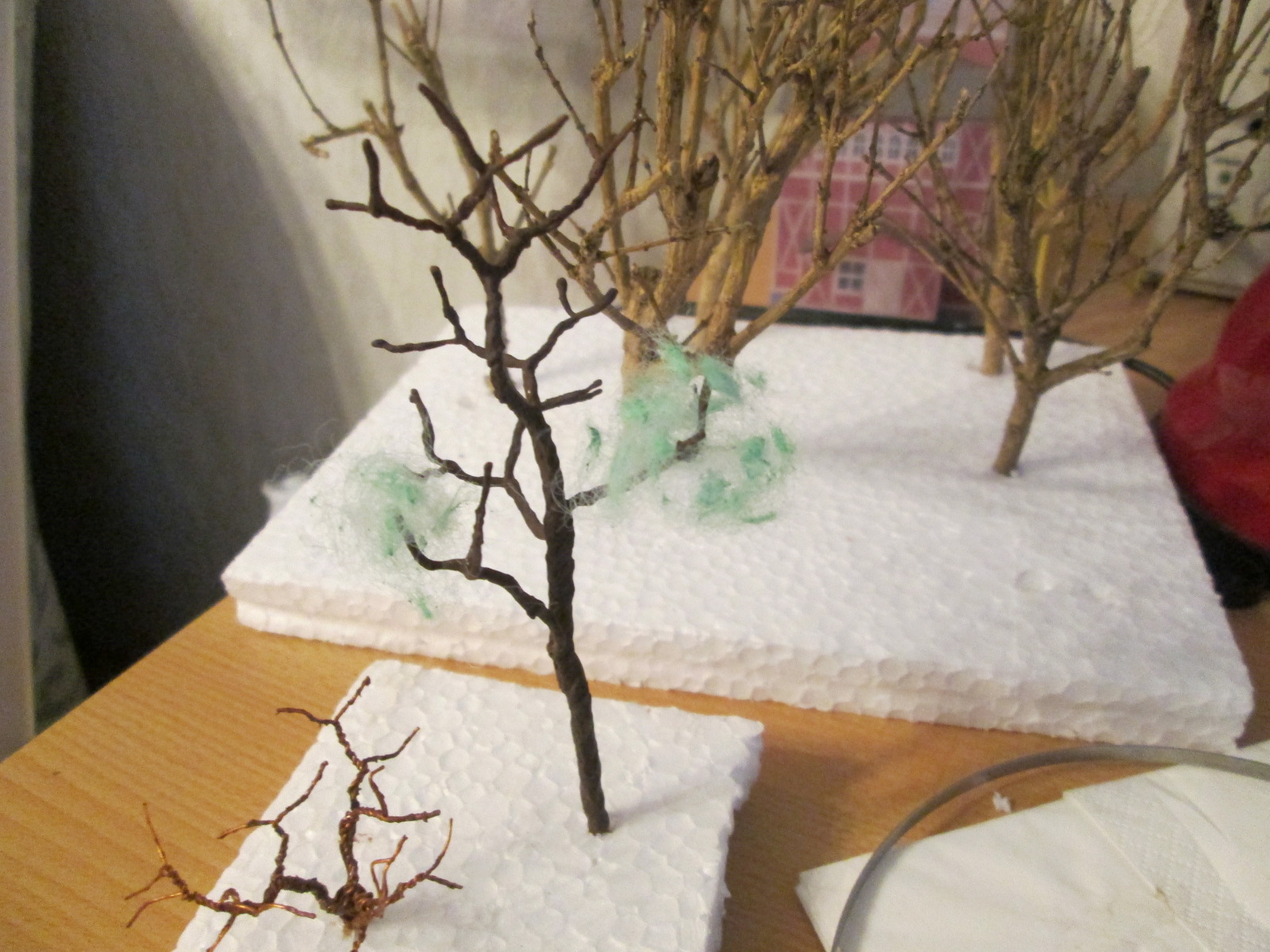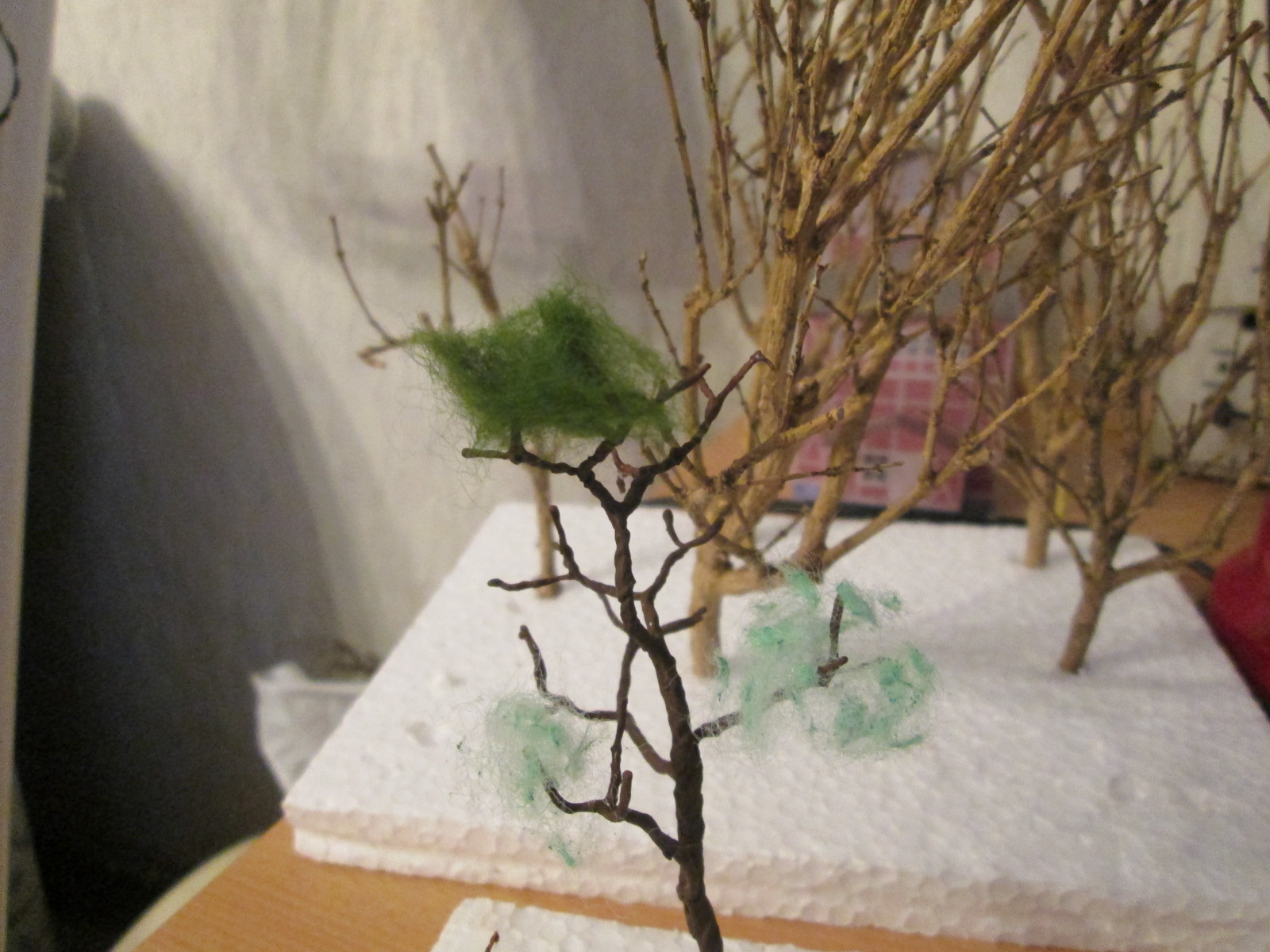 выбрал себе деревце и пустил четверть тряпочки на него, в планах завтра малость по-пшикать спрей-клеем и обсыпать листочками фирмы Нох, а сегодня пока так для пробы