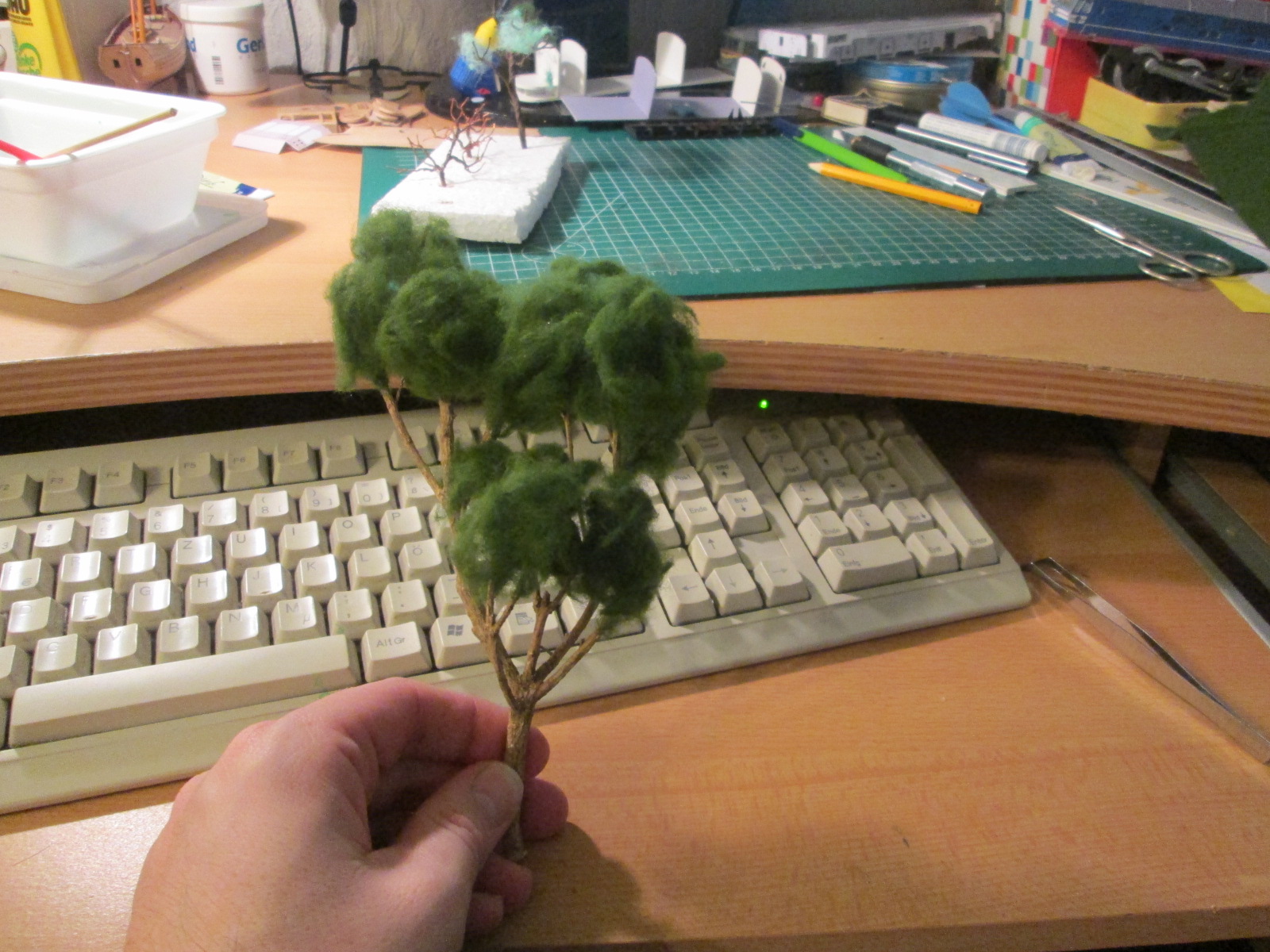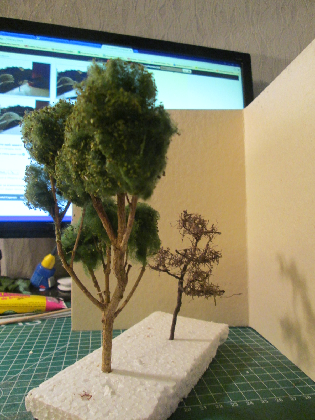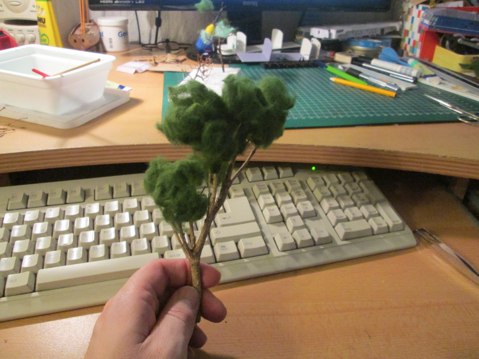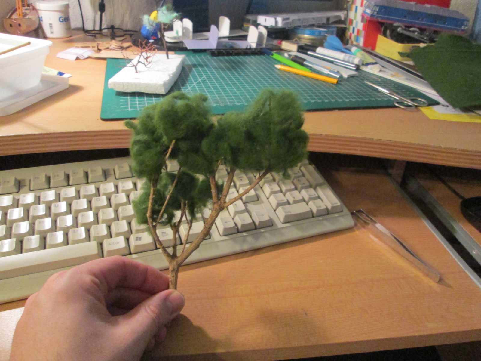 выбрал себе деревце и пустил четверть тряпочки на него, в планах завтра малость по-пшикать спрей-клеем и обсыпать листочками фирмы Нох, а сегодня пока так для пробы