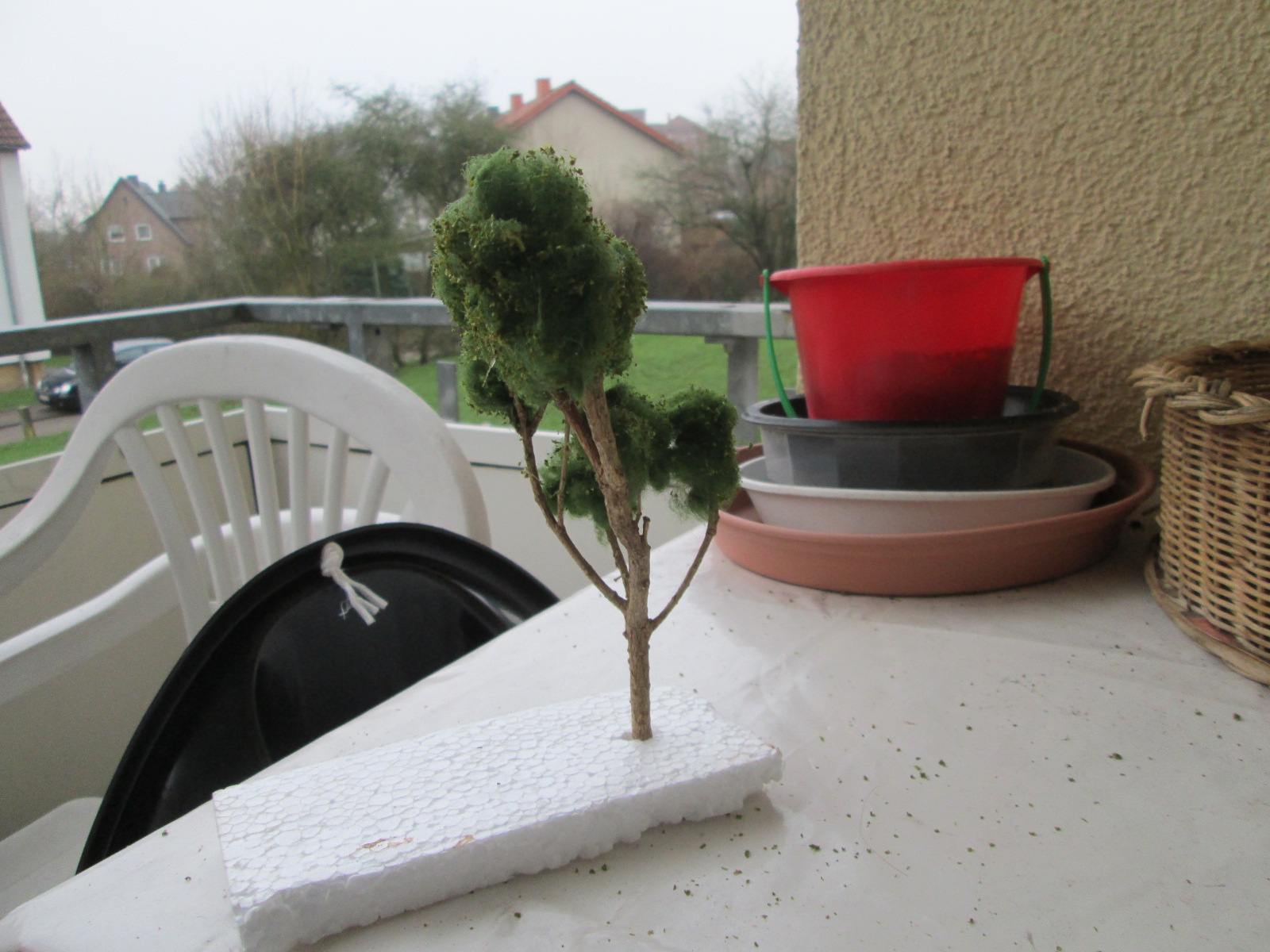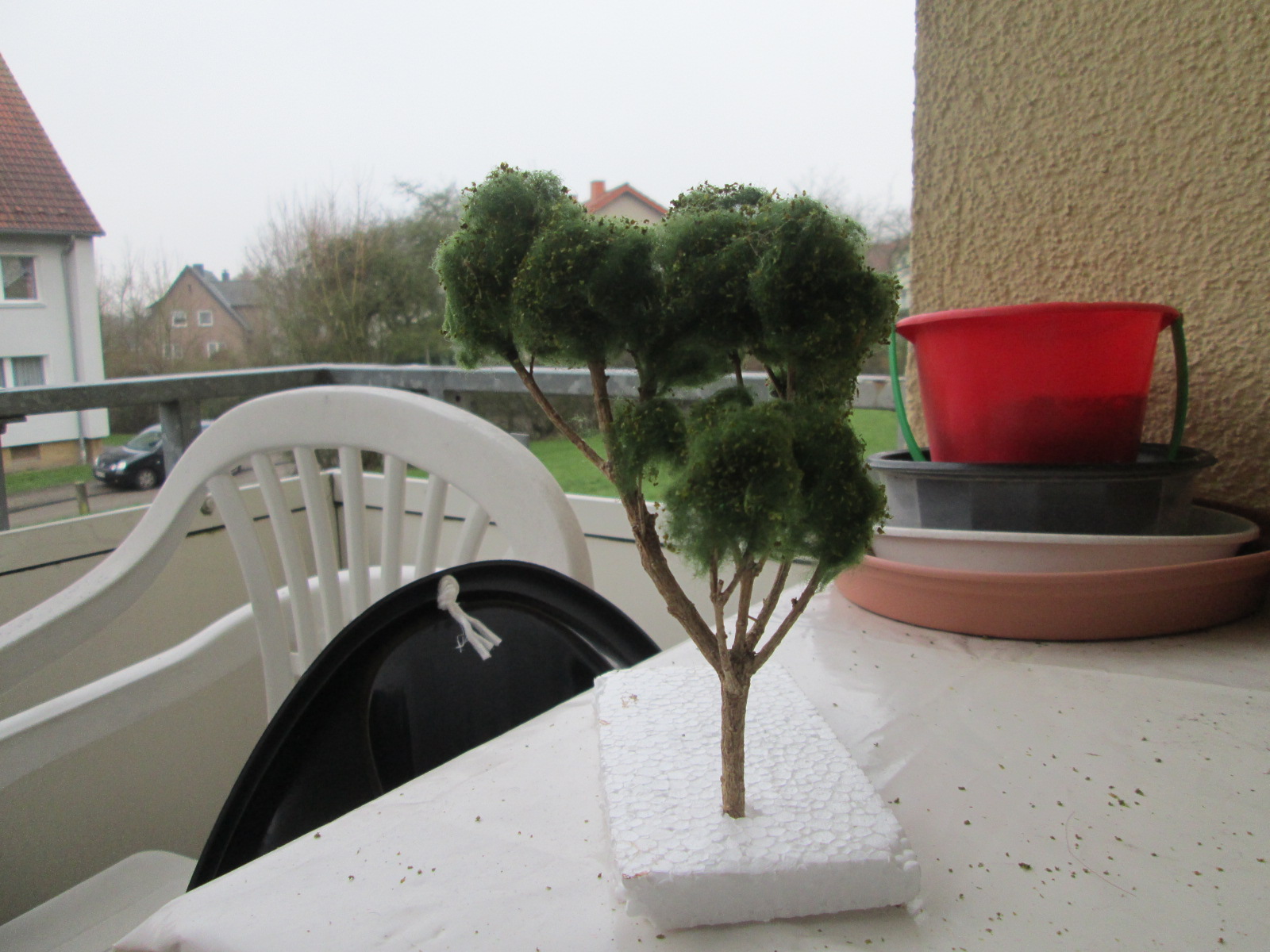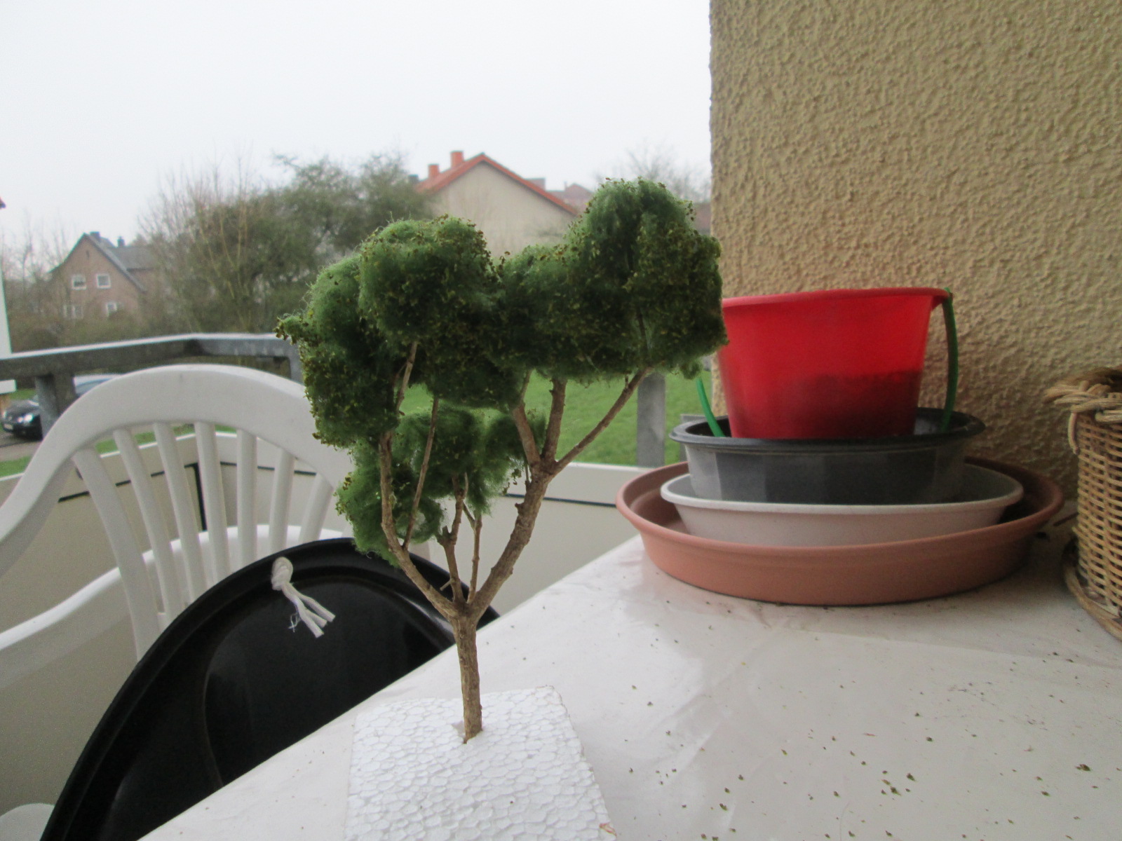 в дальнейшем попробую обсыпать листвой, но можно и так оставить, как сухое дерево летом или годится для осени и зимы Германии